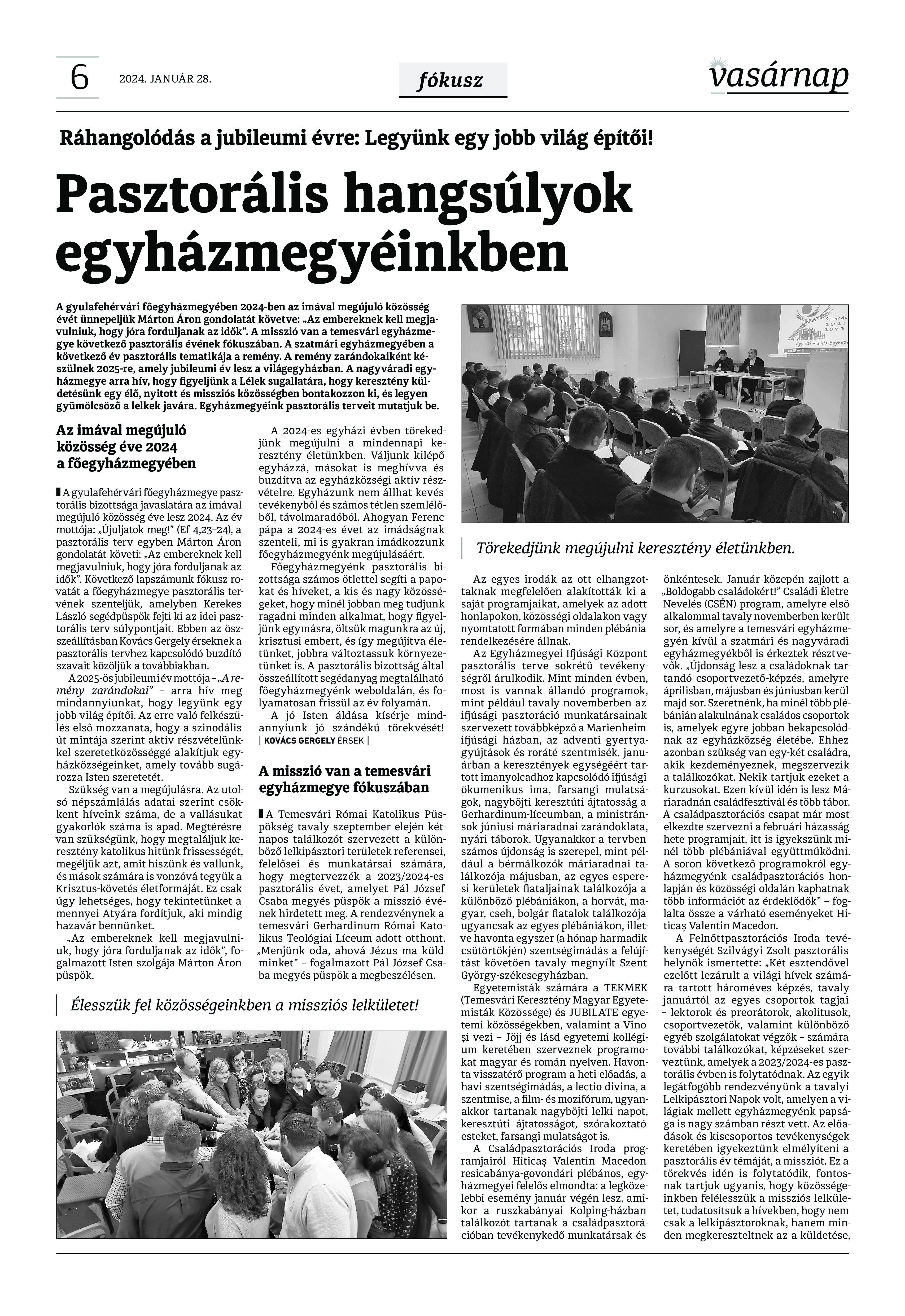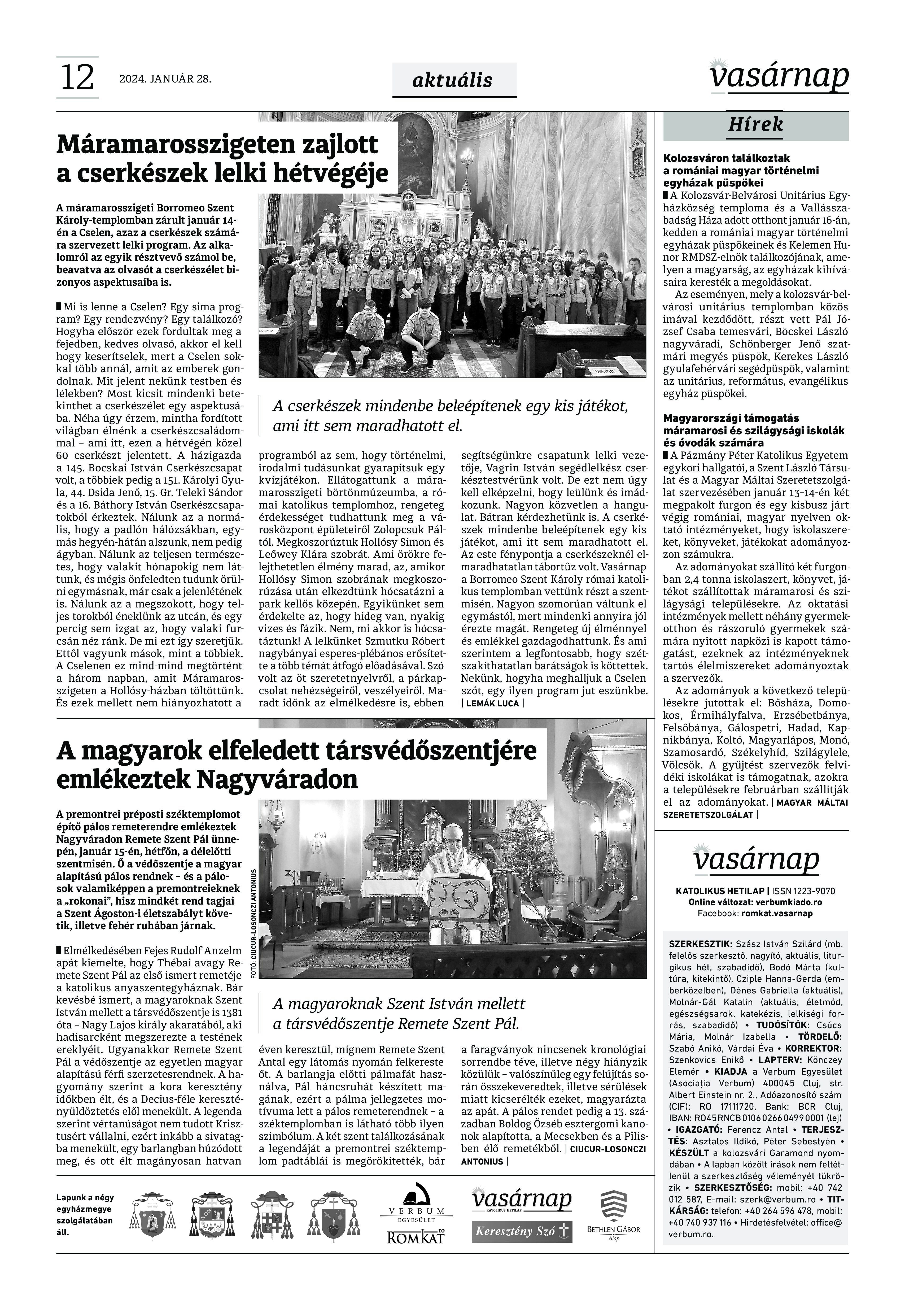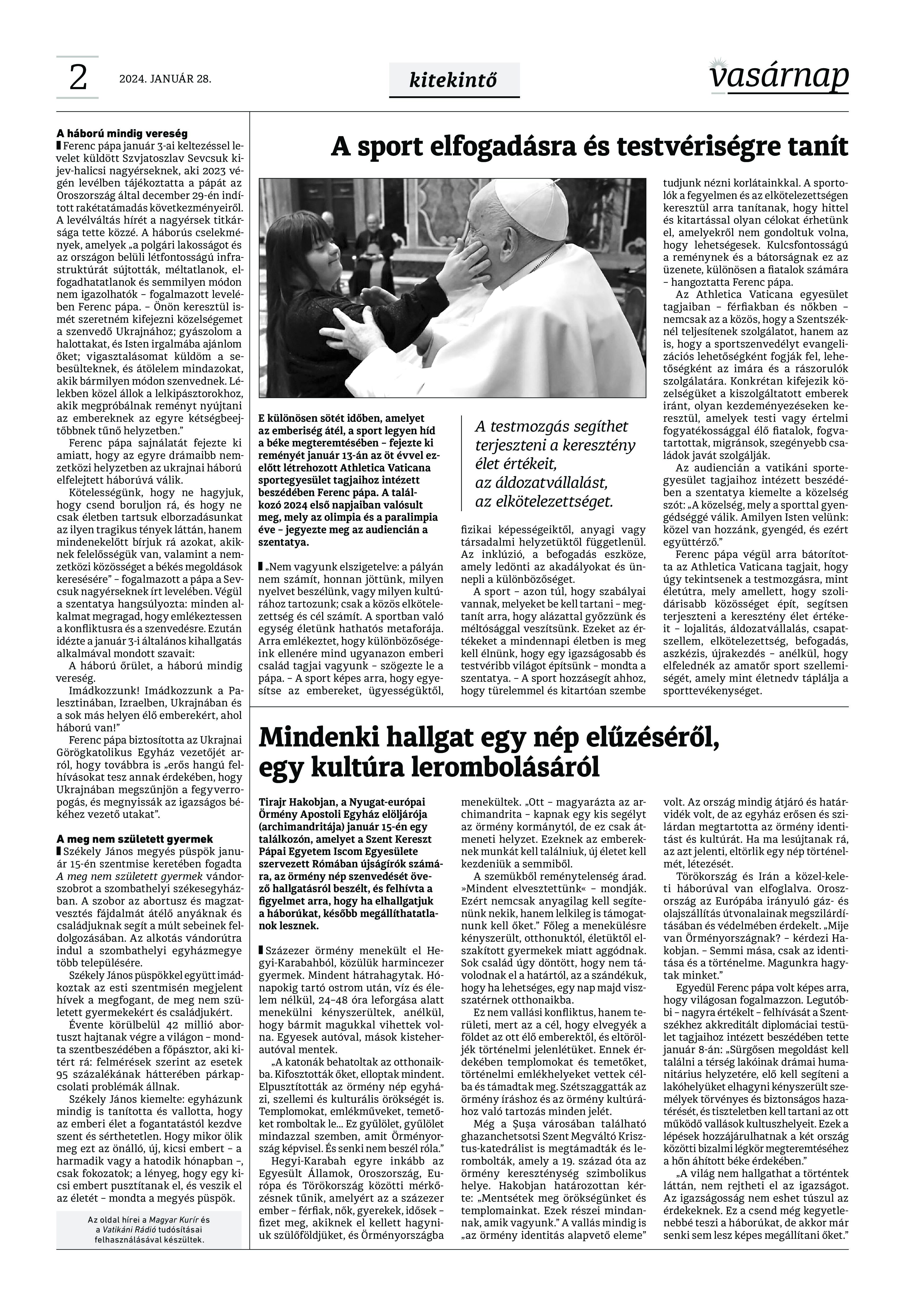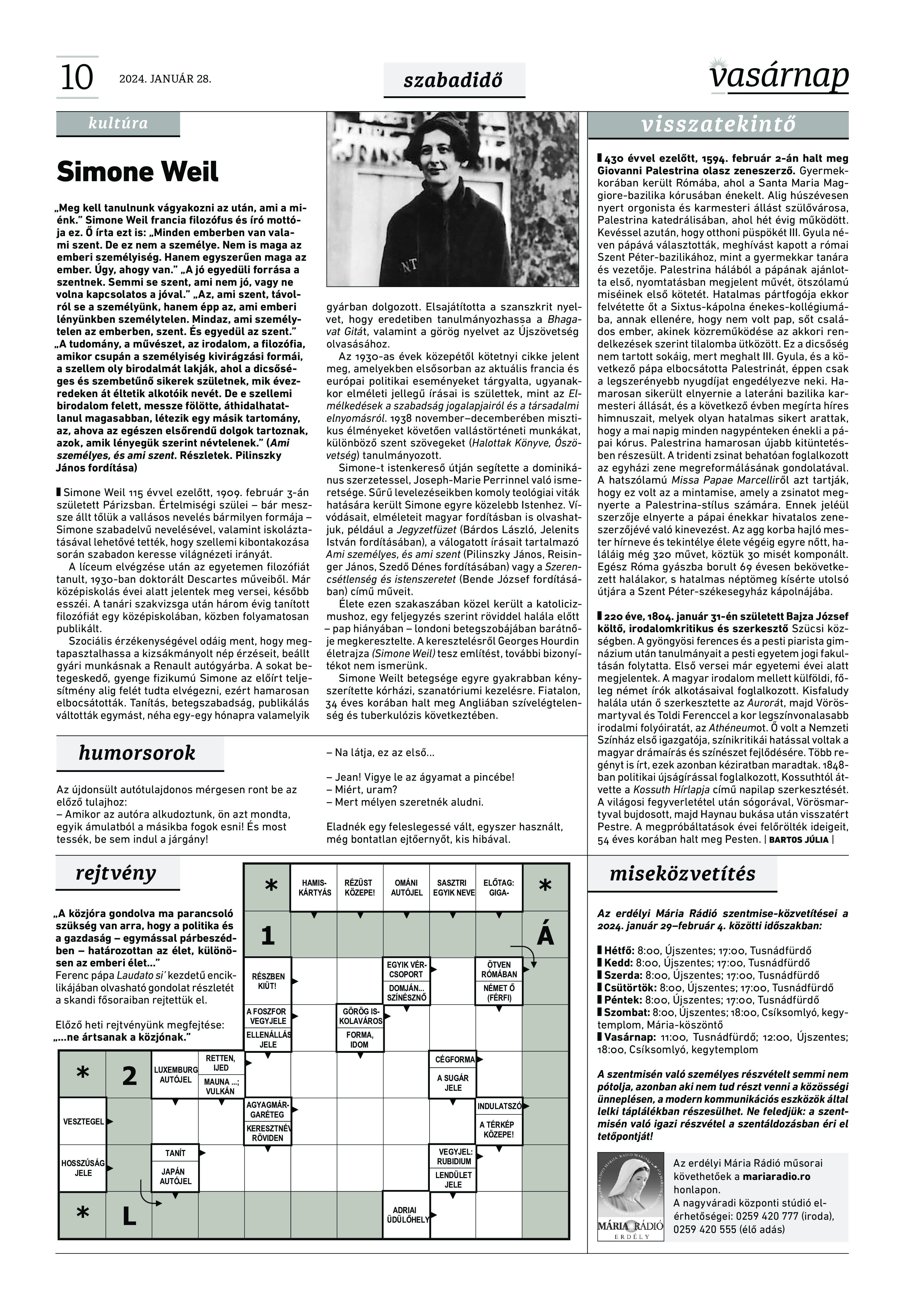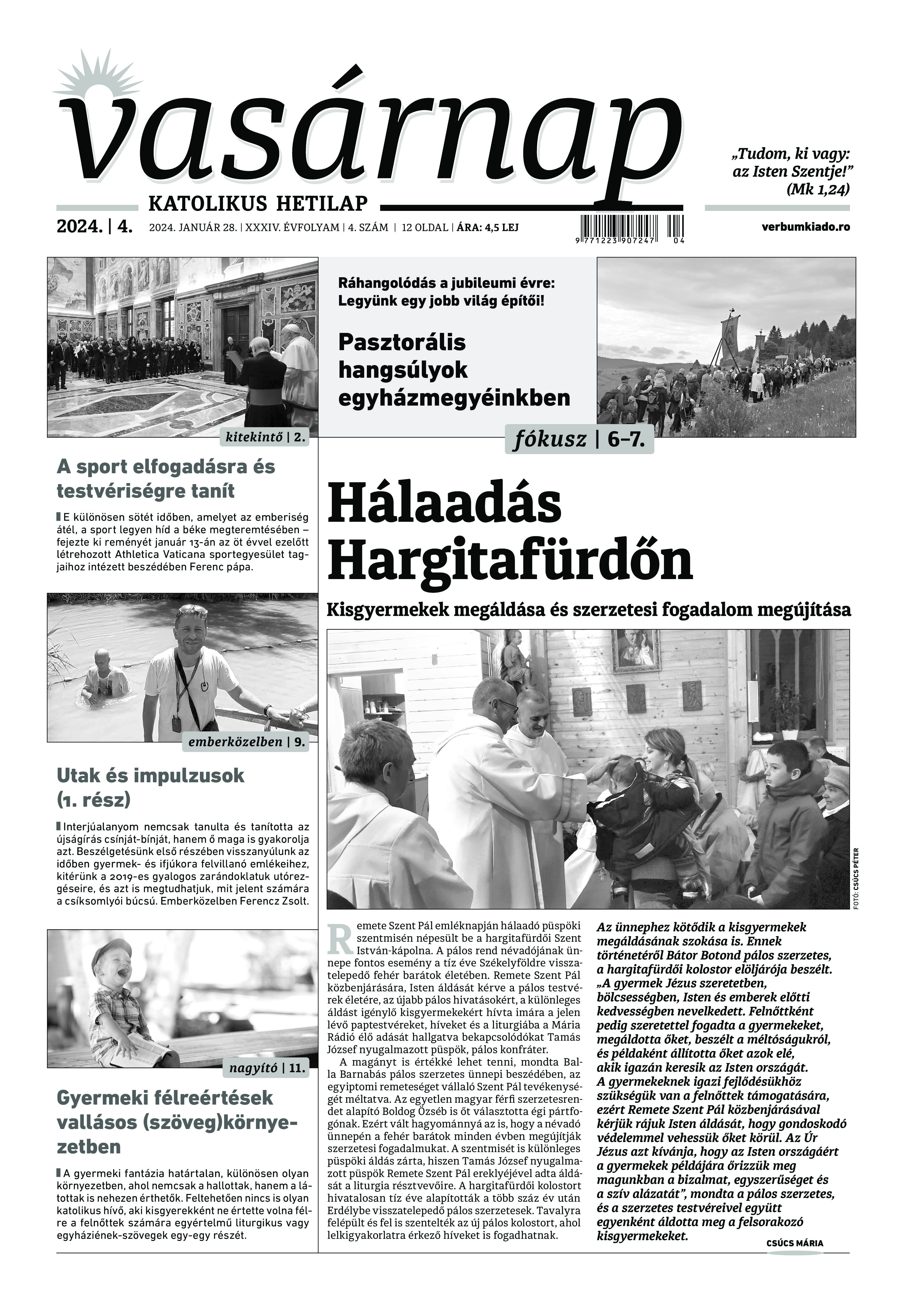 VASÁRNAP - 2024. január 28. A Vasárnap Katolikus Hetilap 2024. január 28. / XXXIV évf. / 4. számának digitális változata. 1 / 12 2 & 3 / 12 4 & 5 / 12 6 & 7 / 12 8 & 9 / 12 10 & 11 / 12 12 / 12
