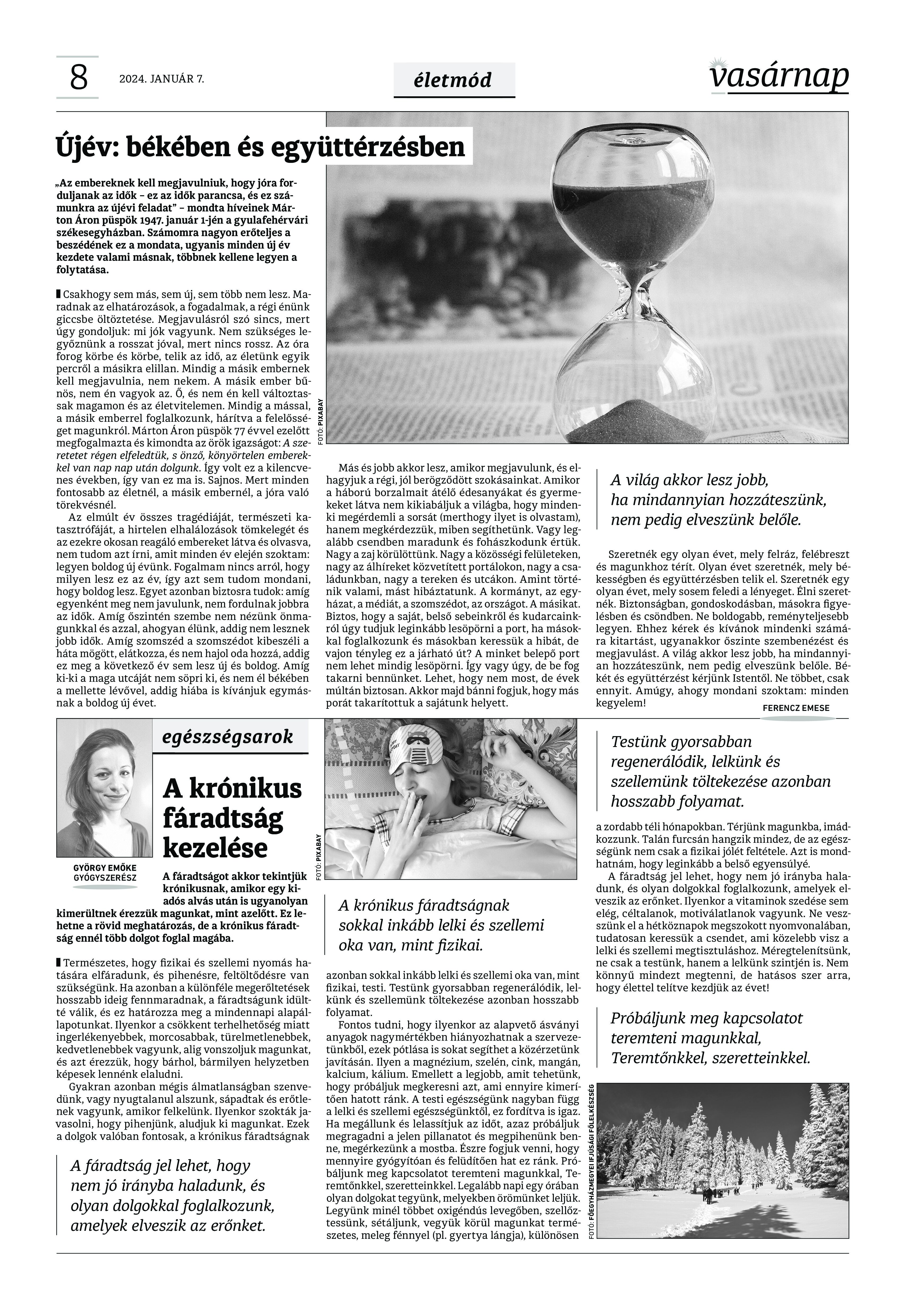 VASÁRNAP - 2024. január 7. A Vasárnap Katolikus Hetilap 2024. január 7. / XXXIV évf. / 1. számának digitális változata. 1 / 12 2 & 3 / 12 4 & 5 / 12 6 & 7 / 12 8 & 9 / 12 10 & 11 / 12 12 / 12
