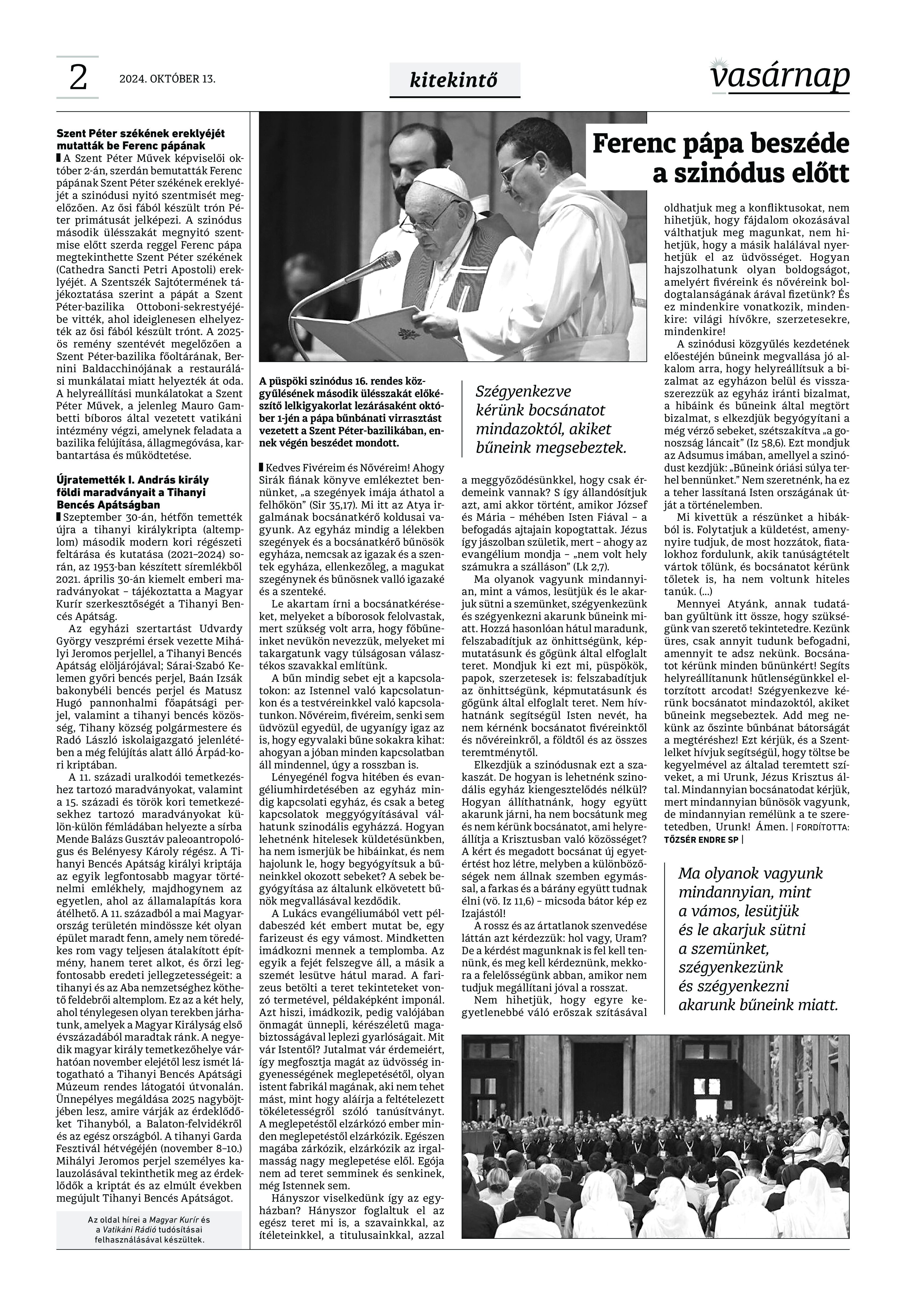 VASÁRNAP - 2024. október 13. A Vasárnap Katolikus Hetilap 2024.október 13. / XXXIV évf. / 41. számának digitális változata. 1 / 12 2 & 3 / 12 4 & 5 / 12 6 & 7 / 12 8 & 9 / 12 10 & 11 / 12 12 / 12