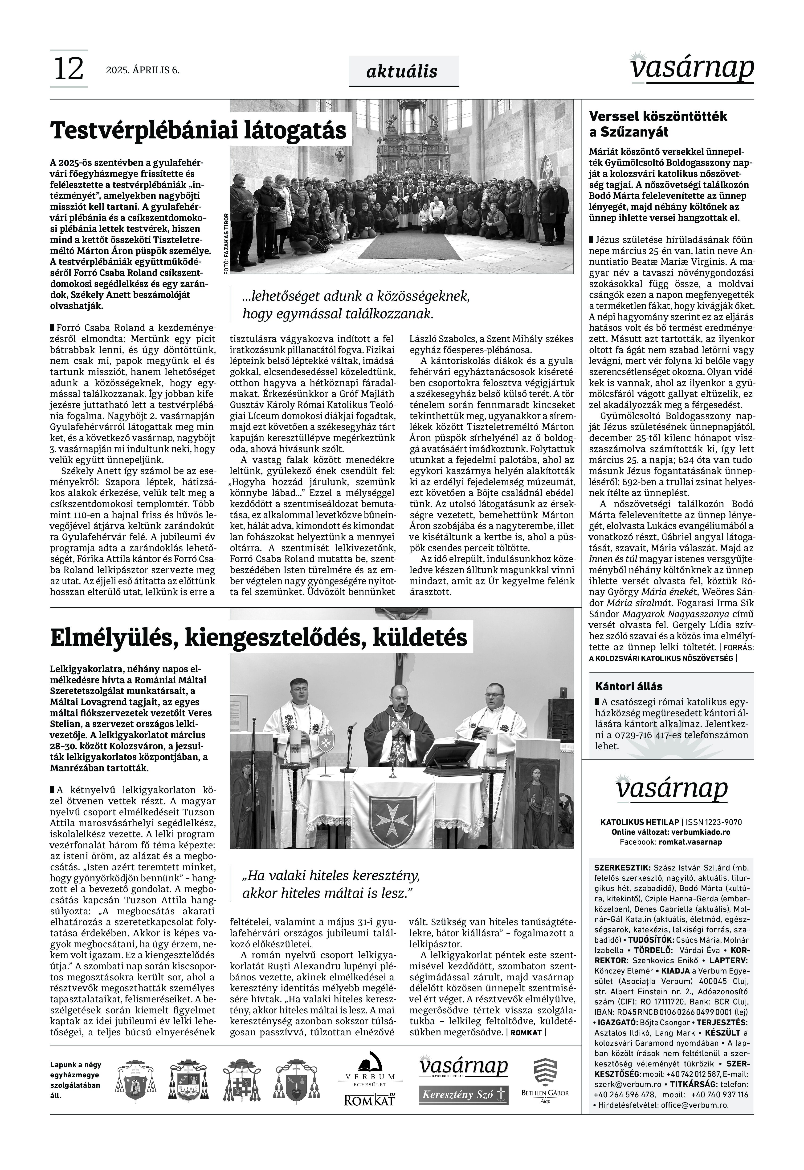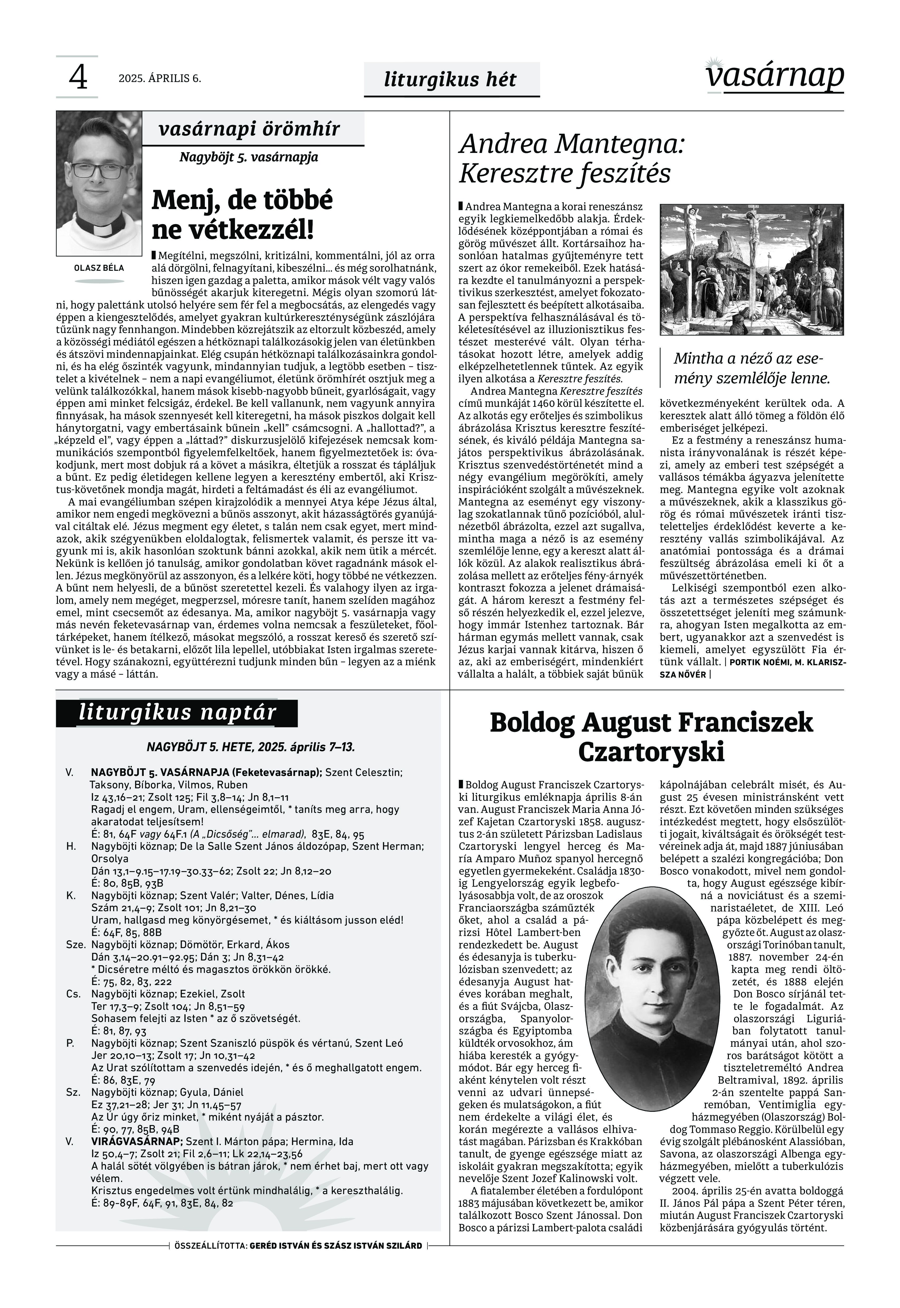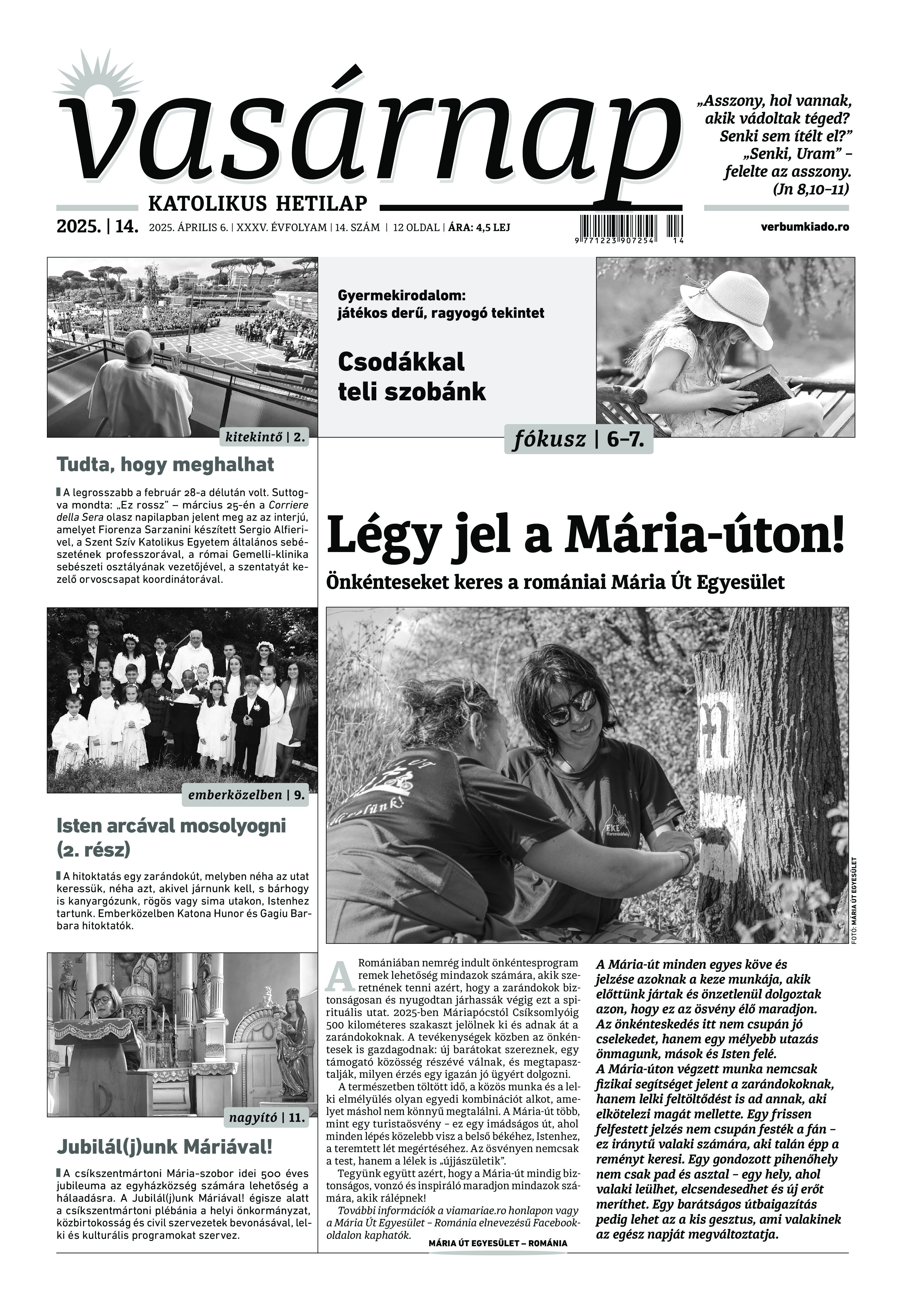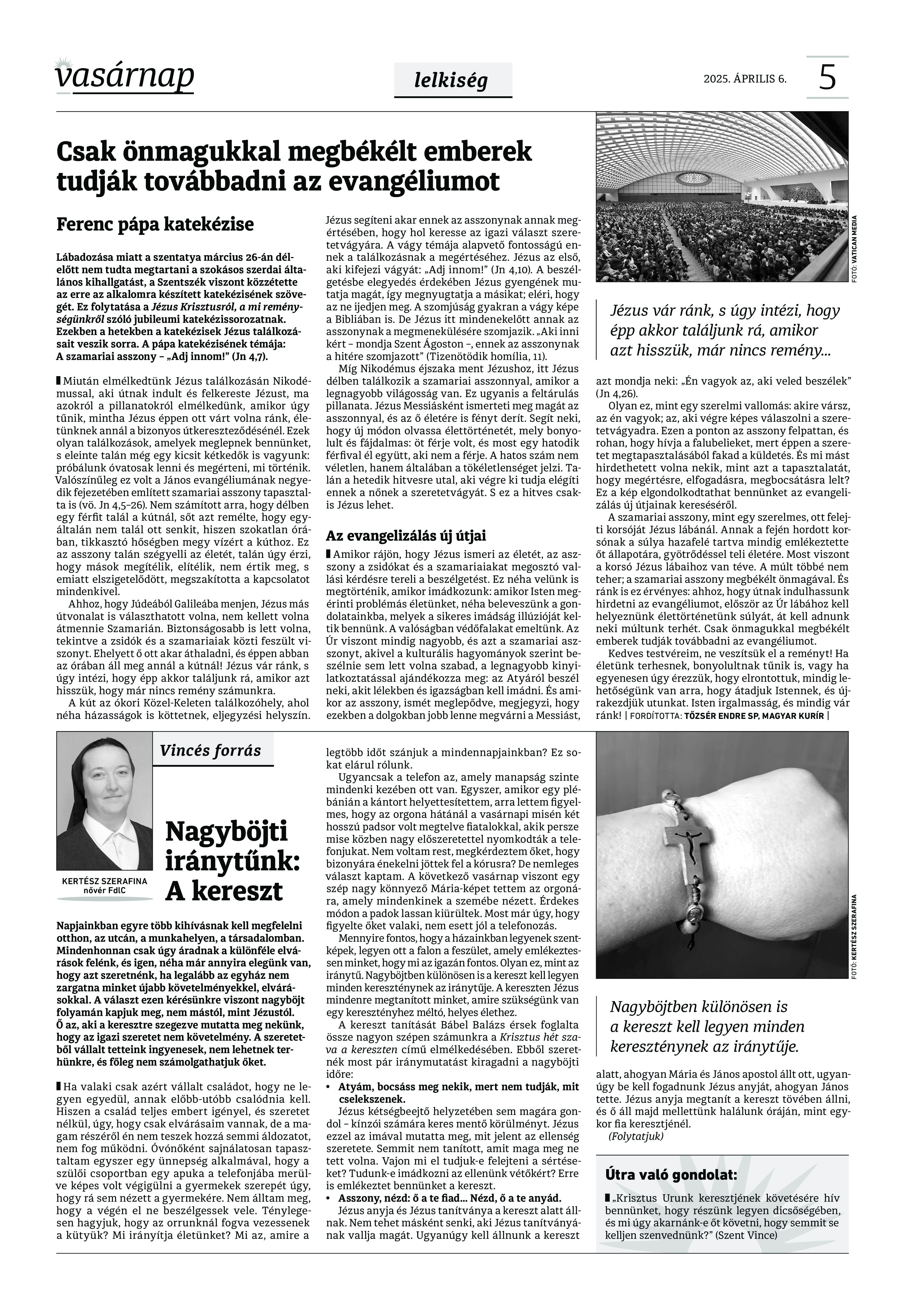 VASÁRNAP - 2025. április 6. A Vasárnap Katolikus Hetilap 2025. április 6 / XXXV évf. / 14. számának digitális változata. 1 / 12 2 & 3 / 12 4 & 5 / 12 6 & 7 / 12 8 & 9 / 12 10 & 11 / 12 12 / 12