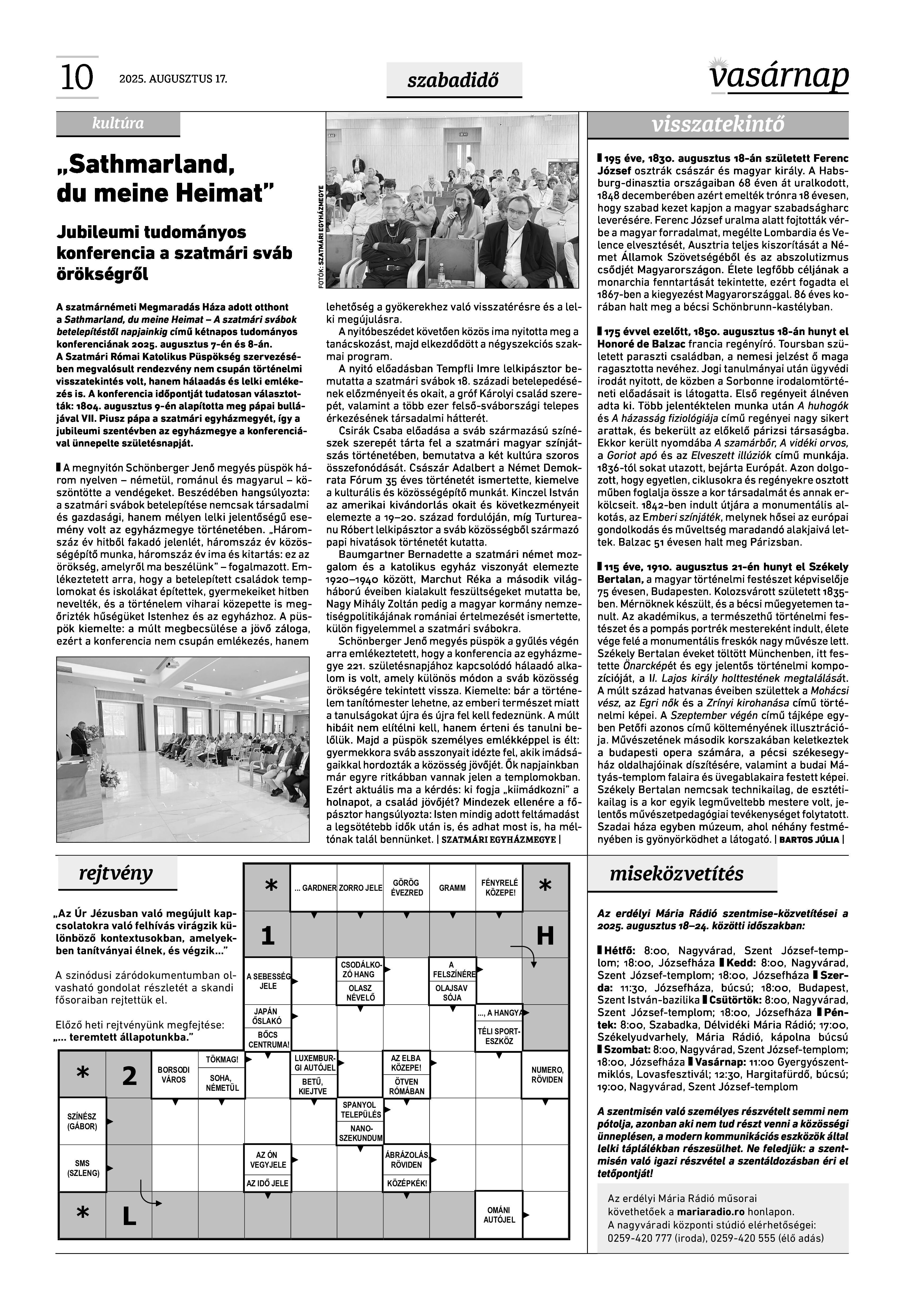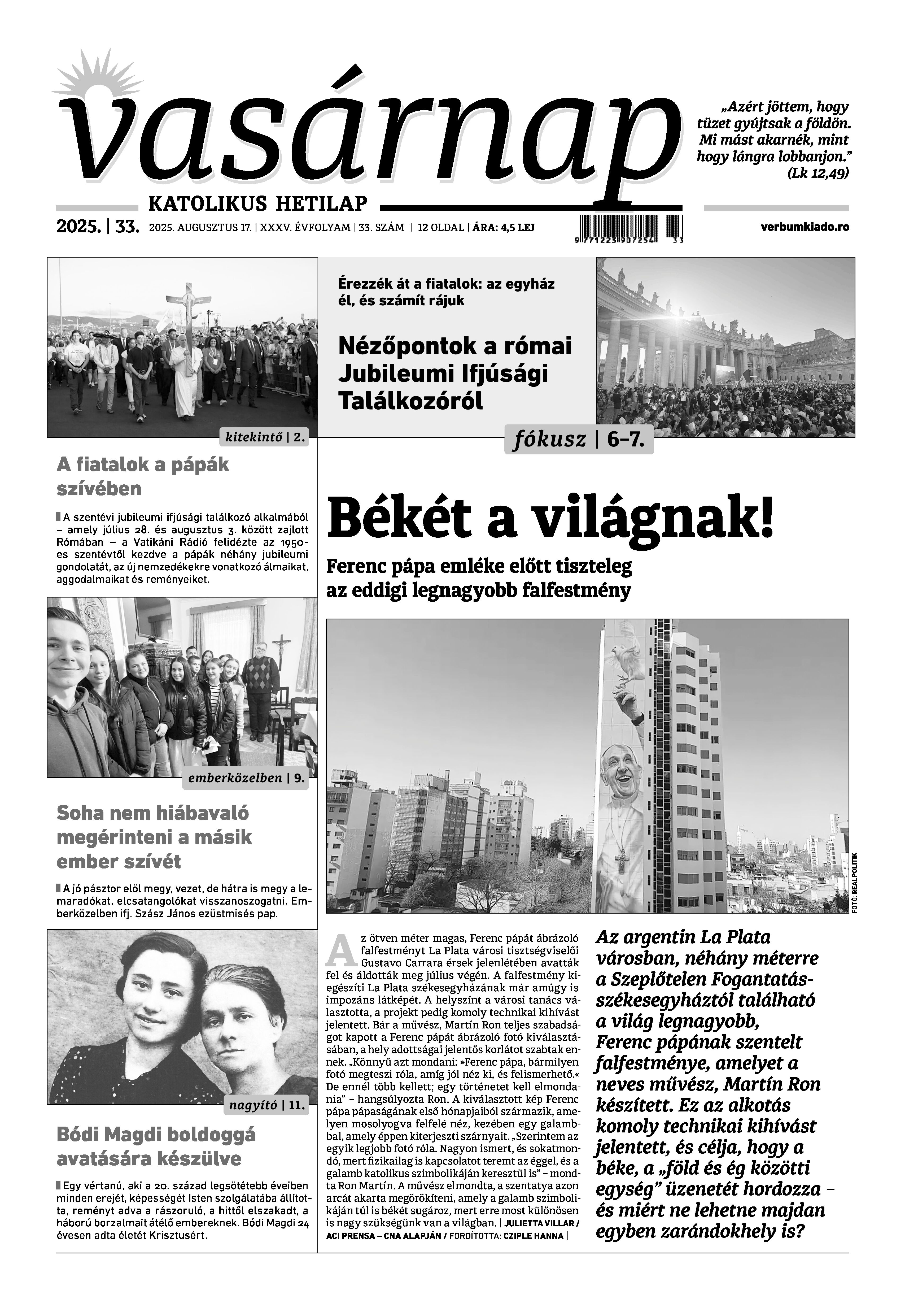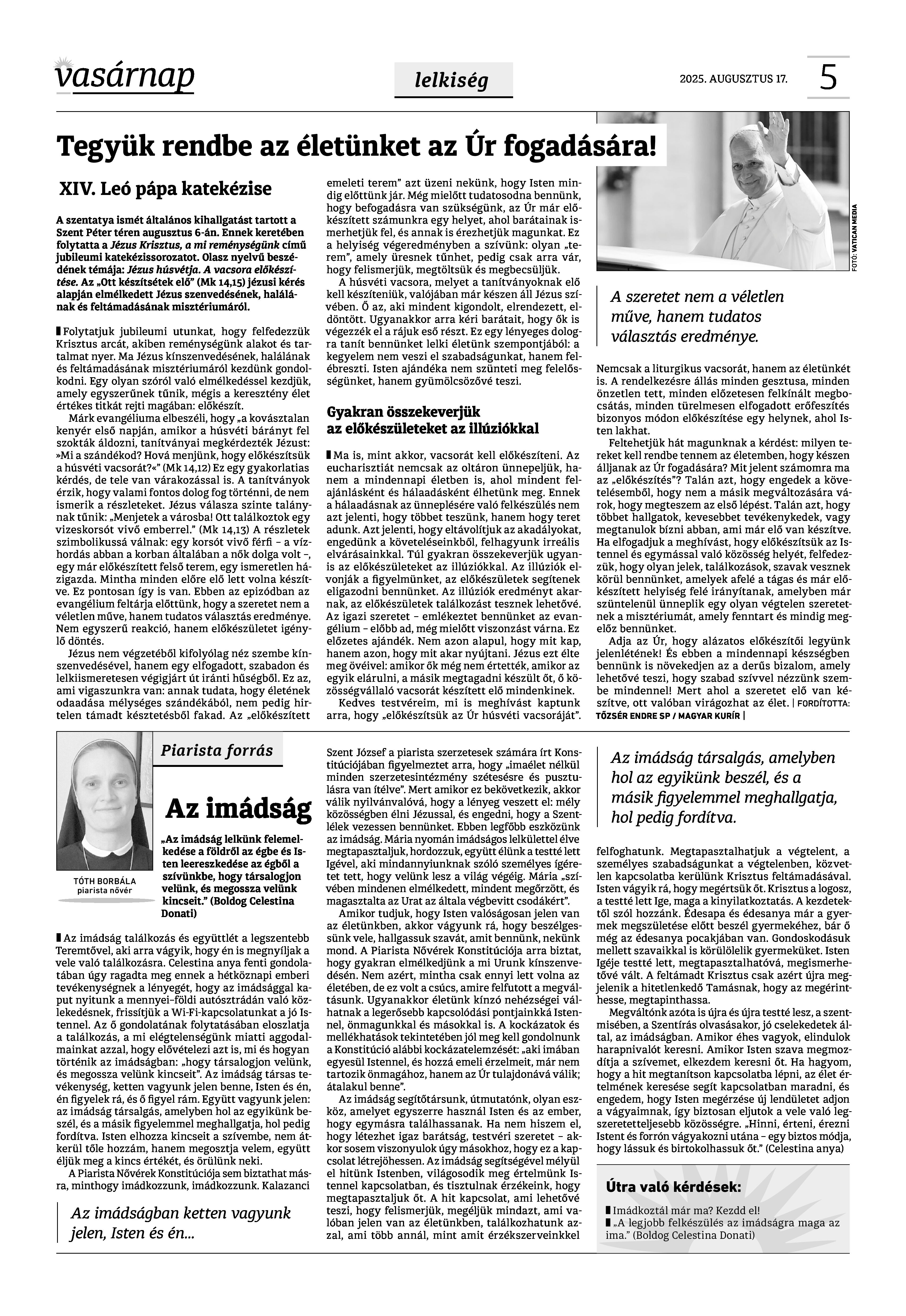 A Vasárnap Katolikus Hetilap 2025. augusztus 17. / XXXV évf. / 33. számának digitális változata.