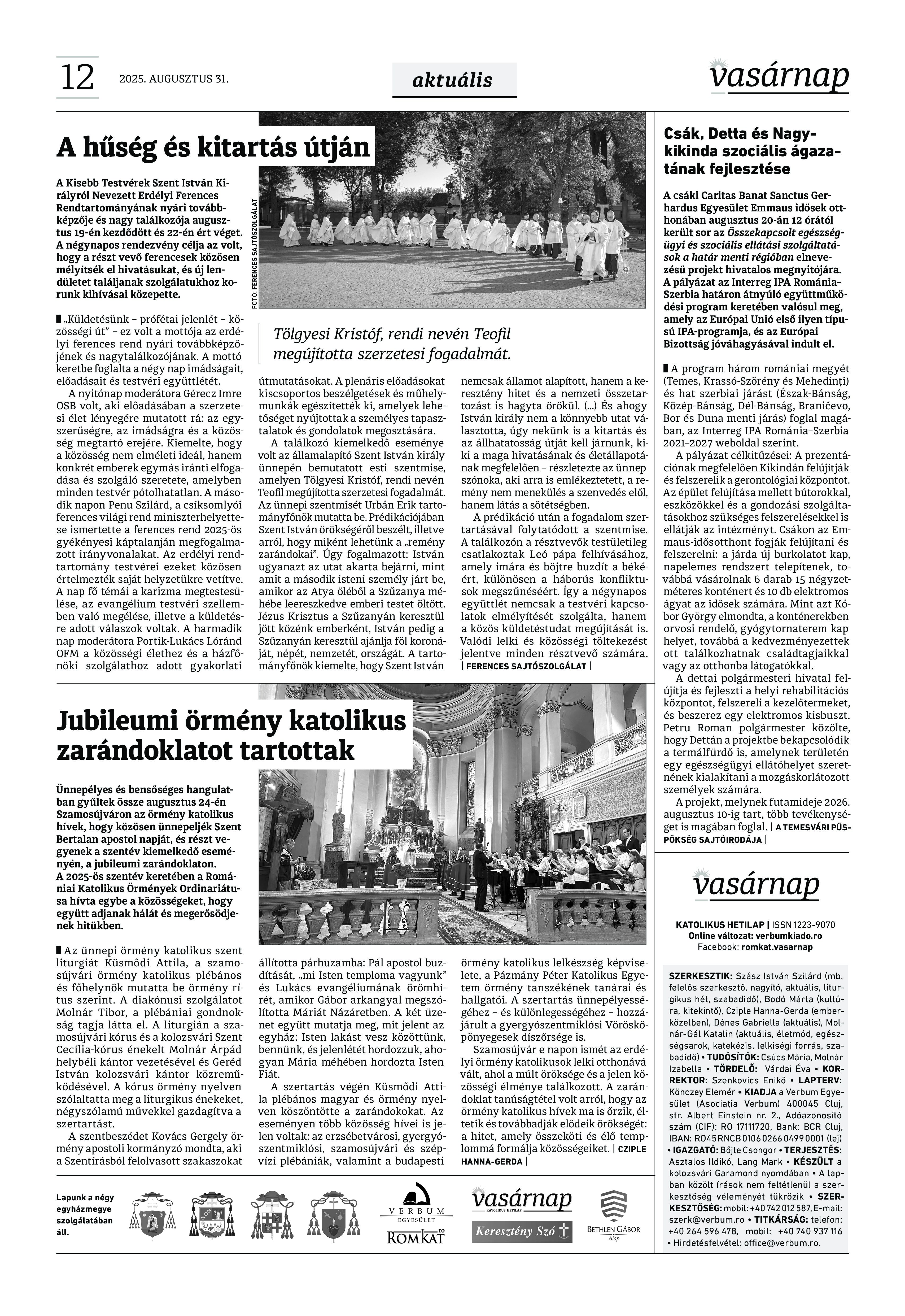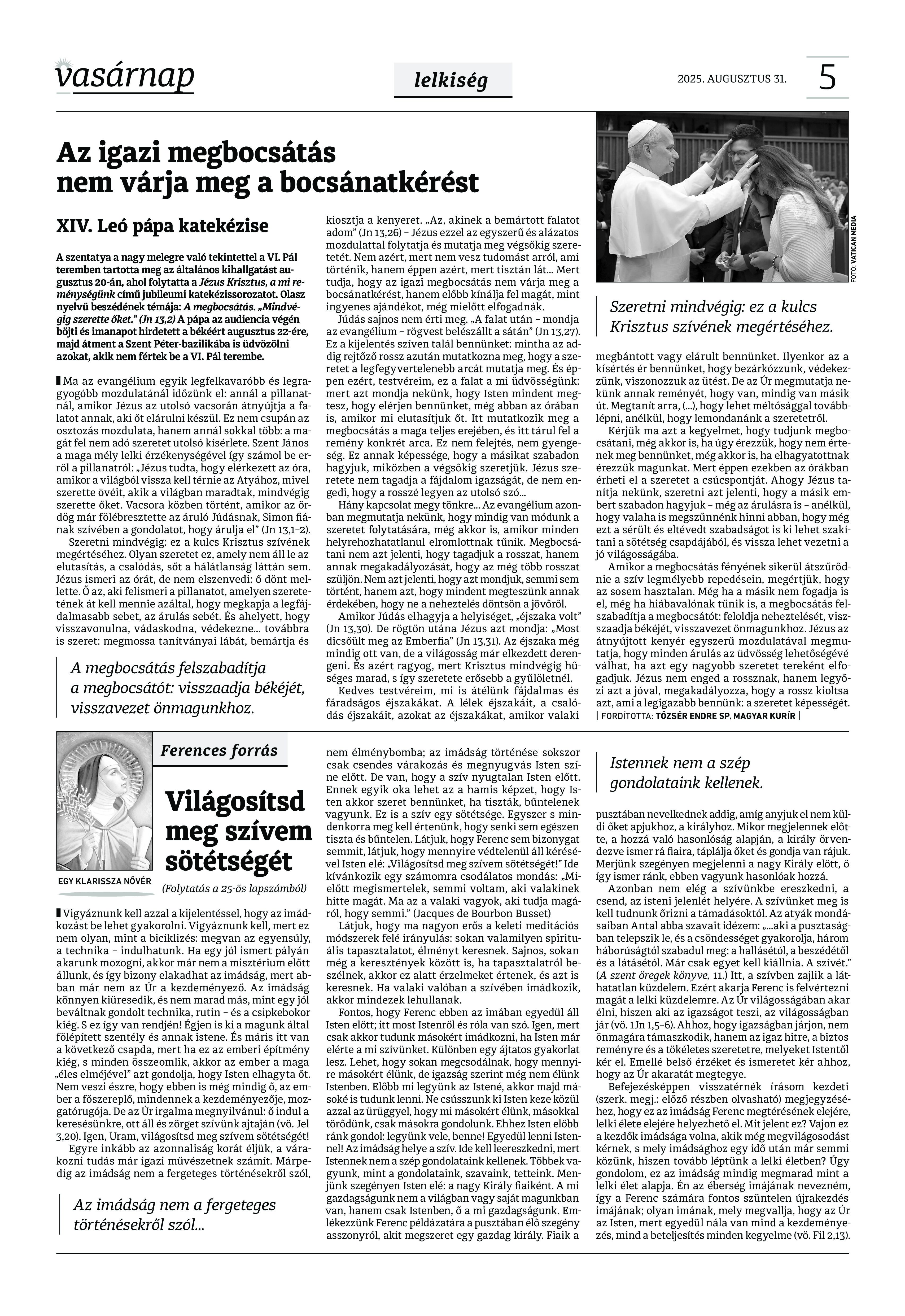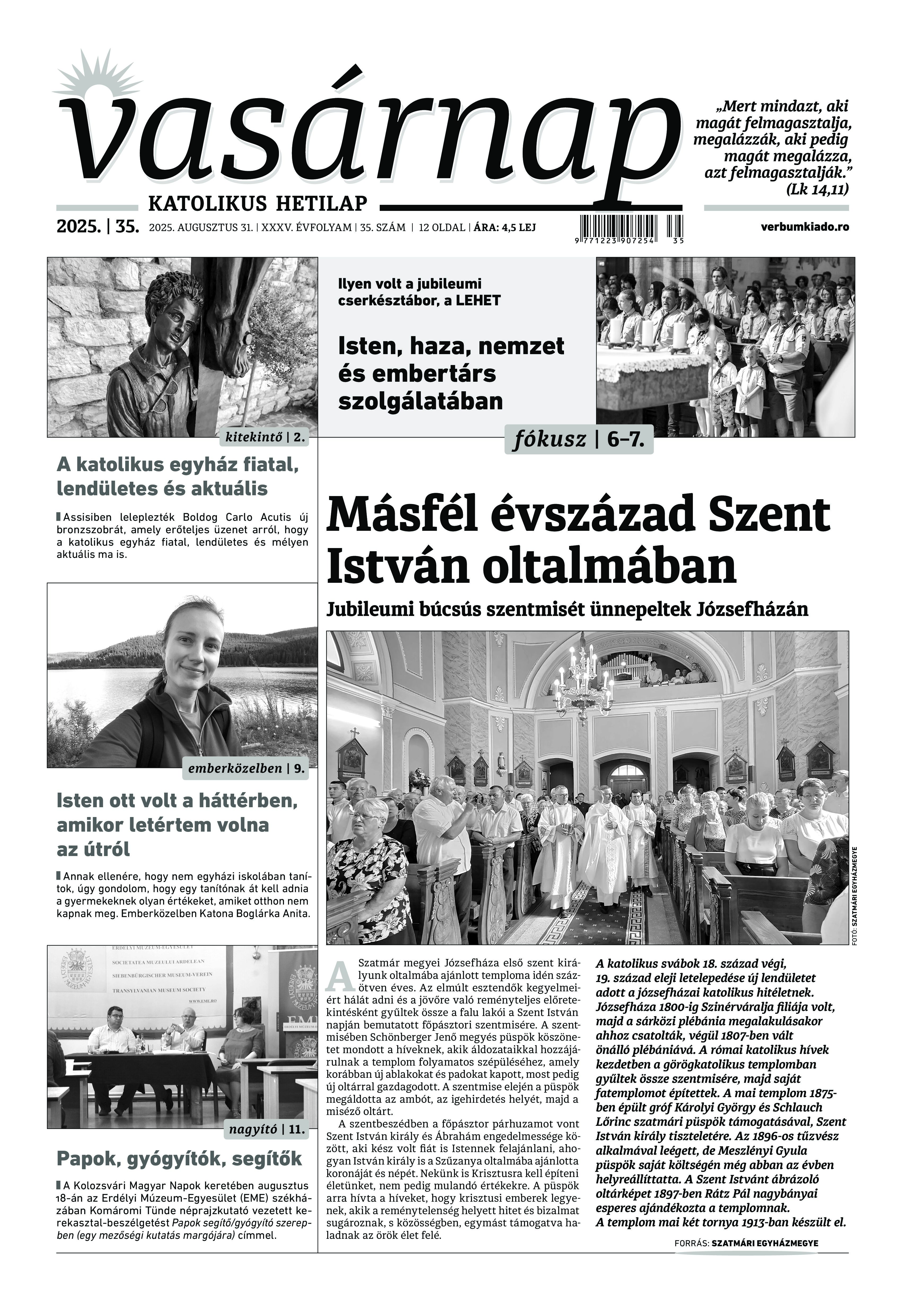VASÁRNAP - 2025. augusztus 31. A Vasárnap Katolikus Hetilap 2025. augusztus 31. / XXXV évf. / 35. számának digitális változata. 1 / 12 2 & 3 / 12 4 & 5 / 12 6 & 7 / 12 8 & 9 / 12 10 & 11 / 12 12 / 12