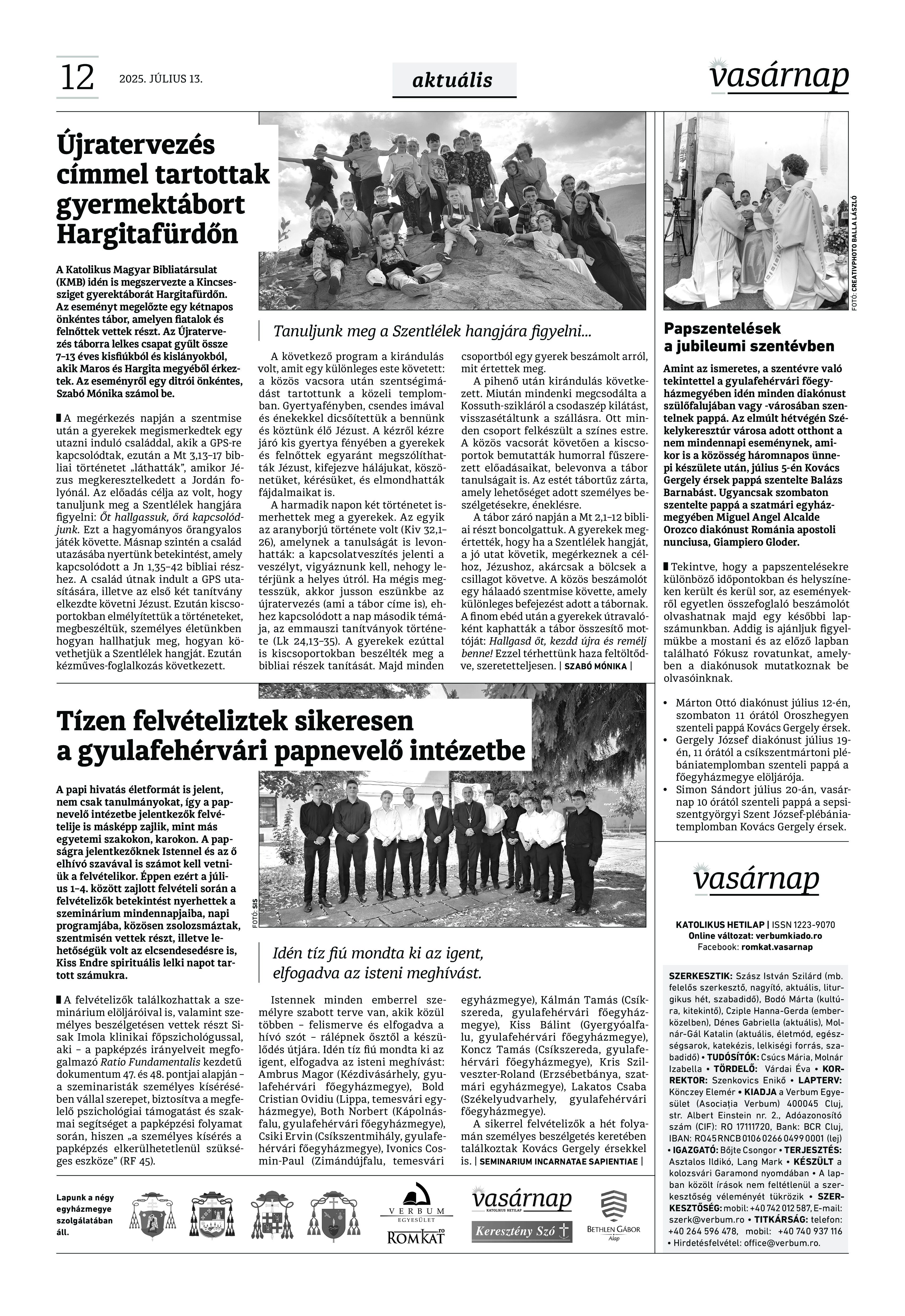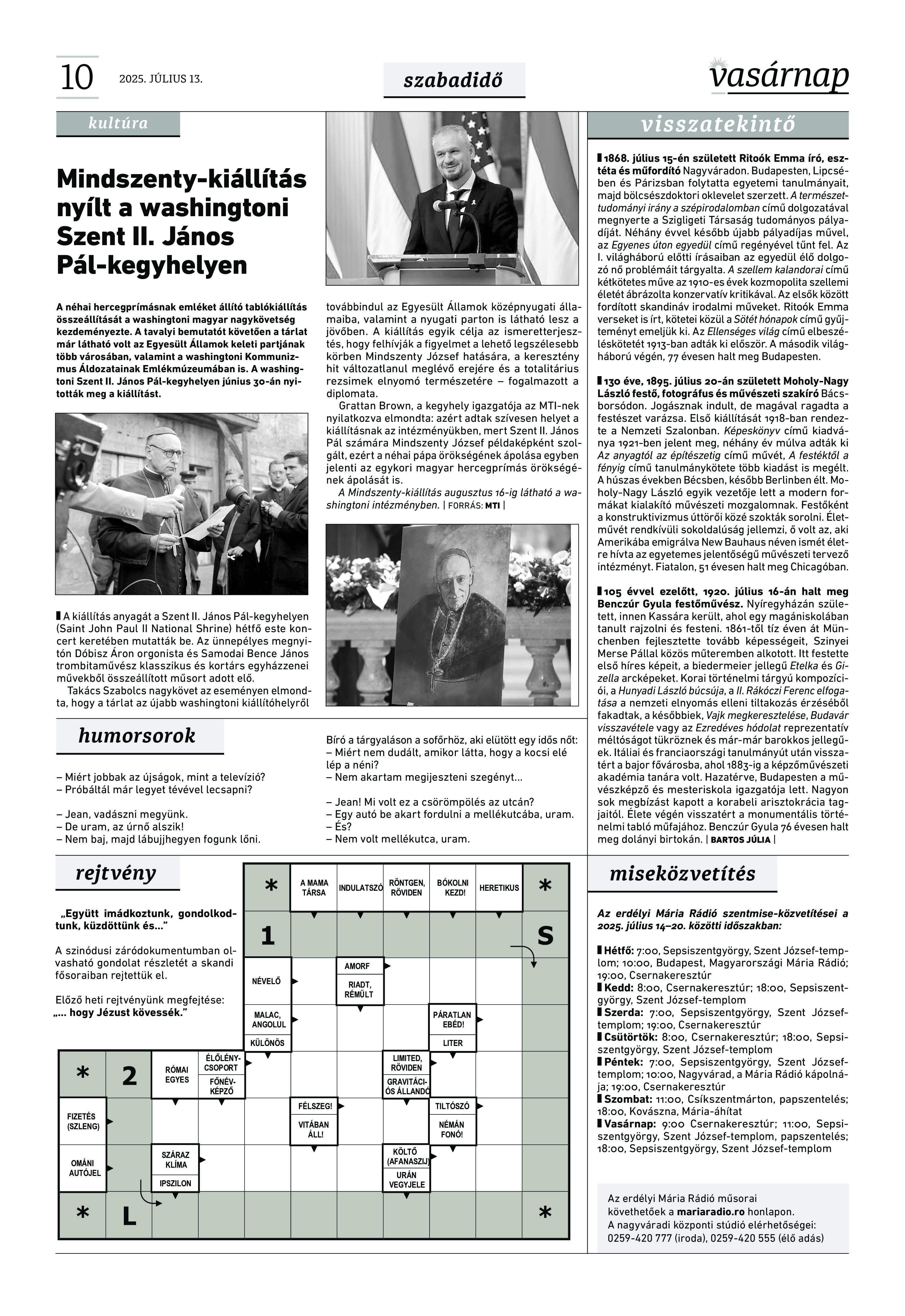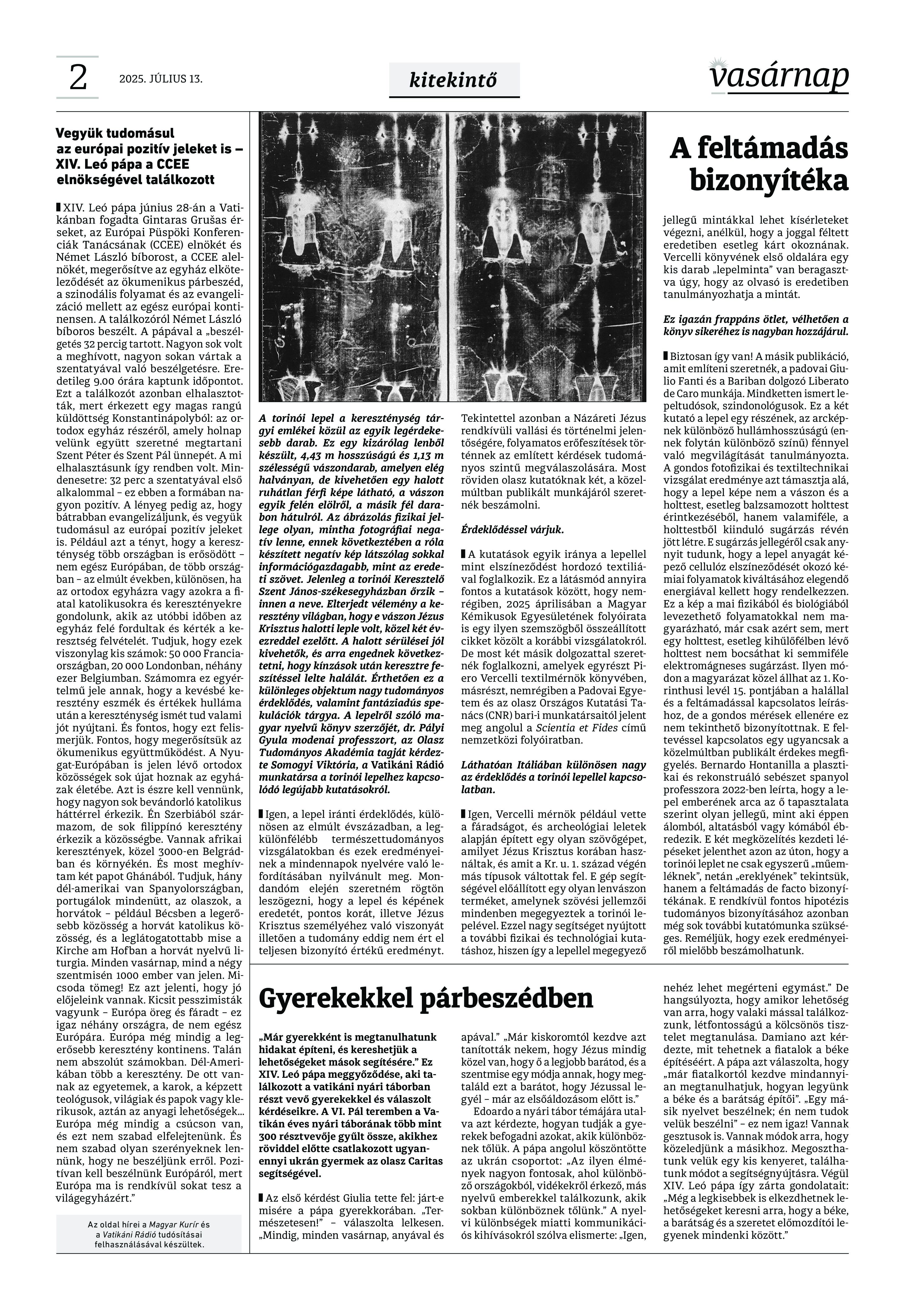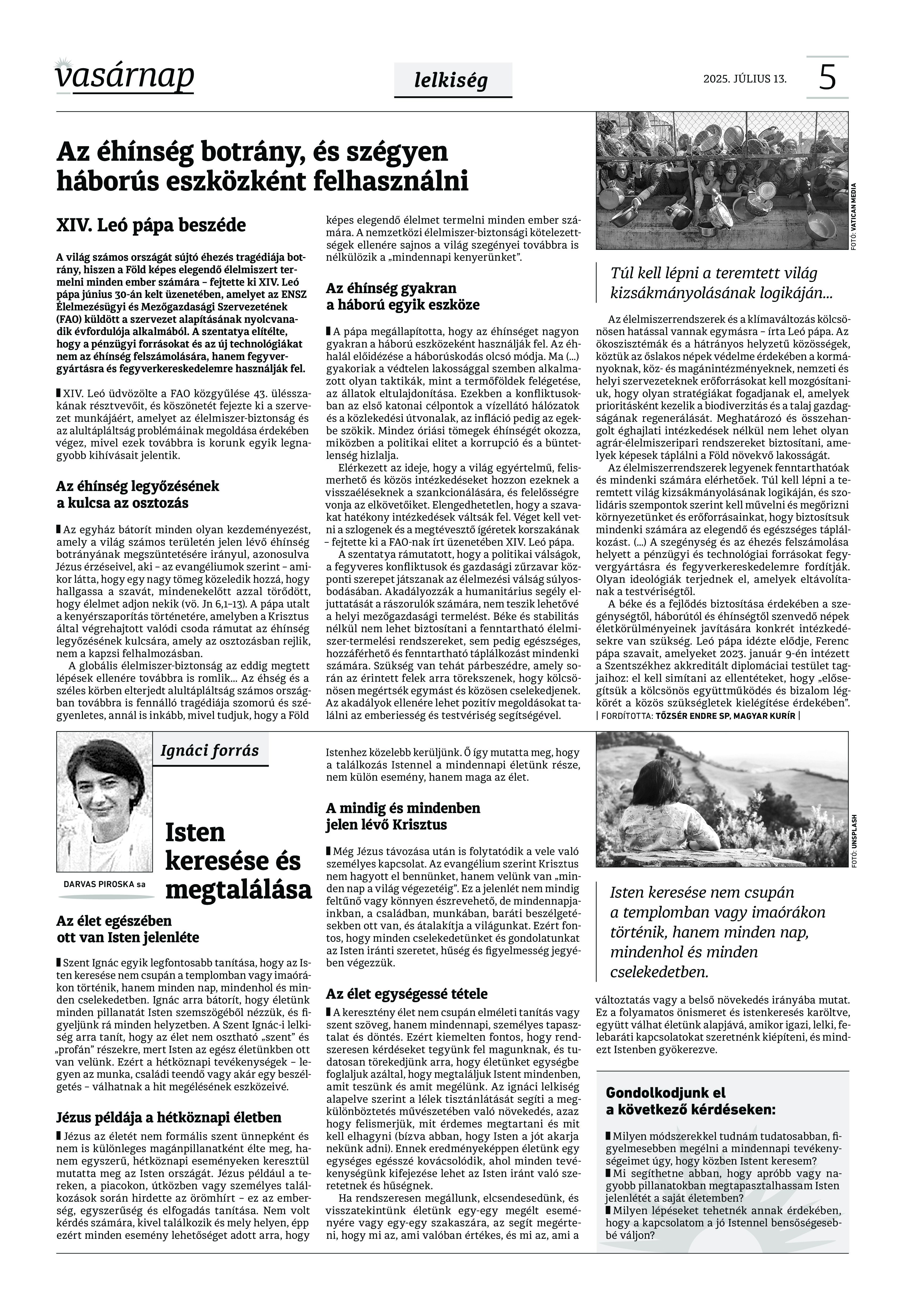 VASÁRNAP - 2025. július 13. A Vasárnap Katolikus Hetilap 2025. július 13. / XXXV évf. / 28. számának digitális változata. 1 / 12 2 & 3 / 12 4 & 5 / 12 6 & 7 / 12 8 & 9 / 12 10 & 11 / 12 12 / 12