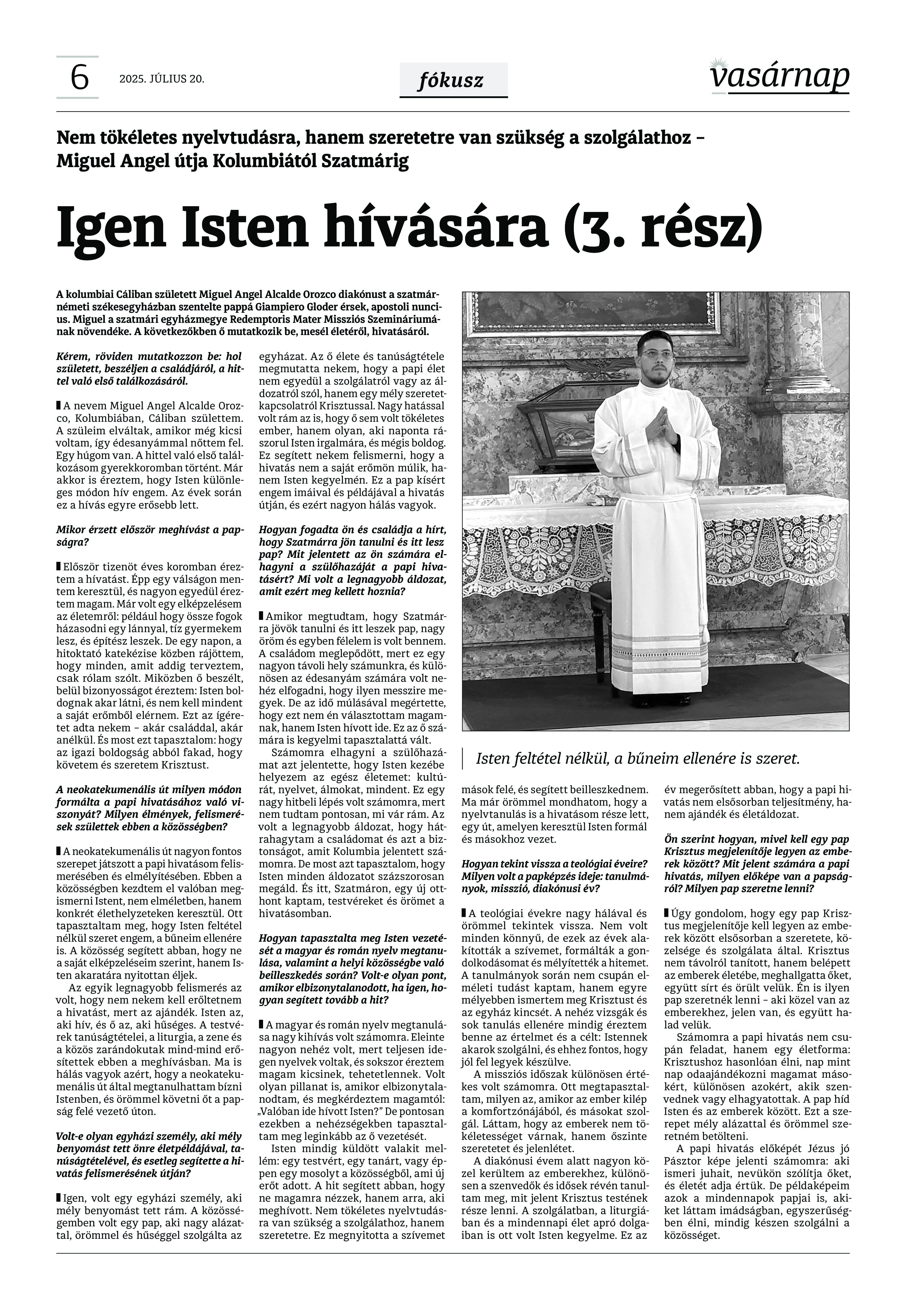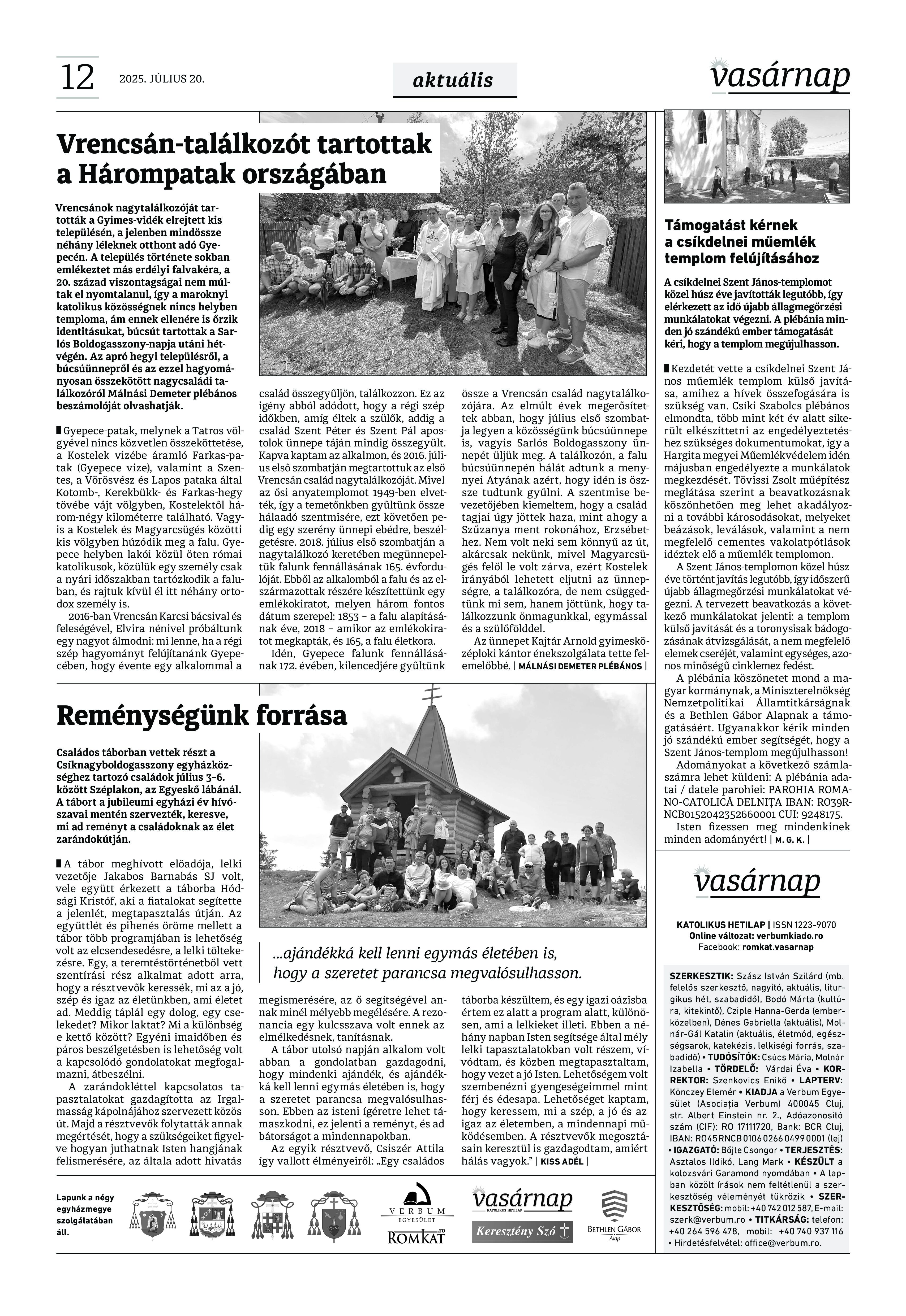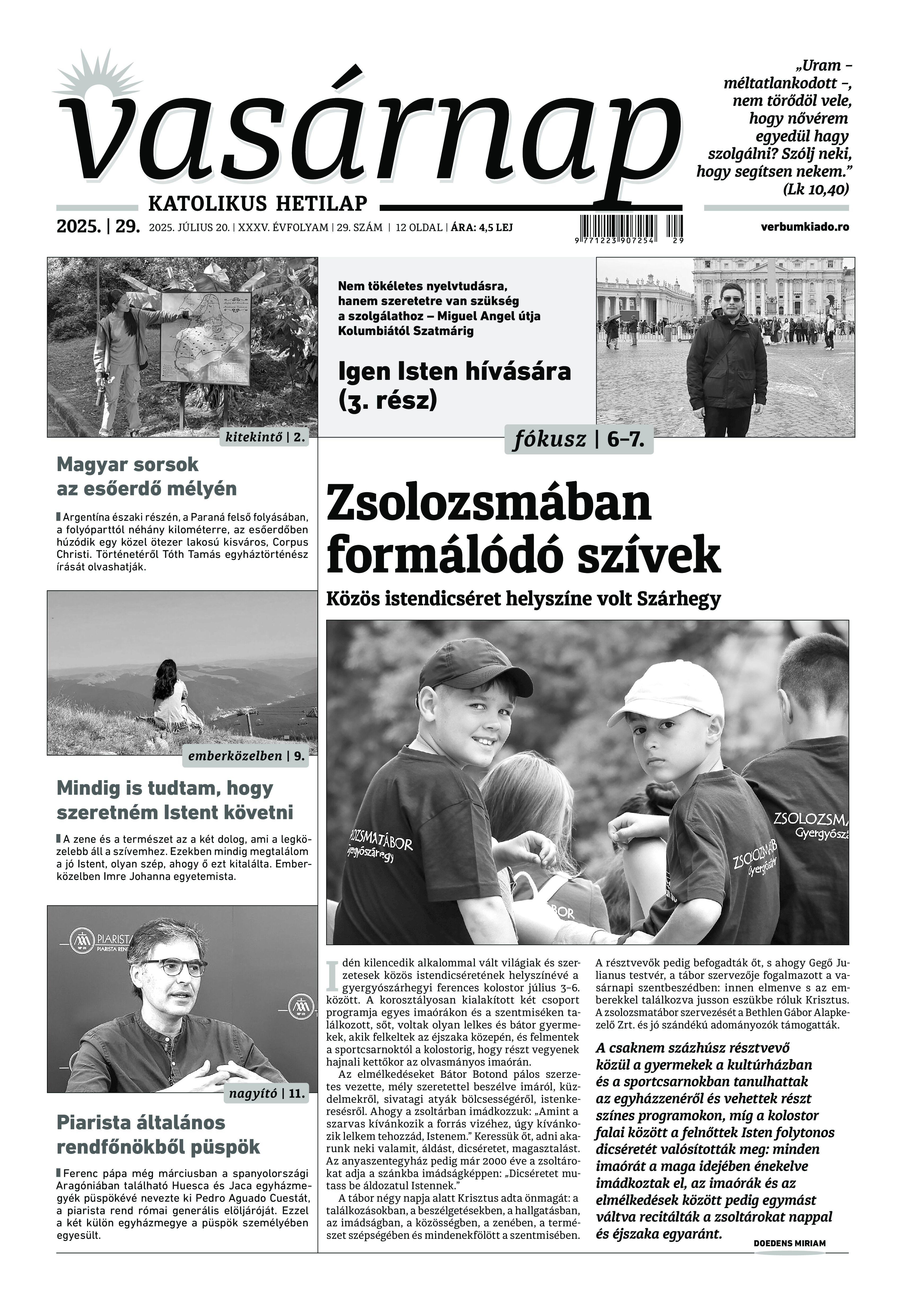 VASÁRNAP - 2025. július 20. A Vasárnap Katolikus Hetilap 2025. július 20. / XXXV évf. / 29. számának digitális változata. 1 / 12 2 & 3 / 12 4 & 5 / 12 6 & 7 / 12 8 & 9 / 12 10 & 11 / 12 12 / 12