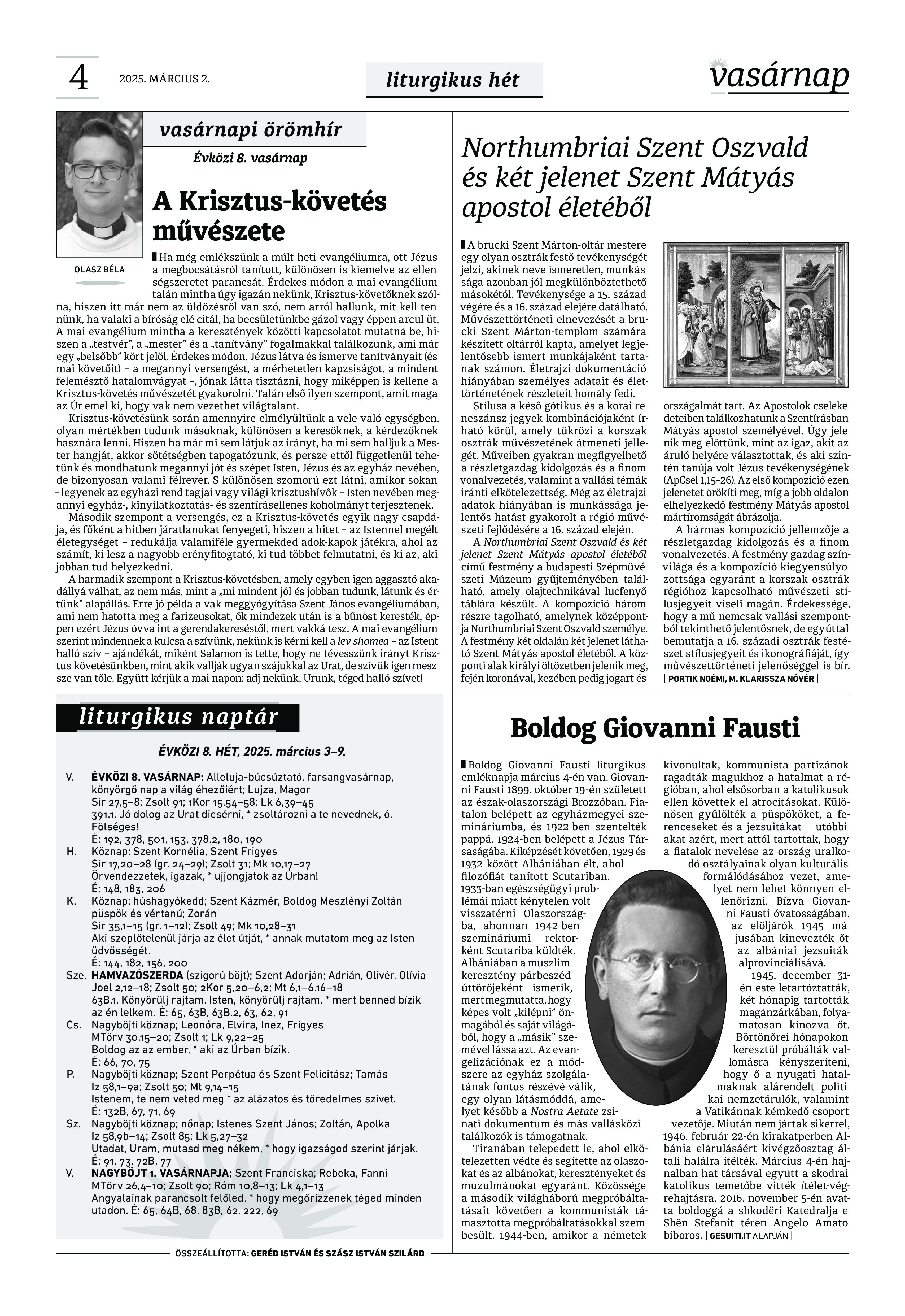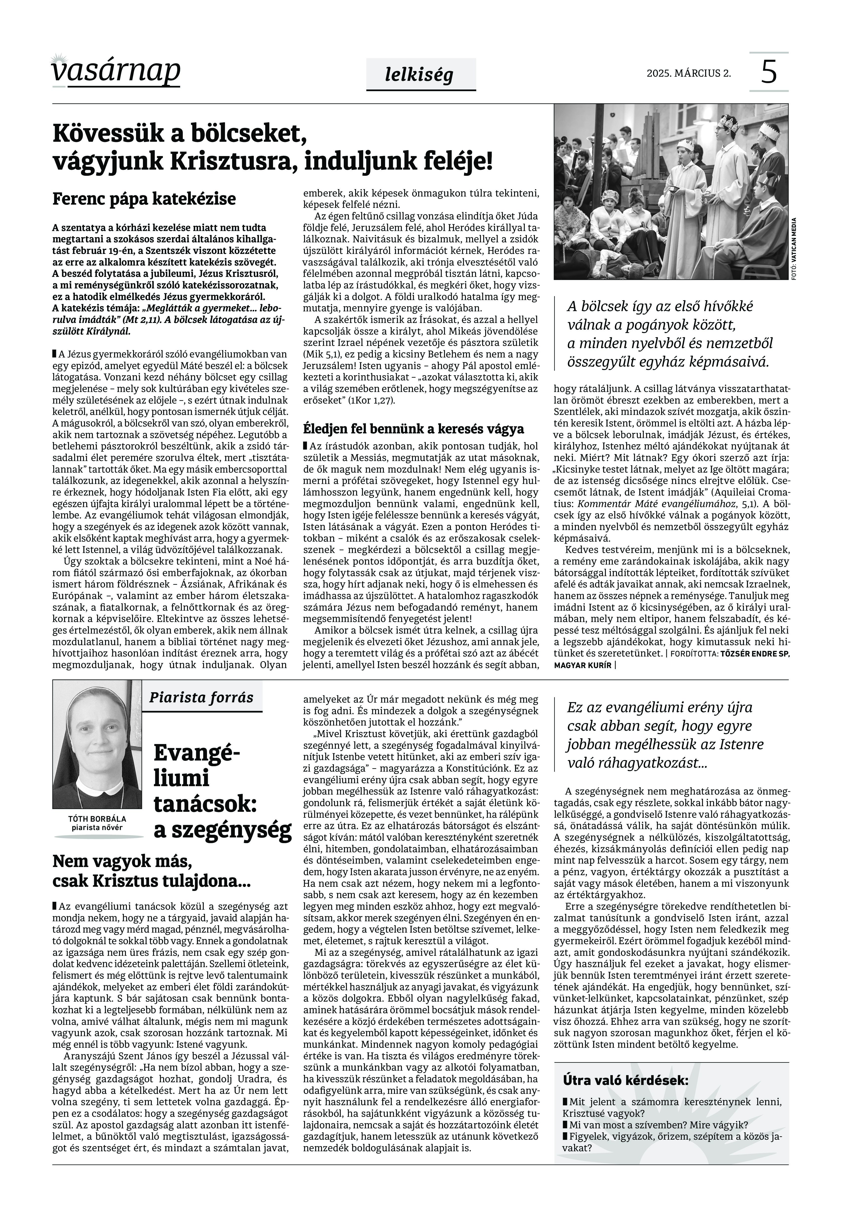A Vasárnap Katolikus Hetilap 2025. március 2. / XXXV évf. / 9. számának digitális változata.
