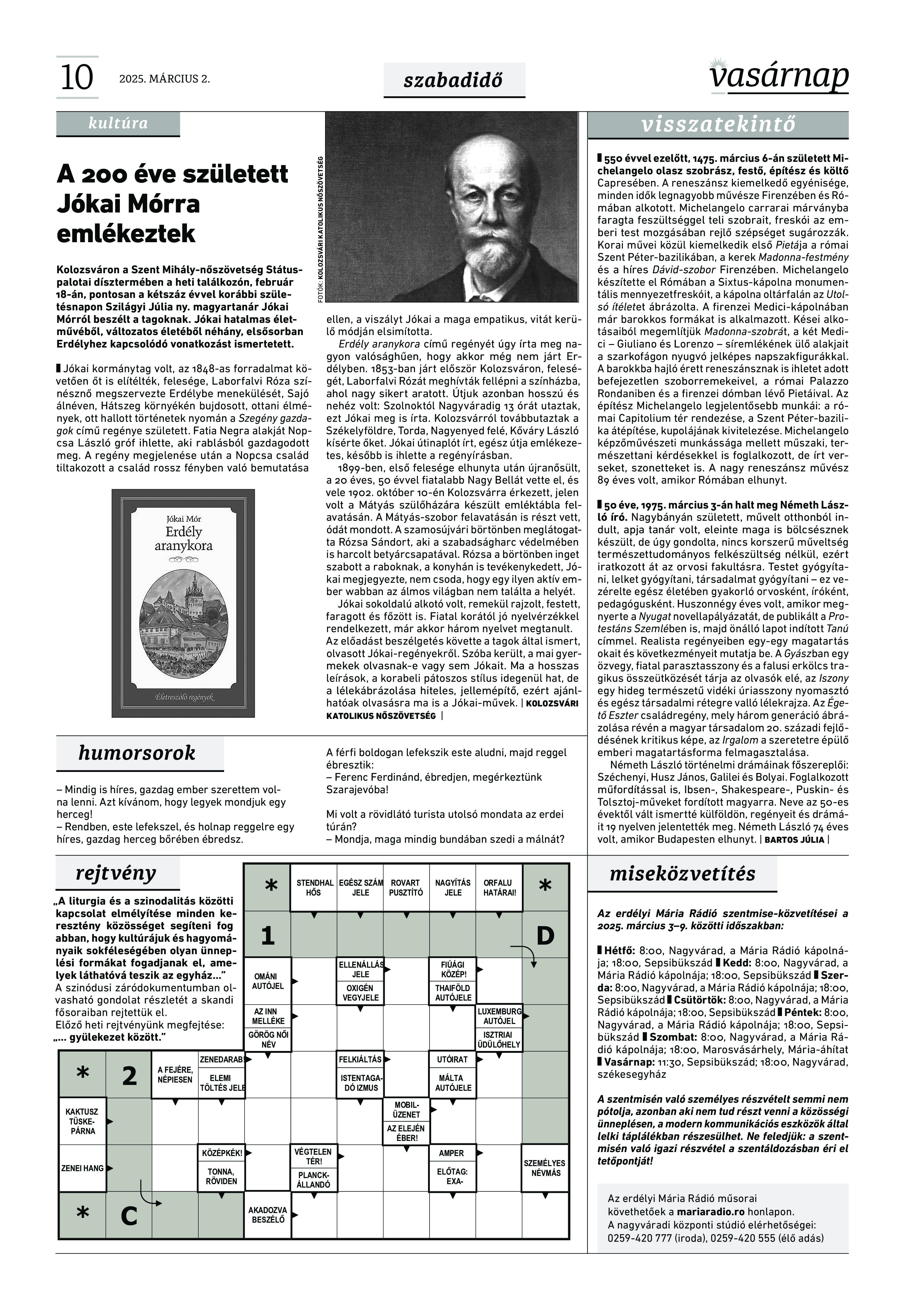 VASÁRNAP - 2025. március 2.