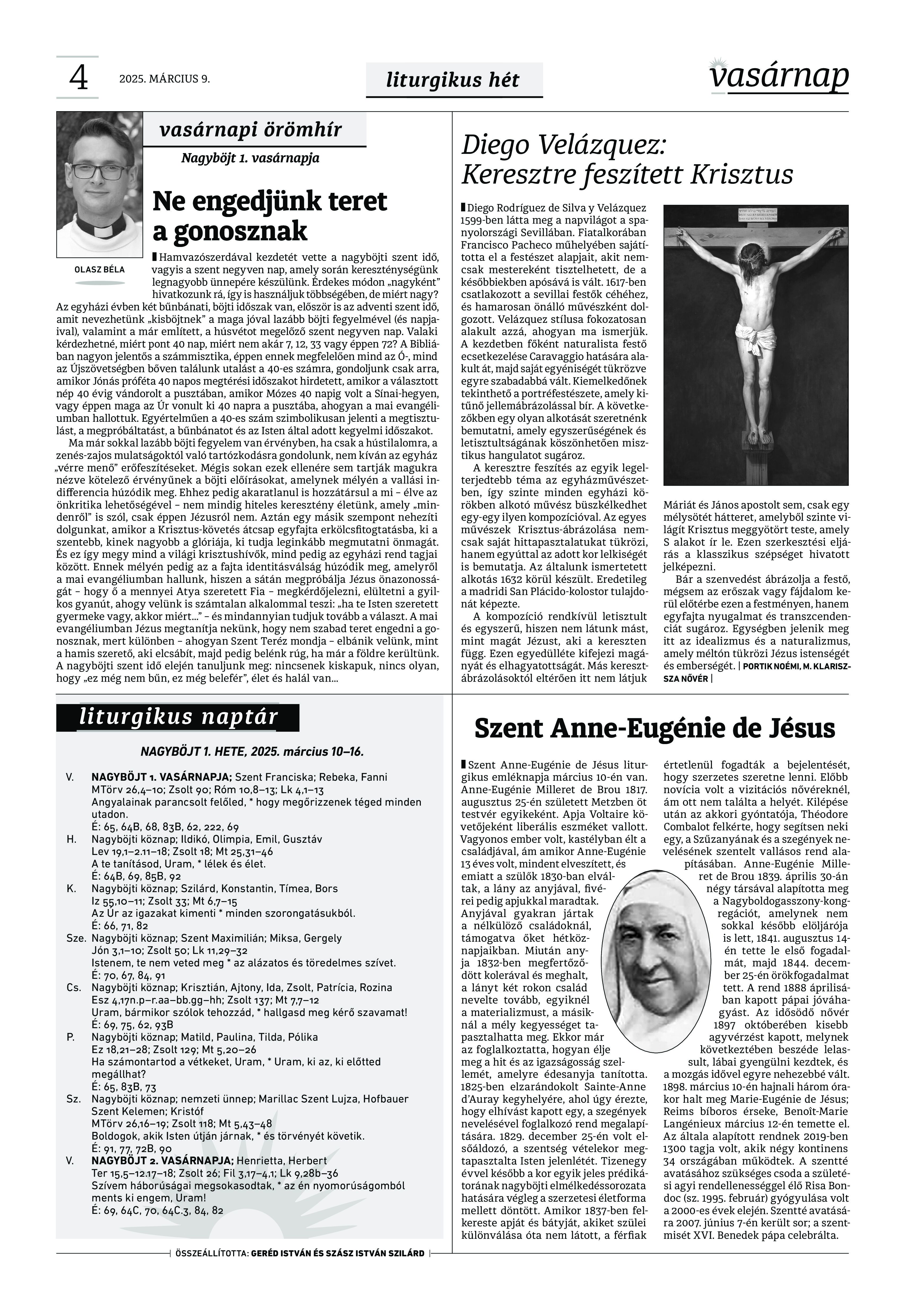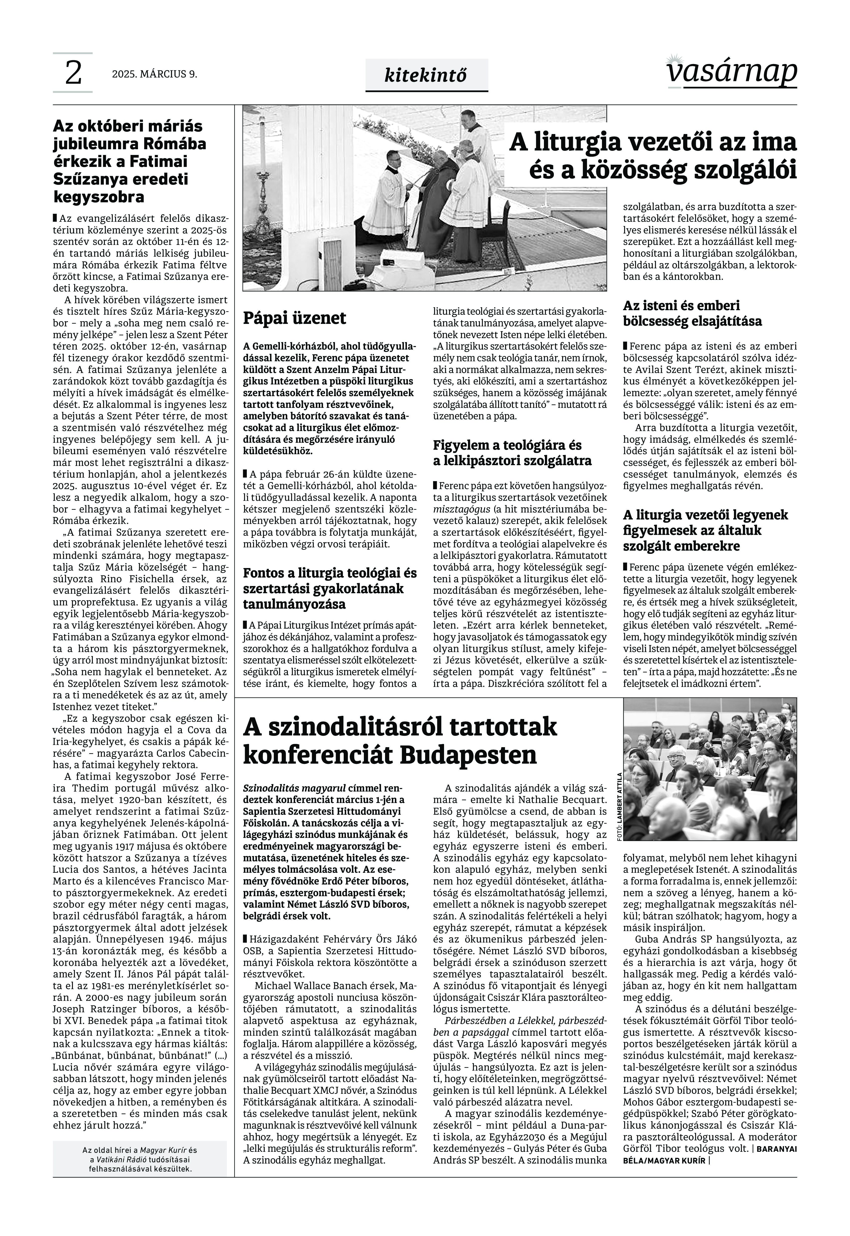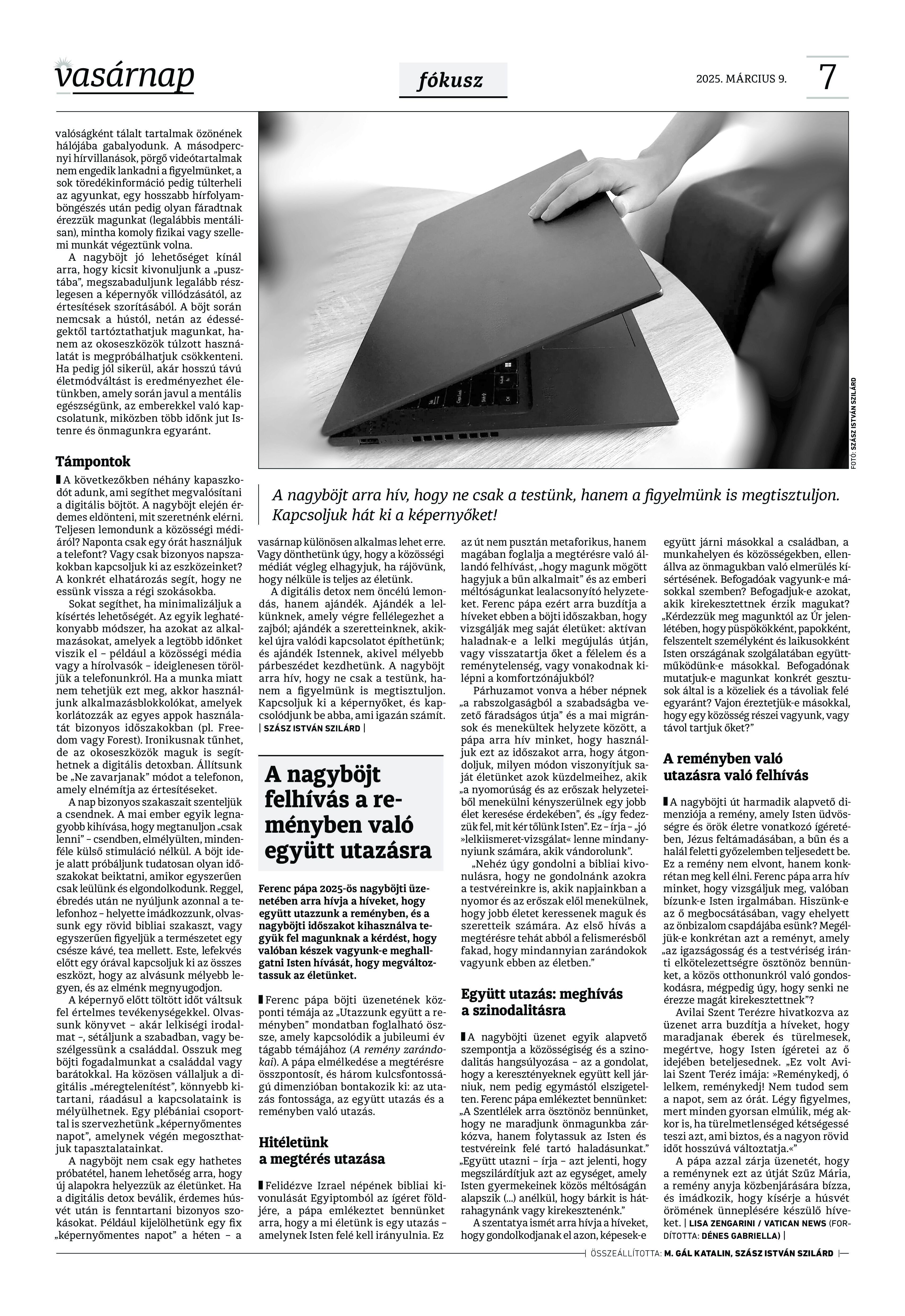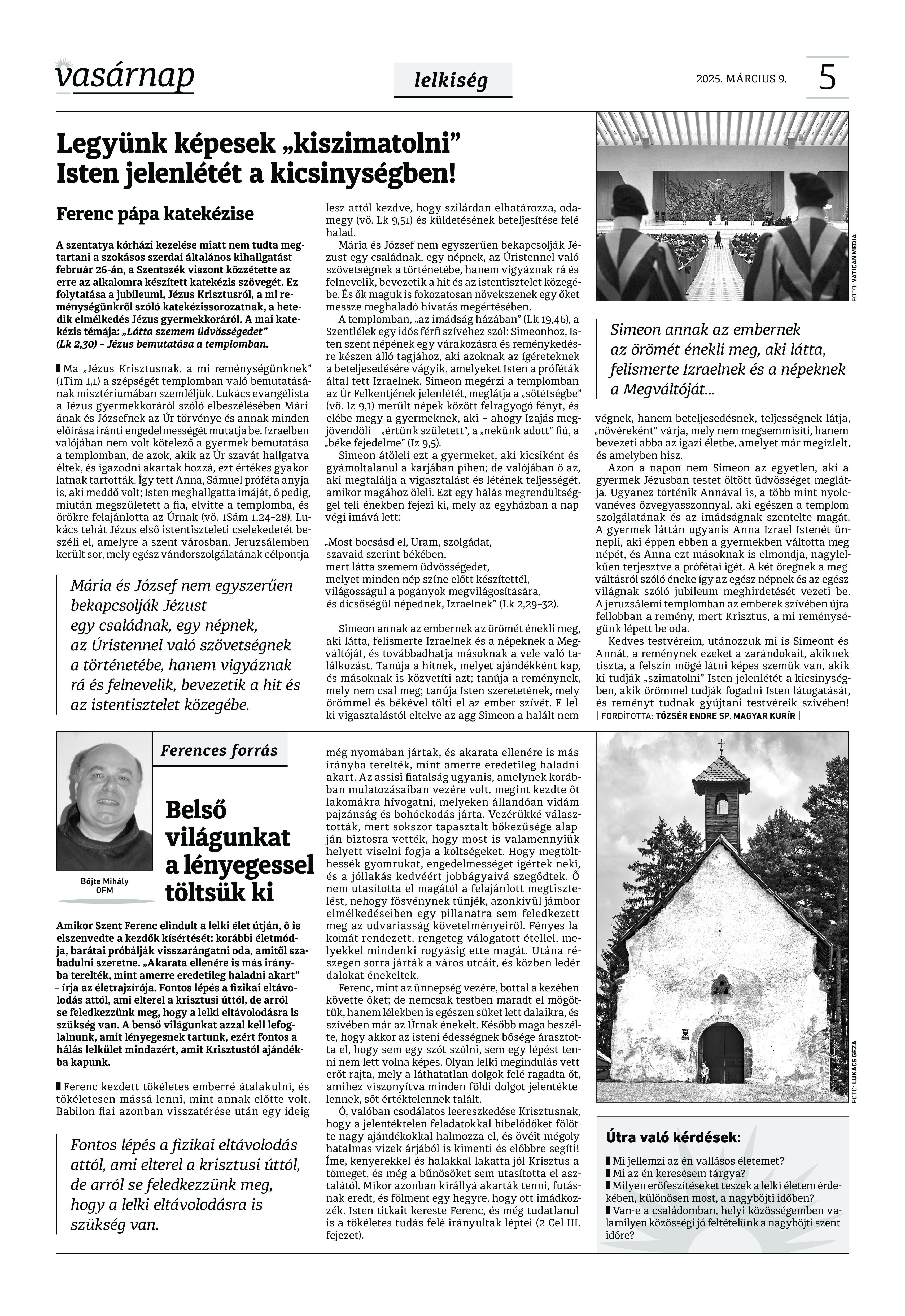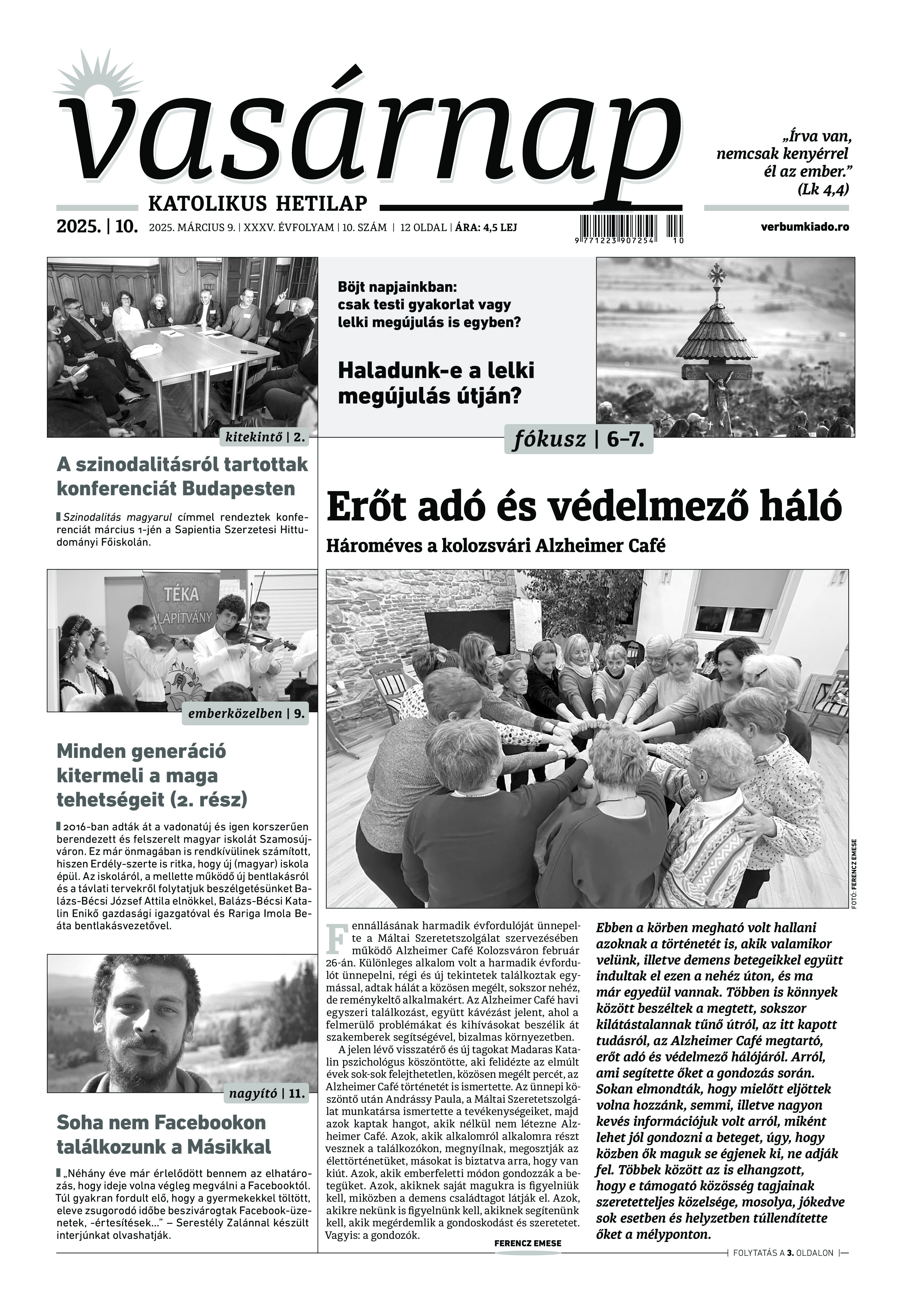 A Vasárnap Katolikus Hetilap 2025. március 9. / XXXV évf. / 10. számának digitális változata.