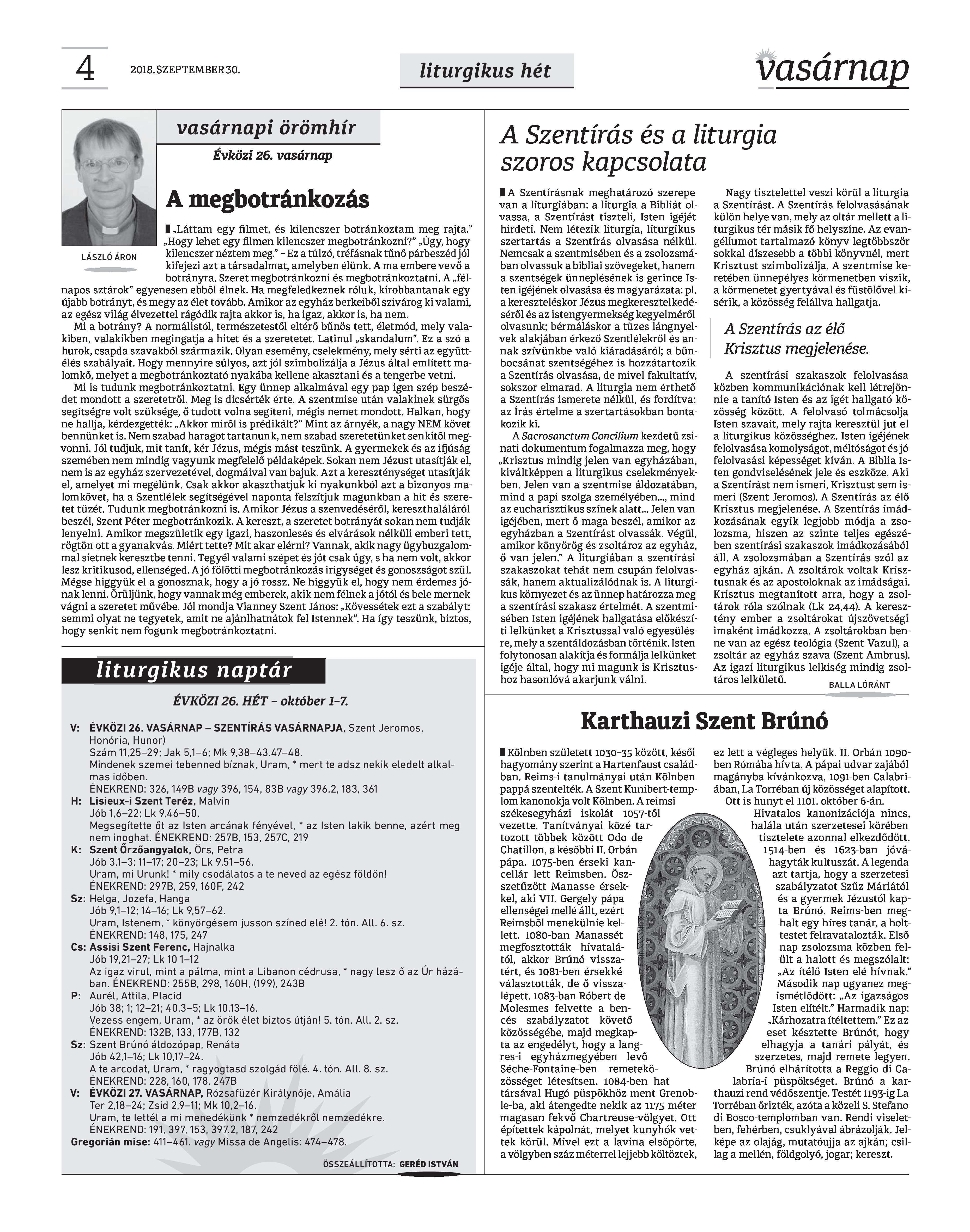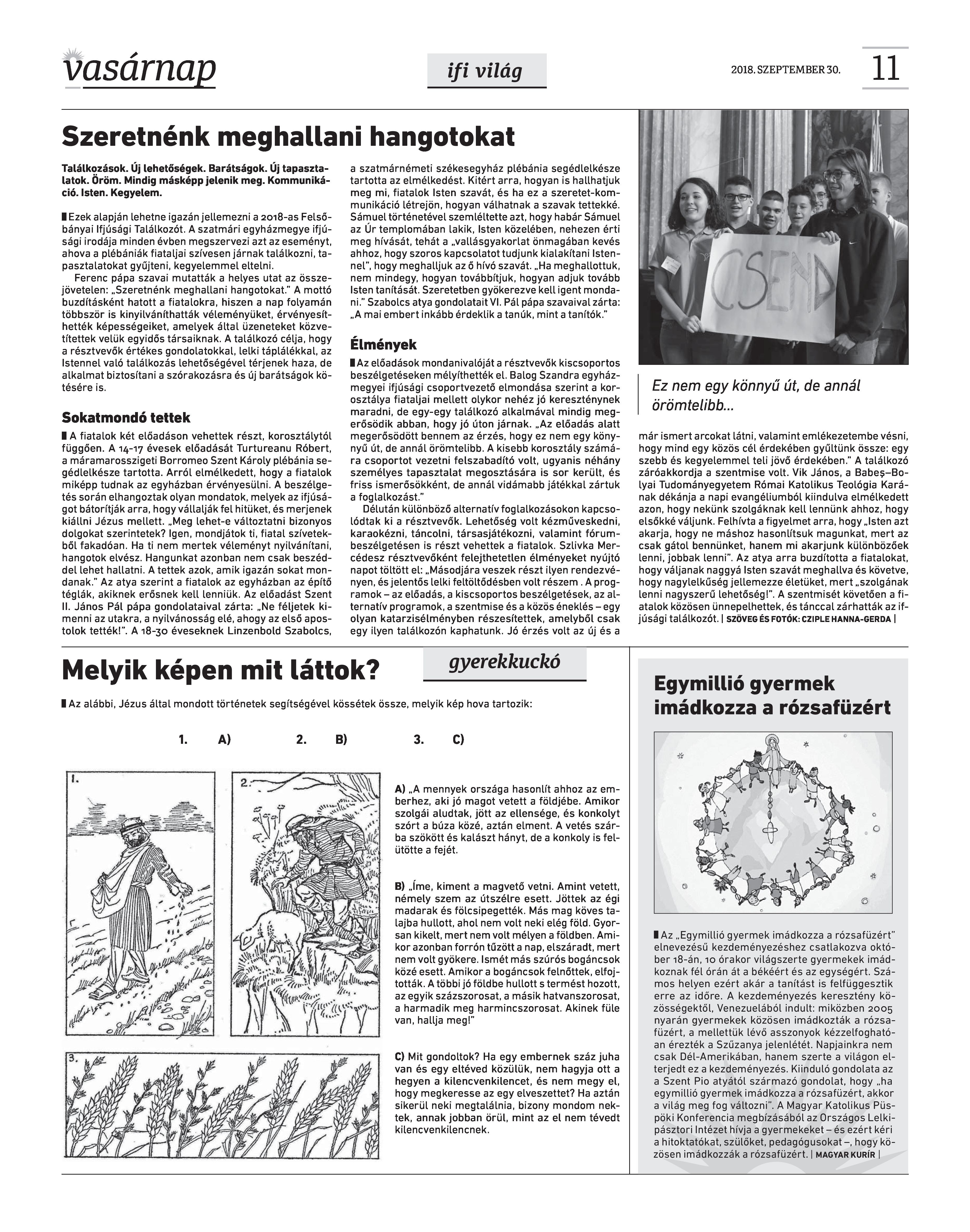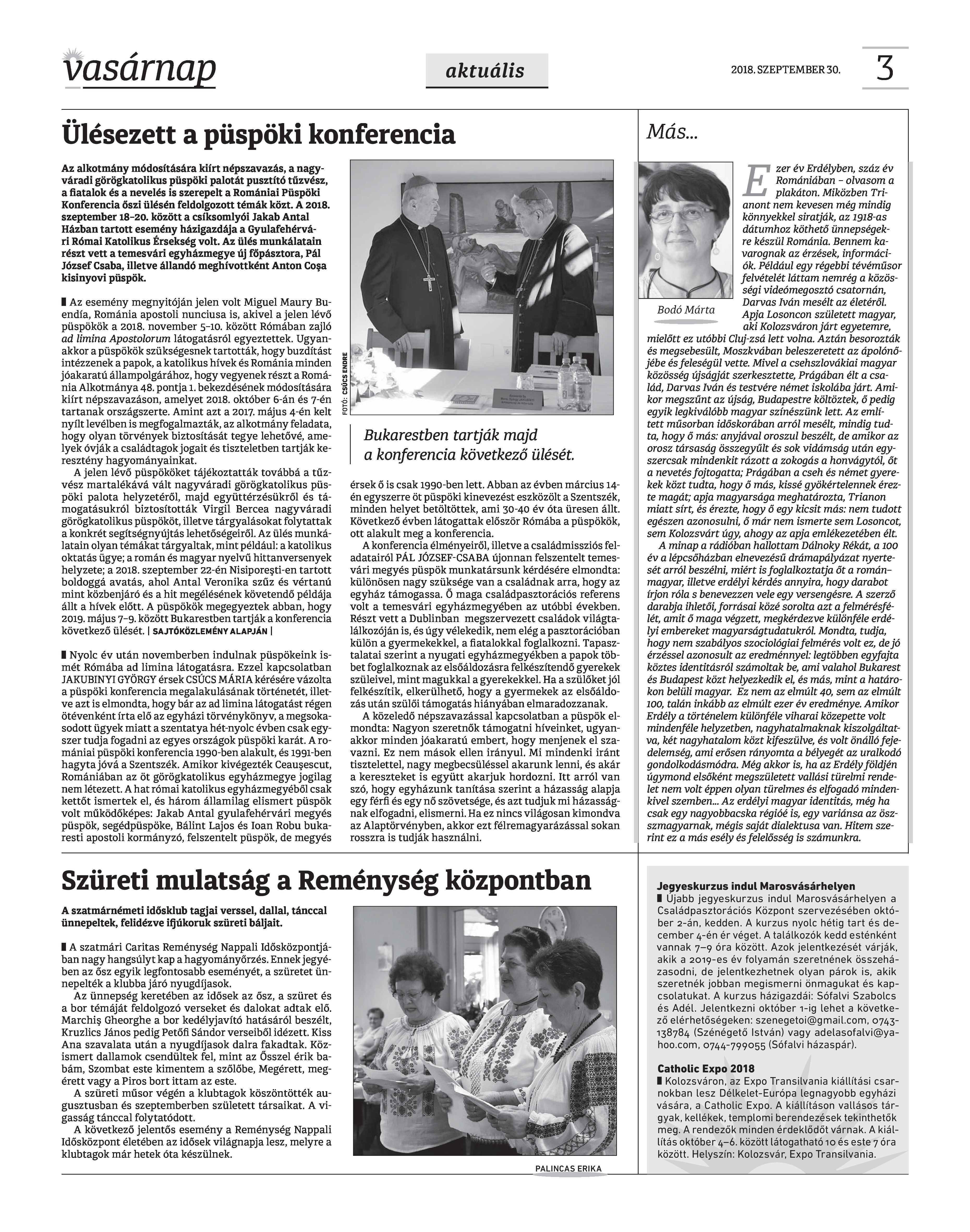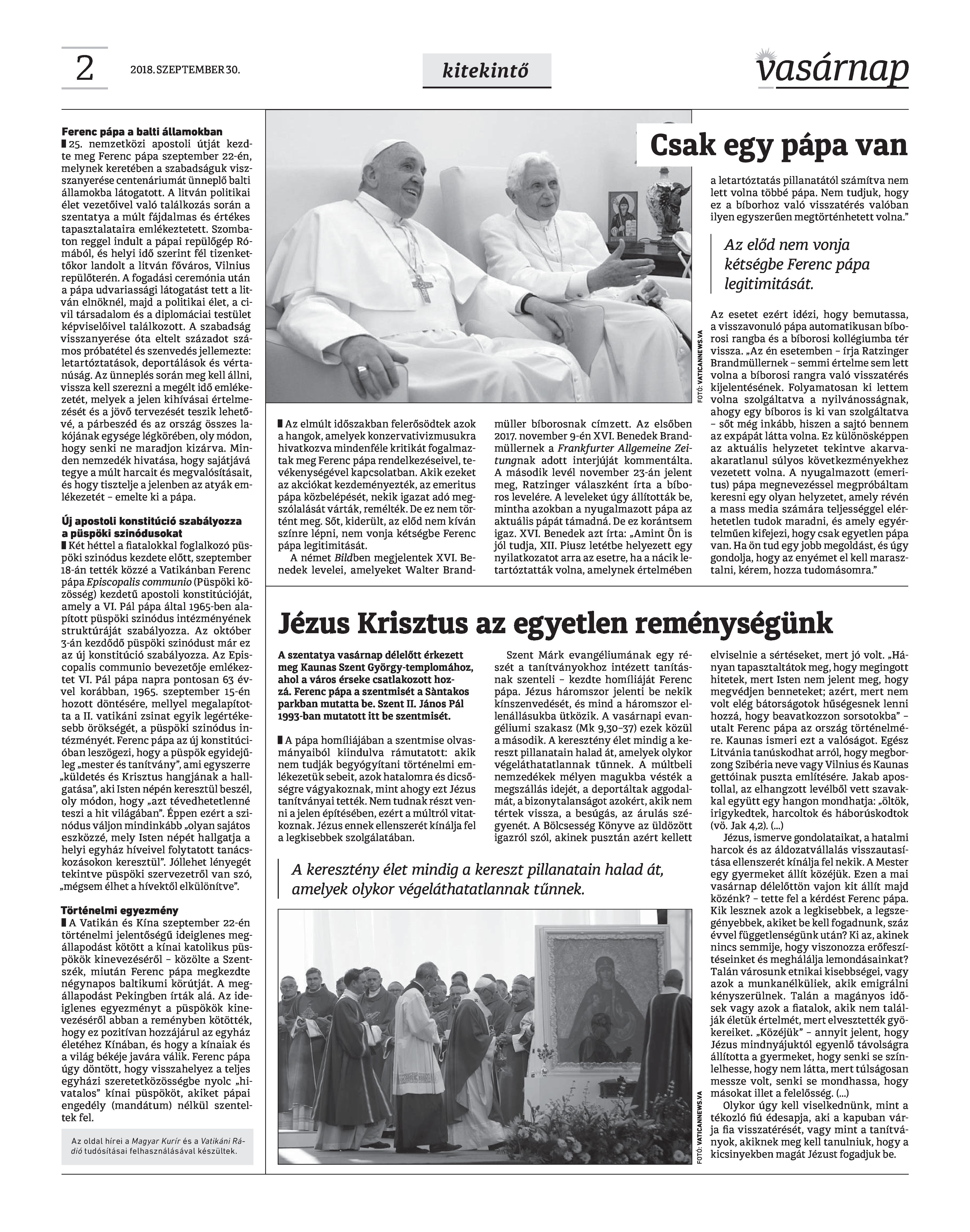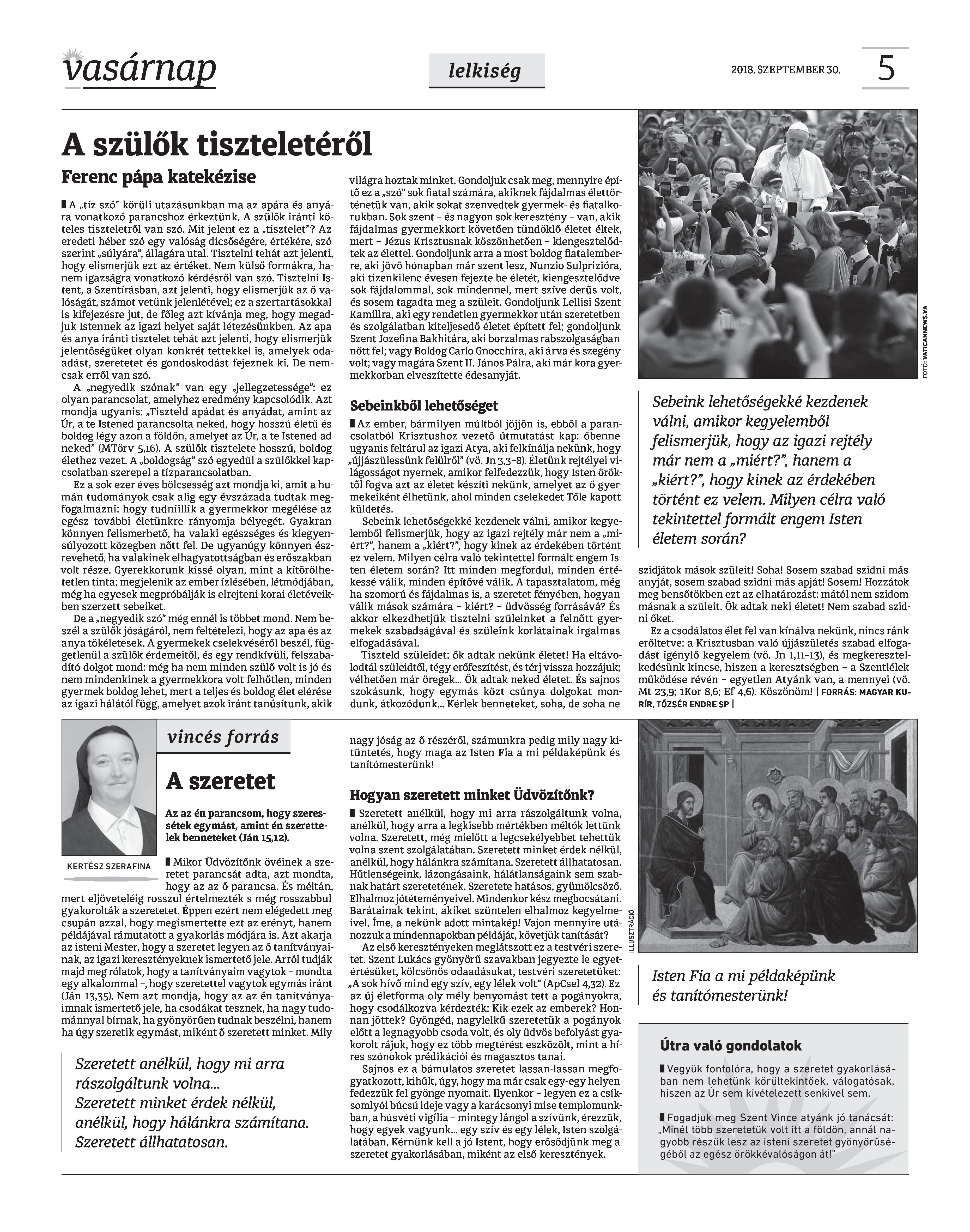 VASÁRNAP - 2018. SZEPTEMBER 30. A Vasárnap Katolikus Hetilap 2018. szeptember 30. / XXVIII. évf. / 39. számának digitális változata.