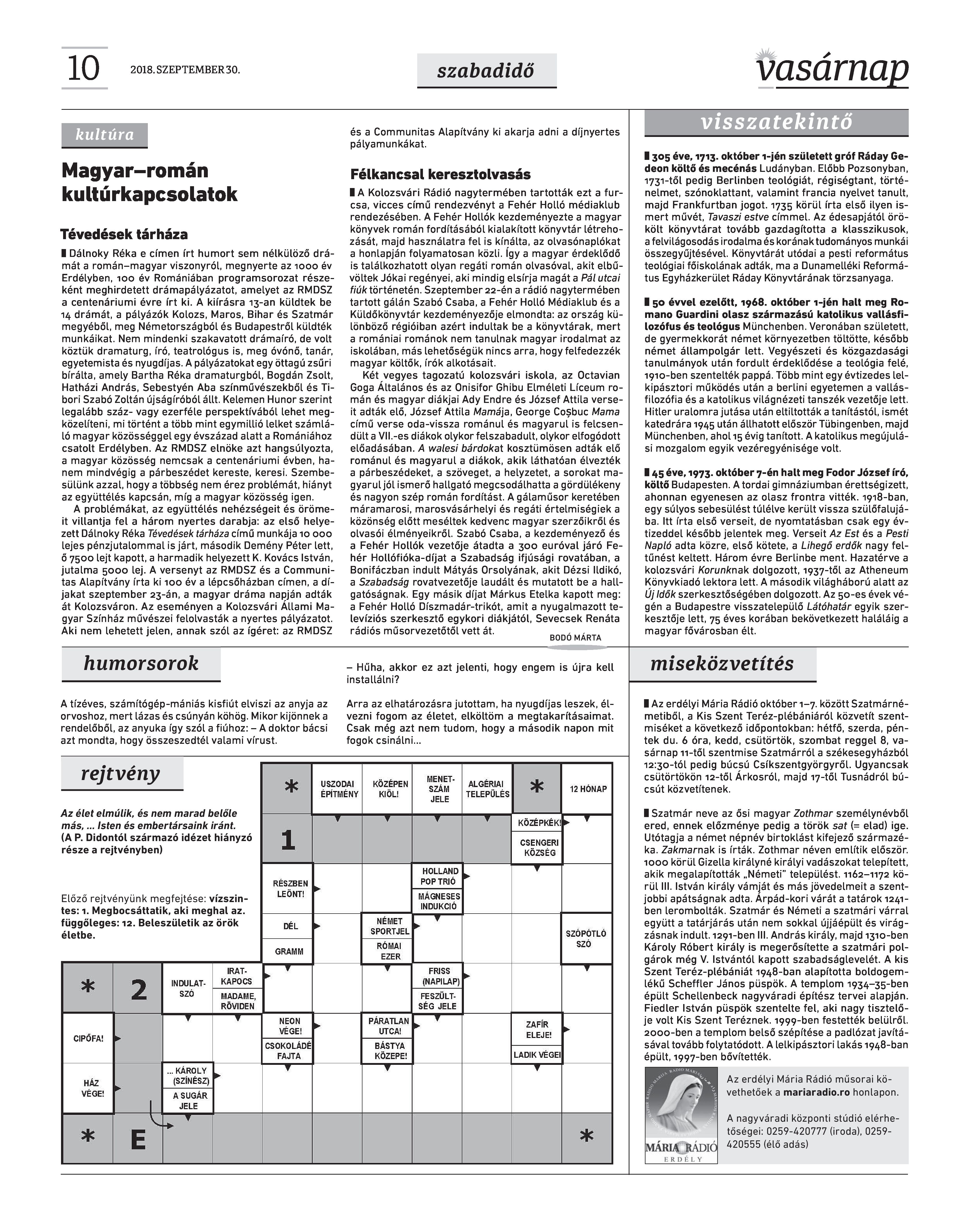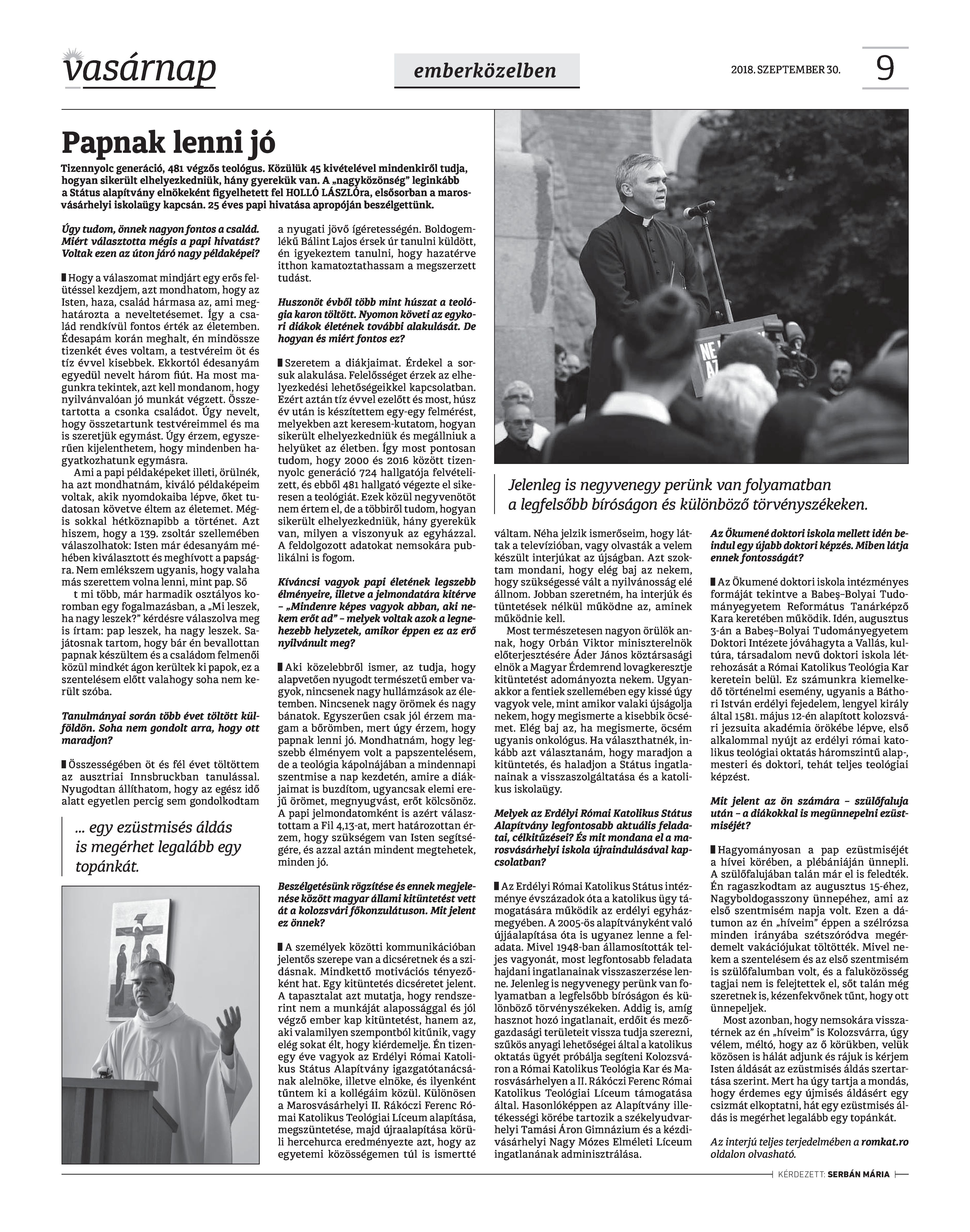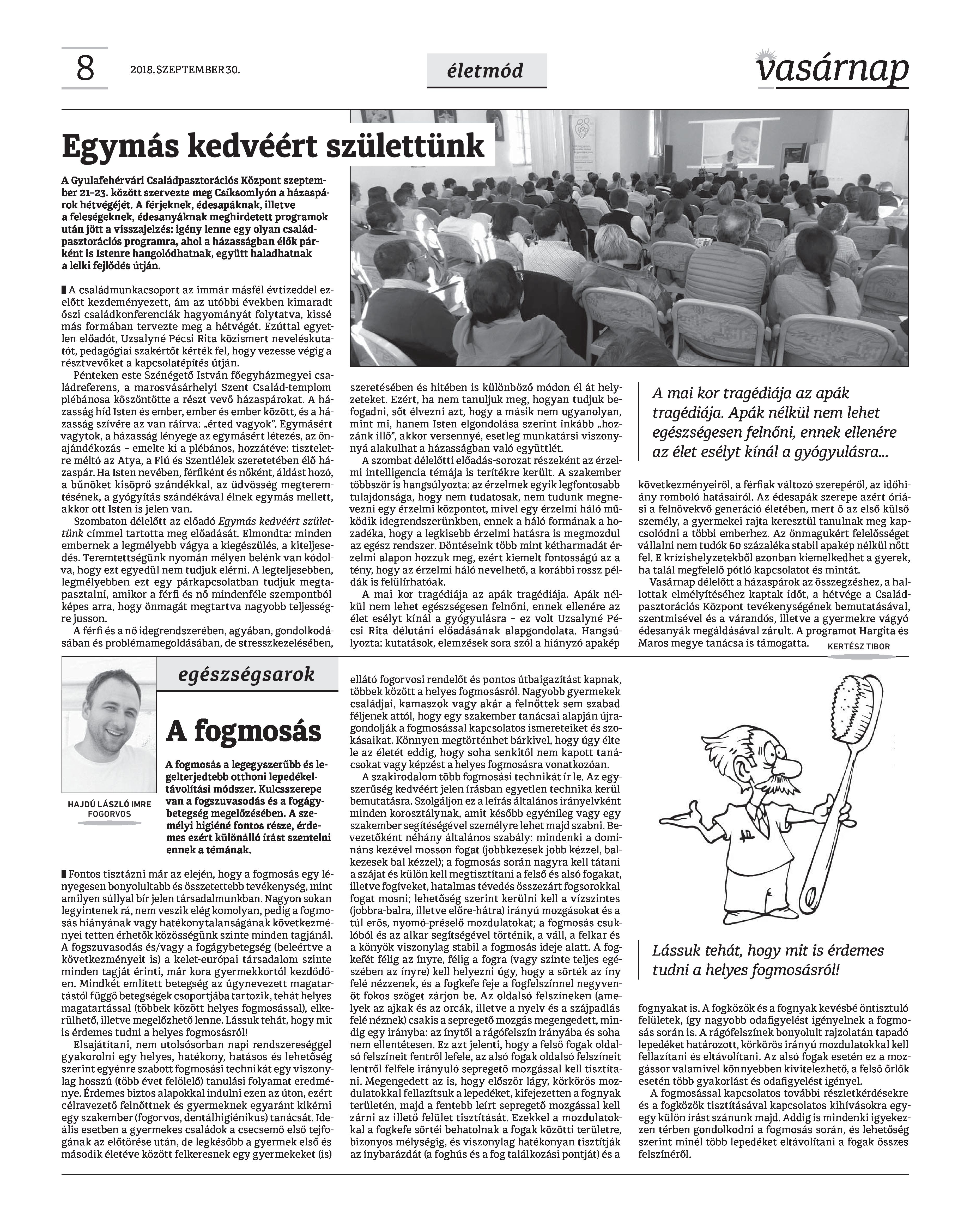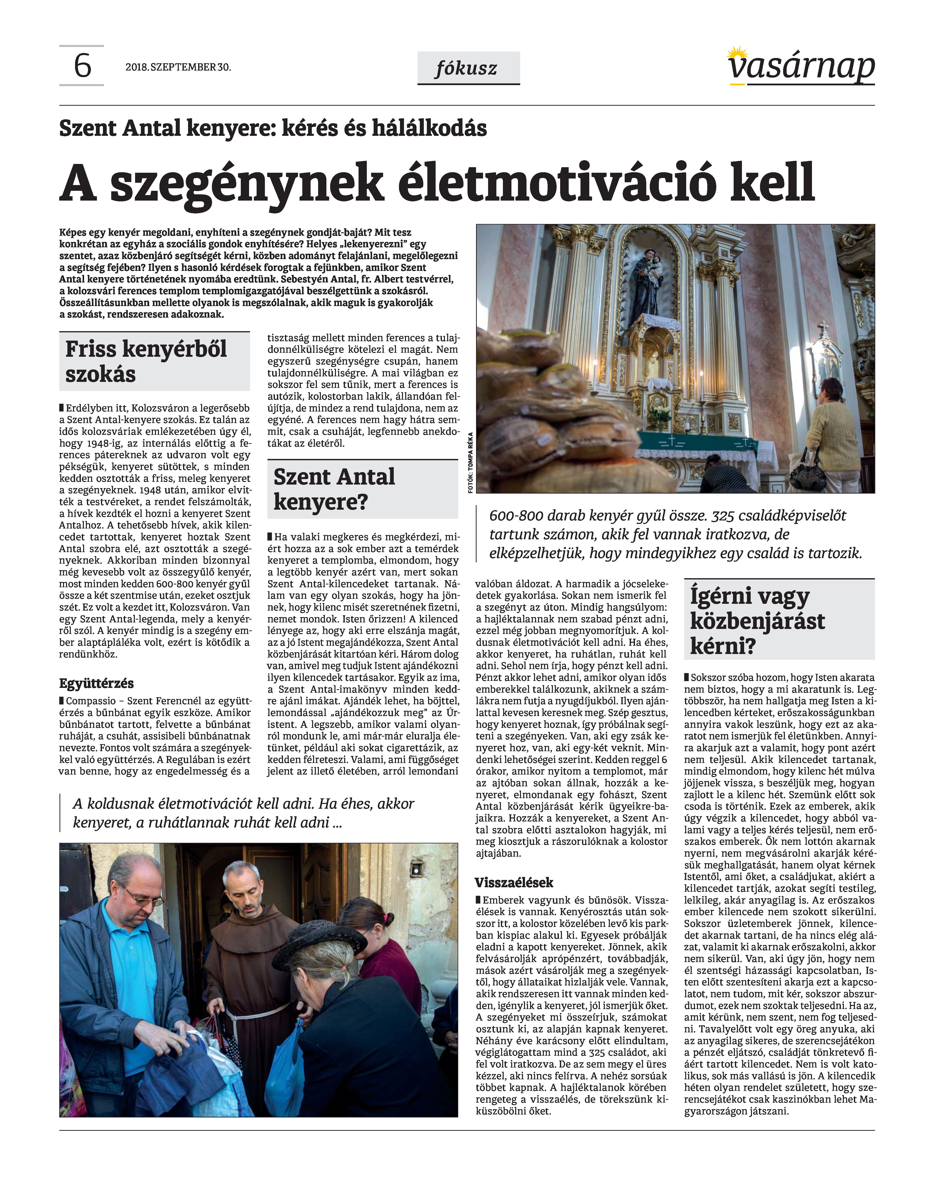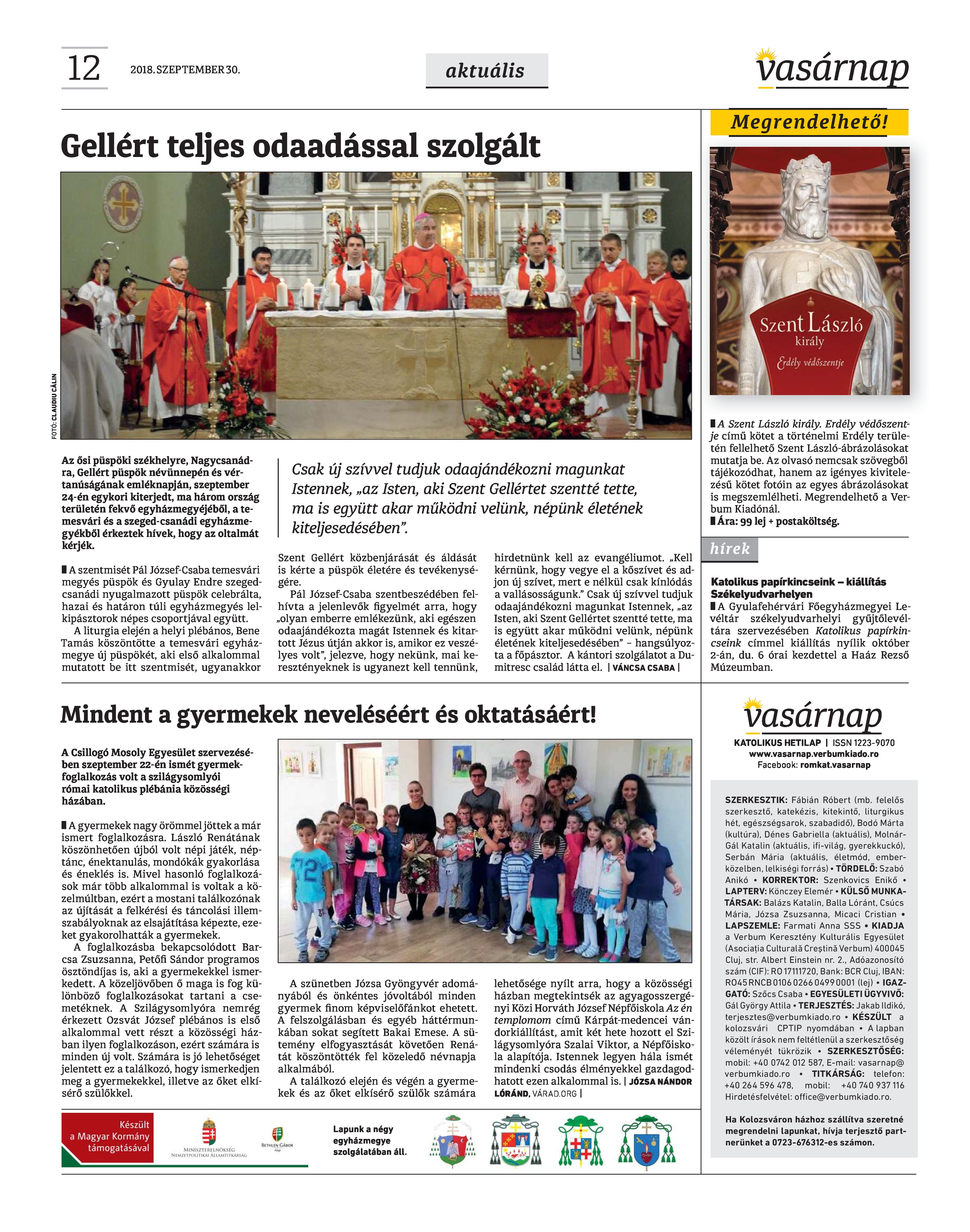 VASÁRNAP - 2018. SZEPTEMBER 30. A Vasárnap Katolikus Hetilap 2018. szeptember 30. / XXVIII. évf. / 39. számának digitális változata.