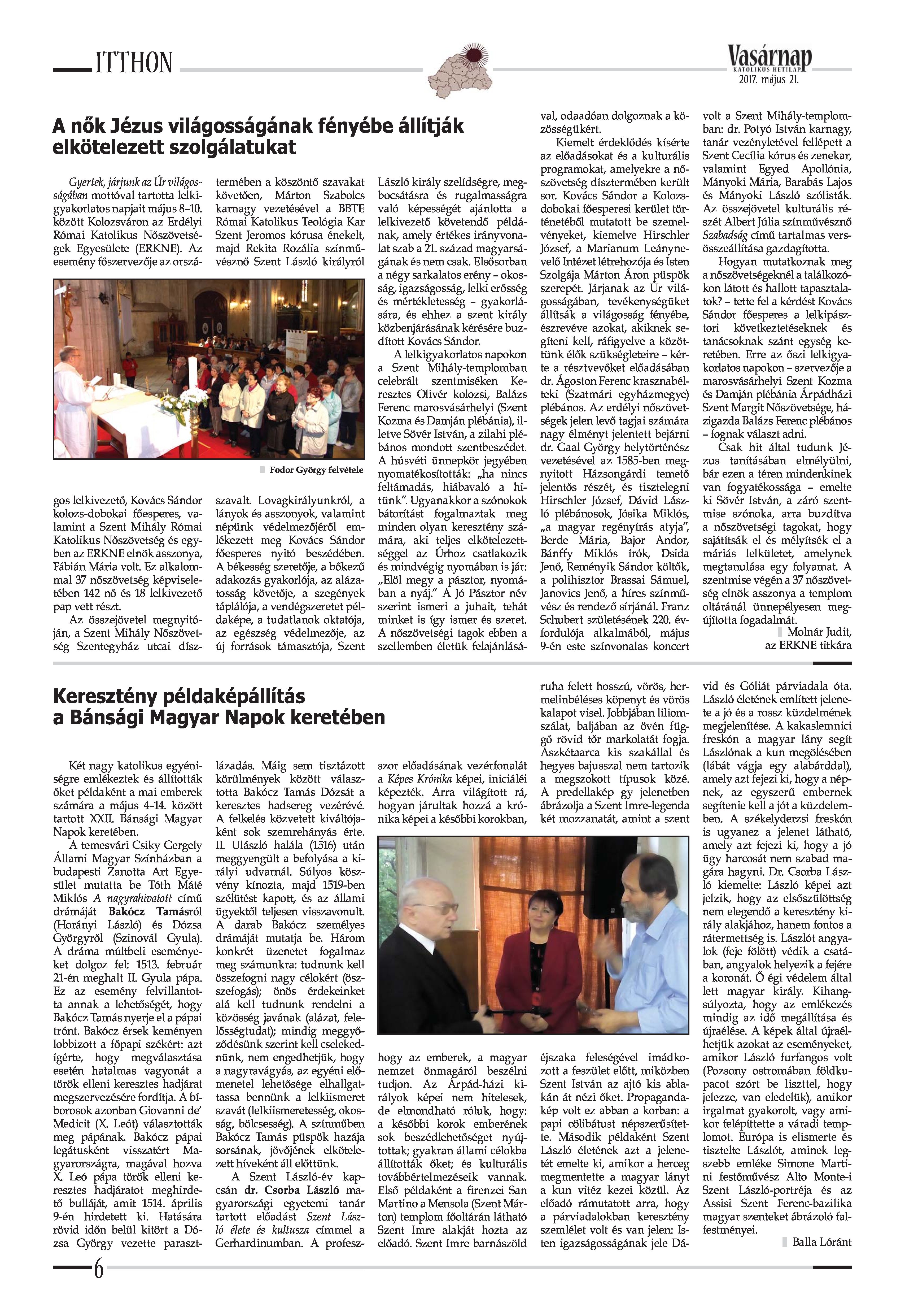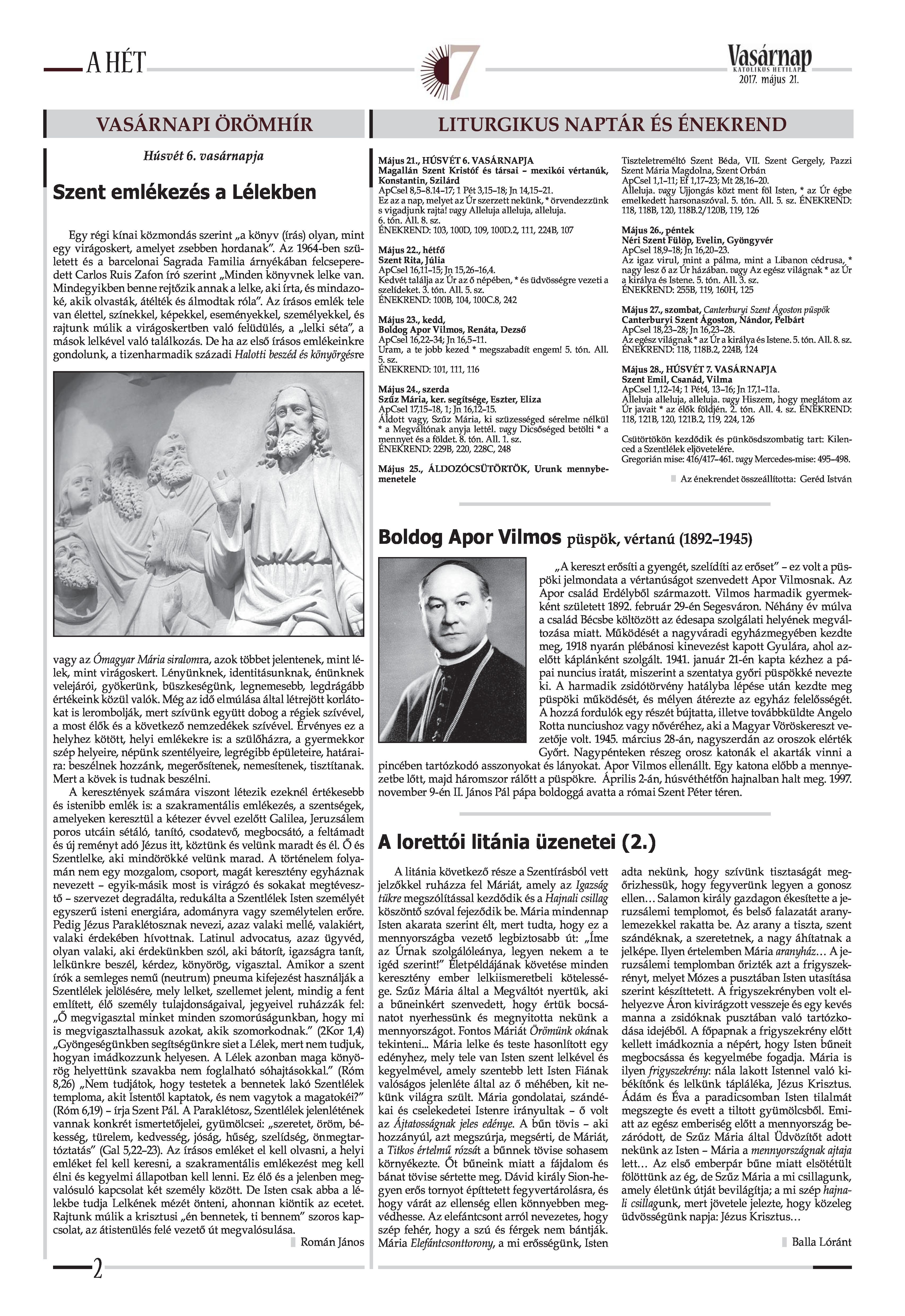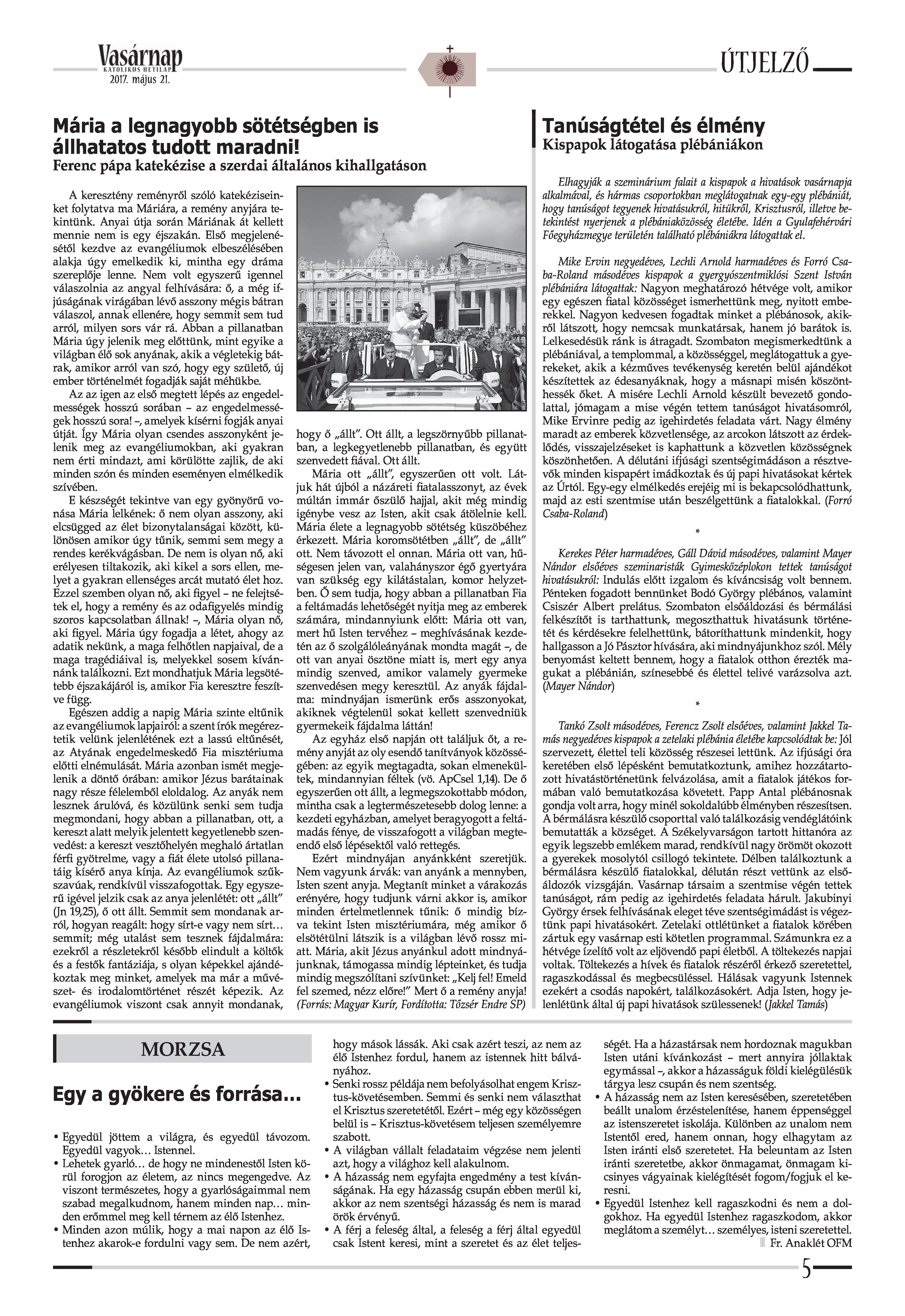 VASÁRNAP - 2017. MÁJUS 21. A Vasárnap Katolikus Hetilap 2017. május 21. / XXVII. évf. / 21. számának digitális változata. 1 / 12 2 & 3 / 12 4 & 5 / 12 6 & 7 / 12 8 & 9 / 12 10 & 11 / 12 12 / 12