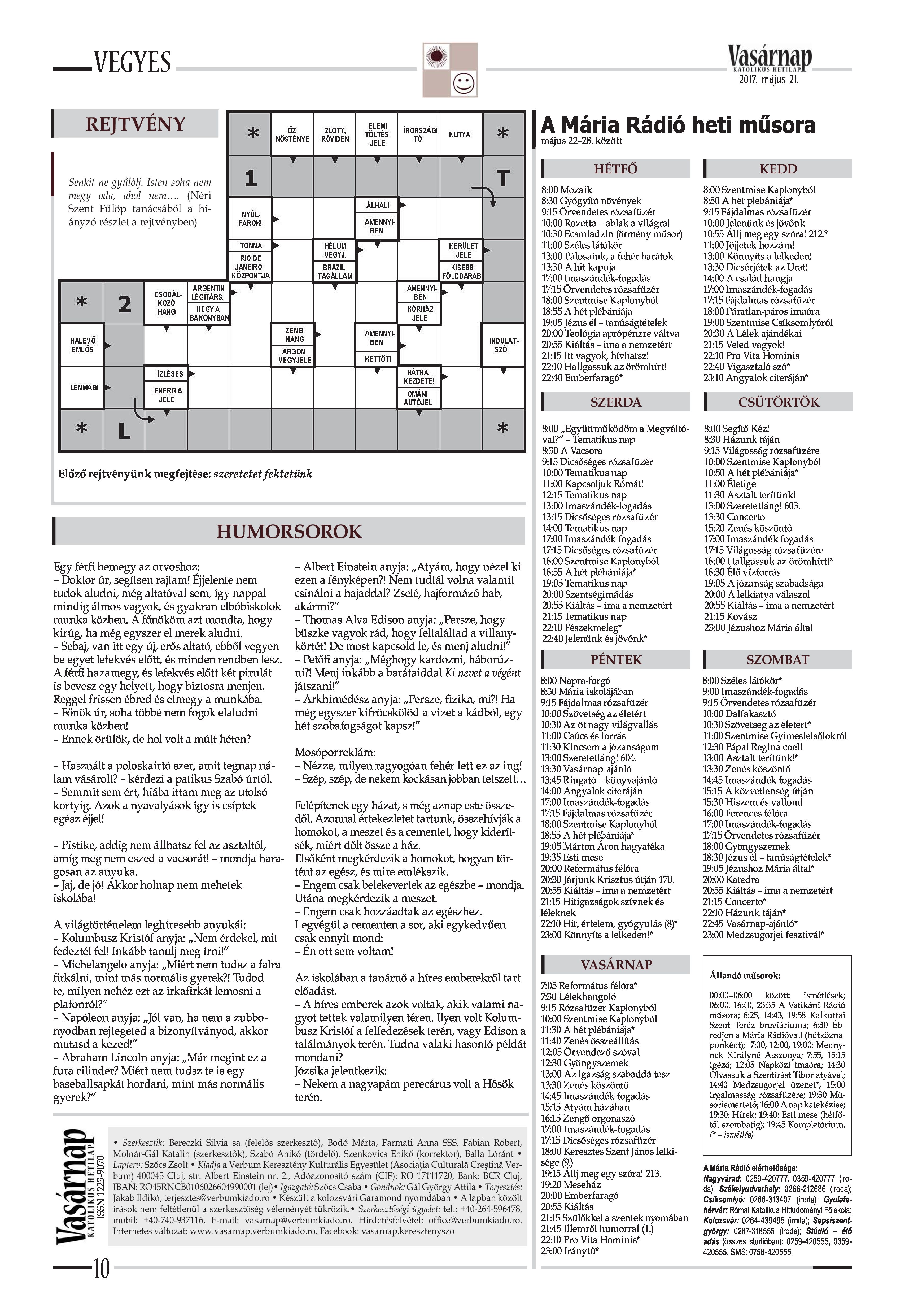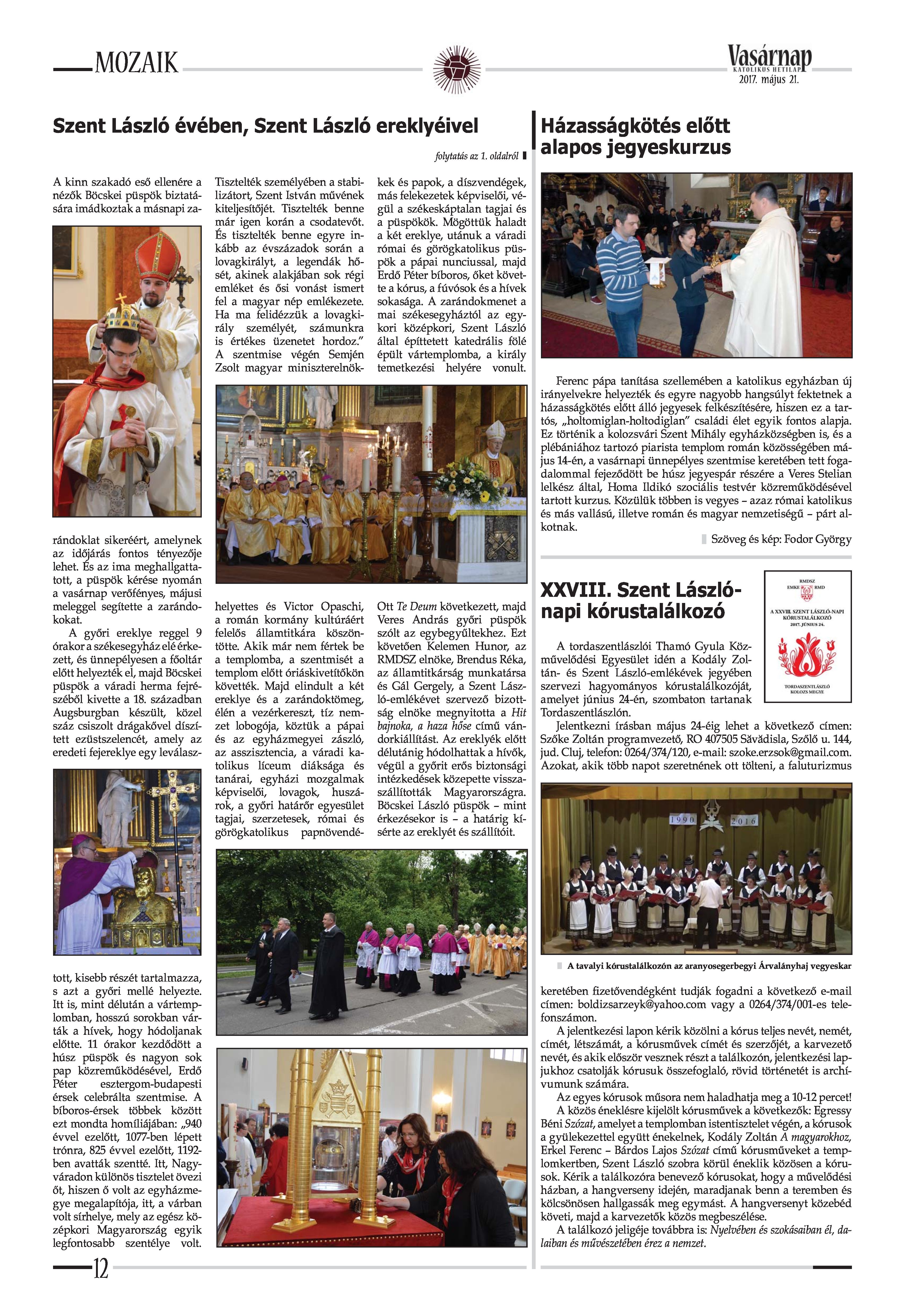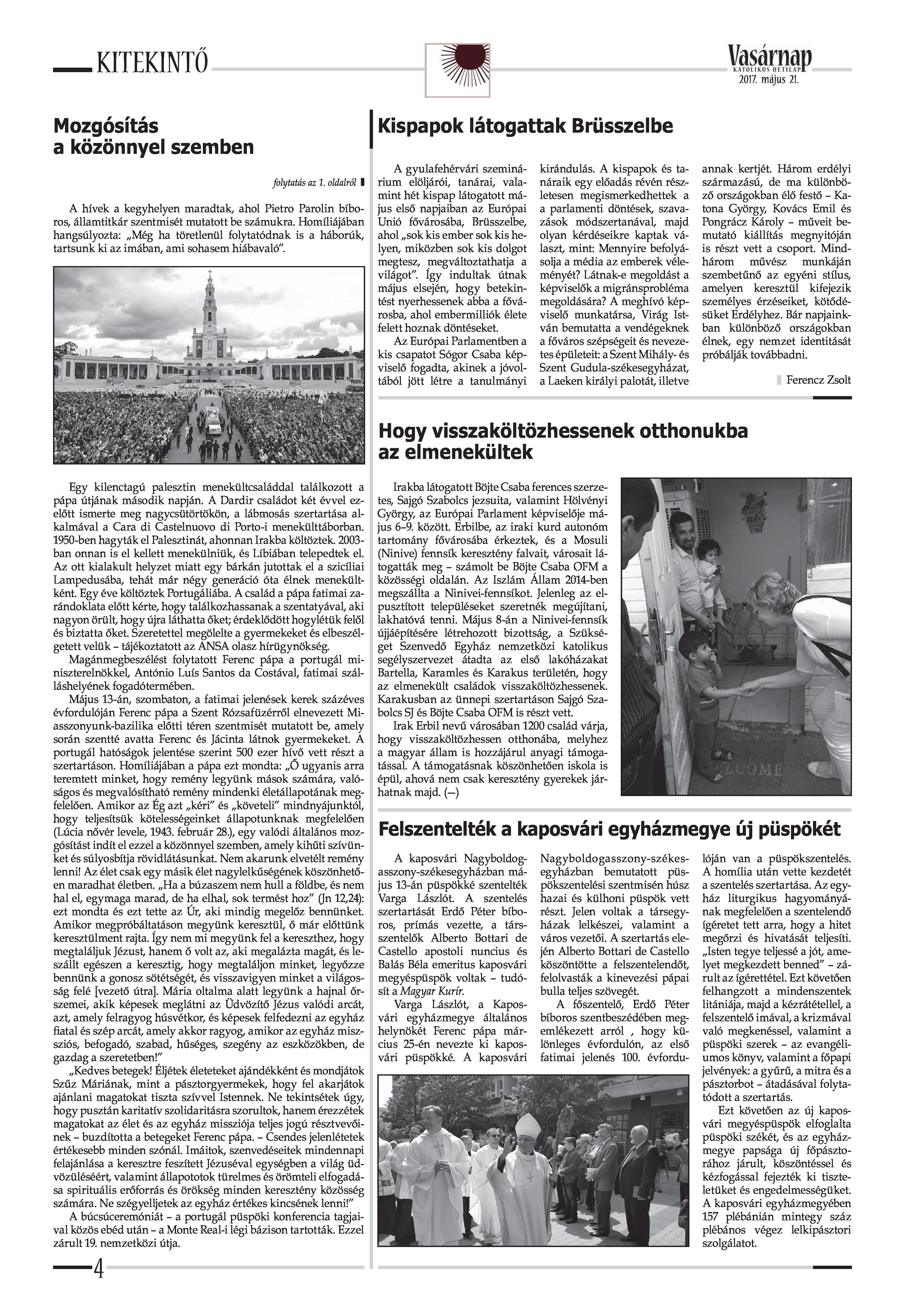 VASÁRNAP - 2017. MÁJUS 21. A Vasárnap Katolikus Hetilap 2017. május 21. / XXVII. évf. / 21. számának digitális változata. 1 / 12 2 & 3 / 12 4 & 5 / 12 6 & 7 / 12 8 & 9 / 12 10 & 11 / 12 12 / 12