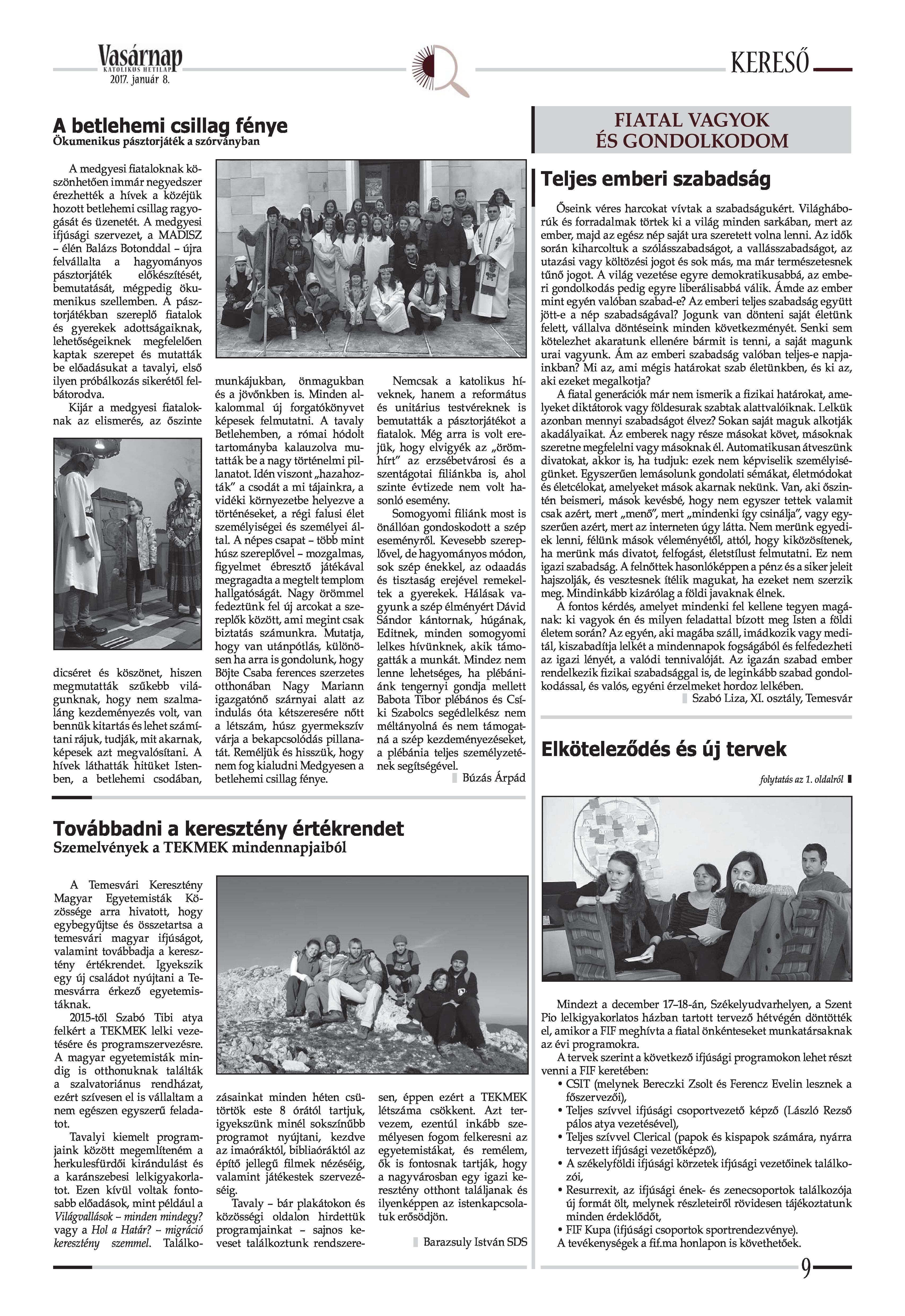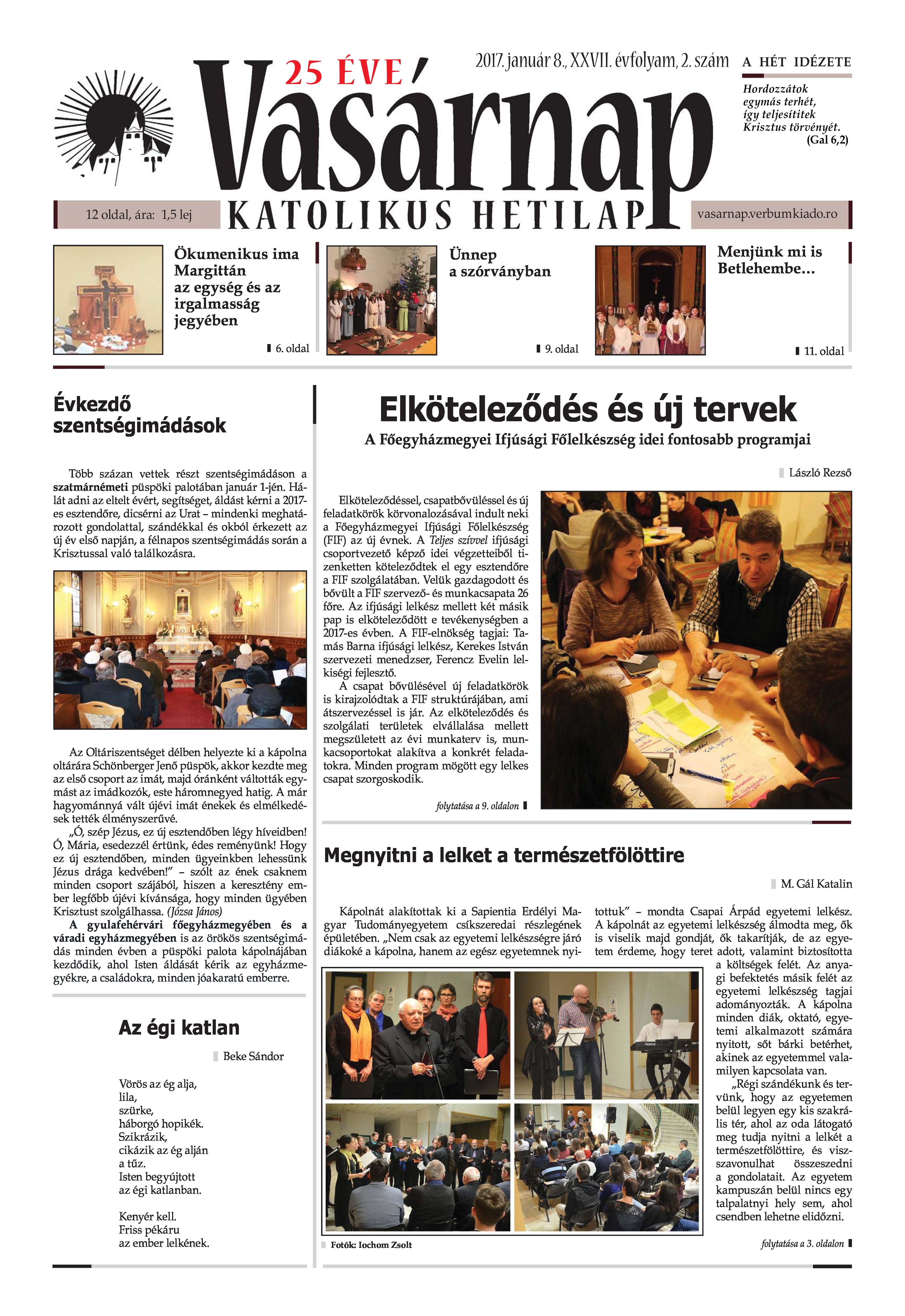 VASÁRNAP - 2017. JANUÁR 8. A Vasárnap Katolikus Hetilap 2017. január 8. / XXVII. évf. / 2. számának digitális változata. 1 / 12 2 & 3 / 12 4 & 5 / 12 6 & 7 / 12 8 & 9 / 12 10 & 11 / 12 12 / 12