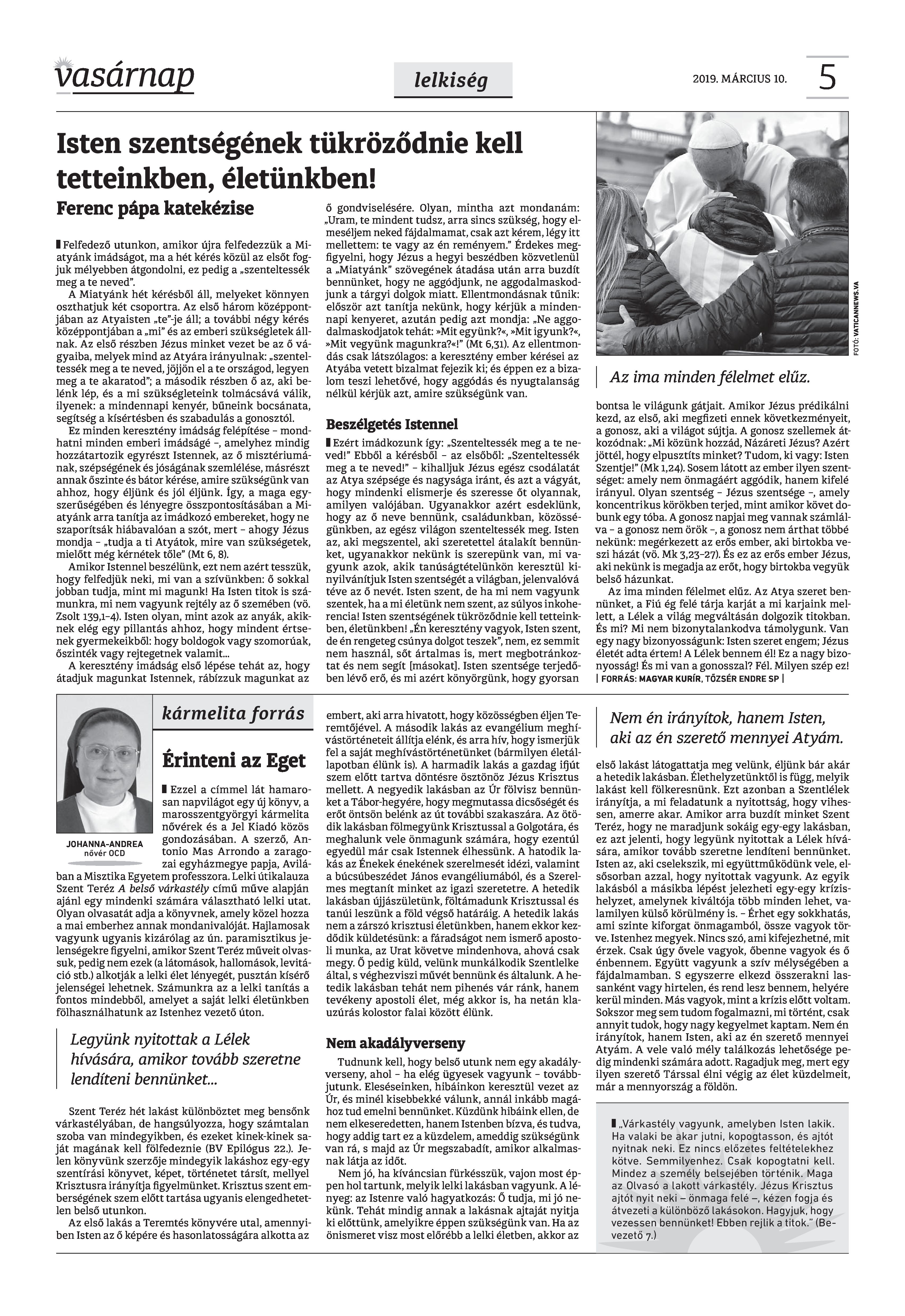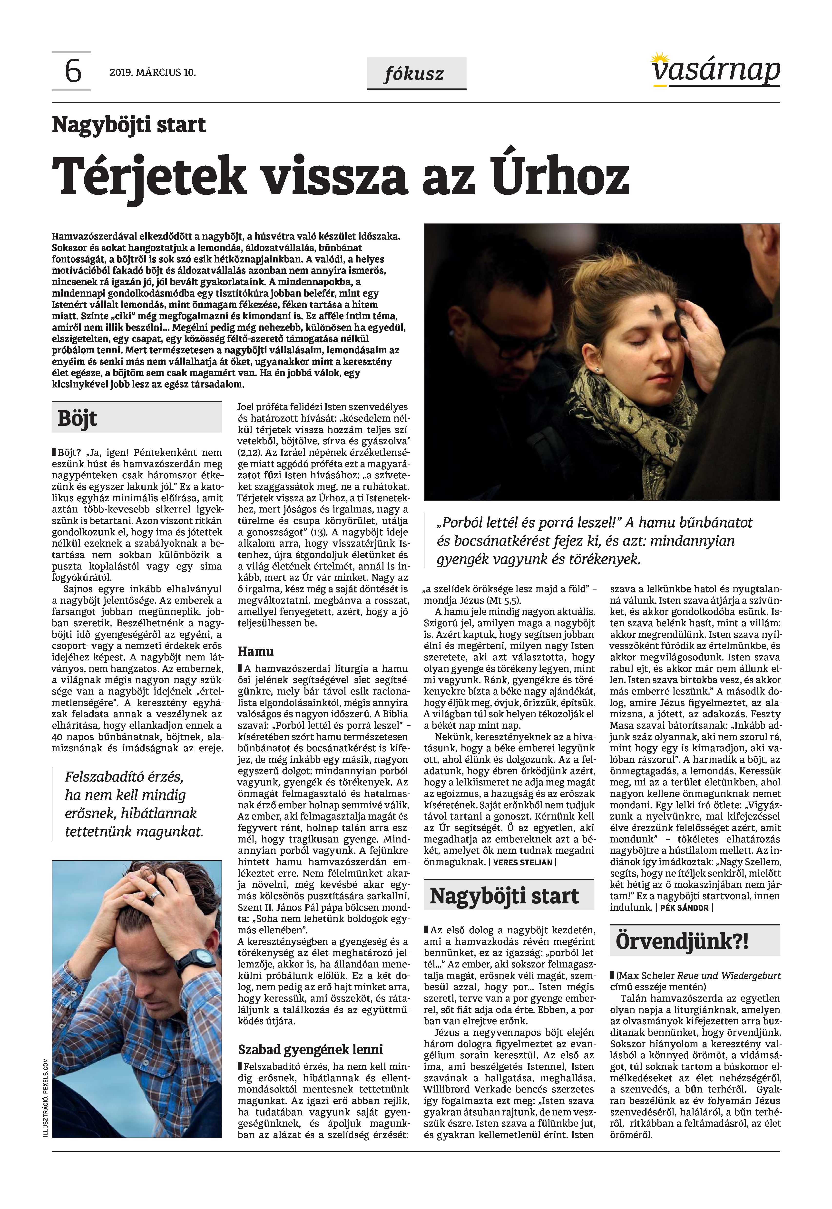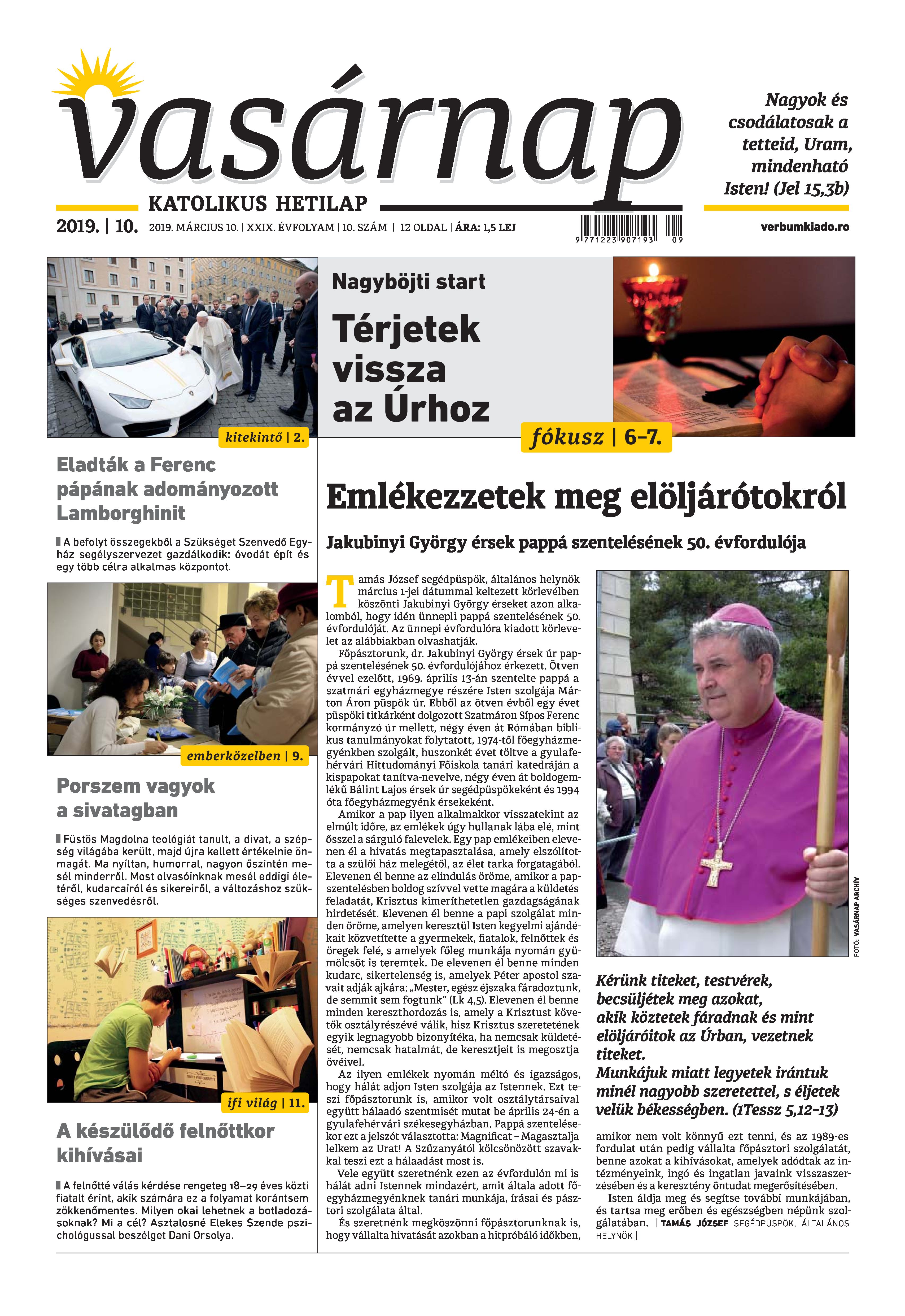 Vasárnap Katolikus Hetilap 2019. március 10. / XXIX évf. / 10. számának digitális változata.