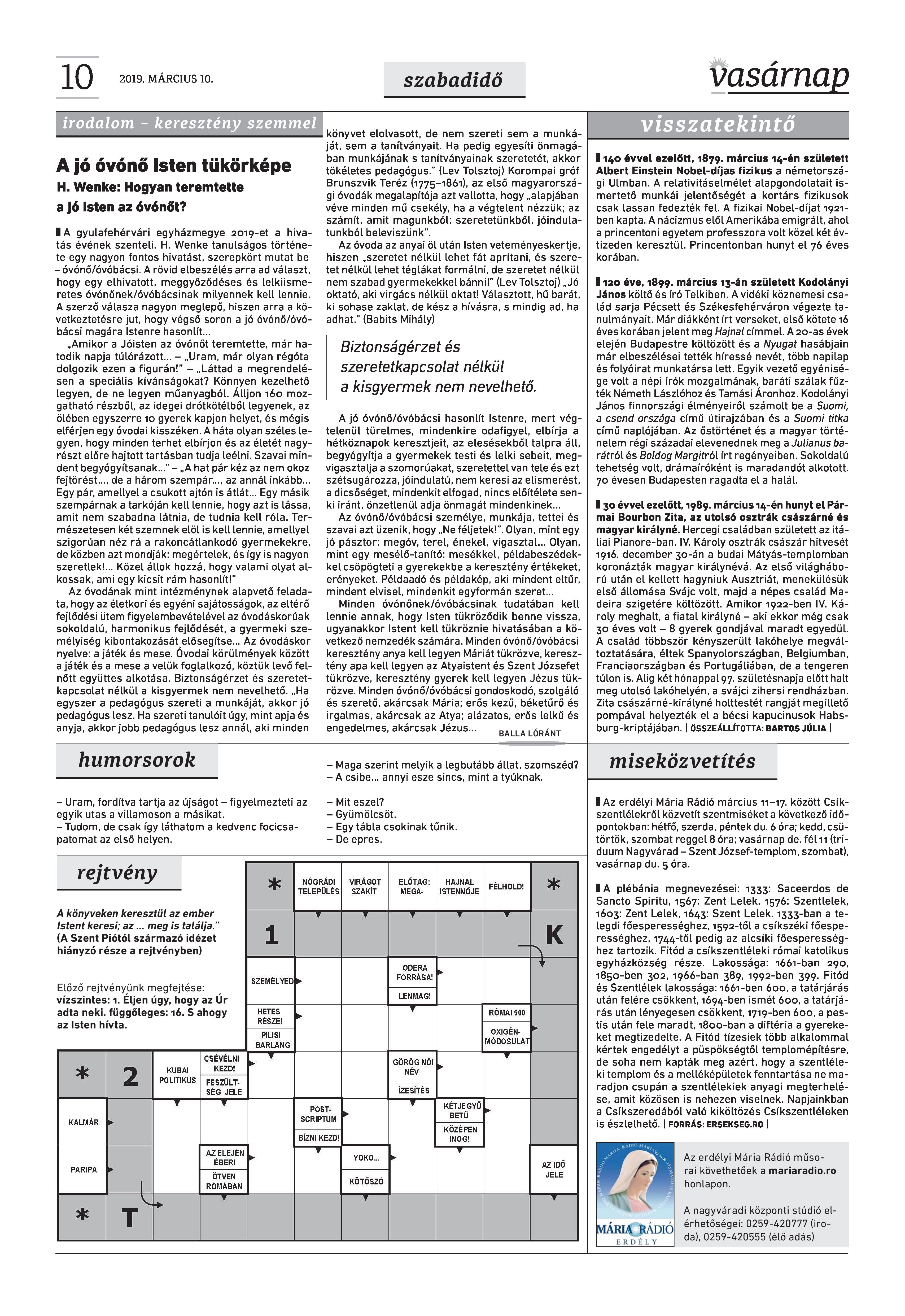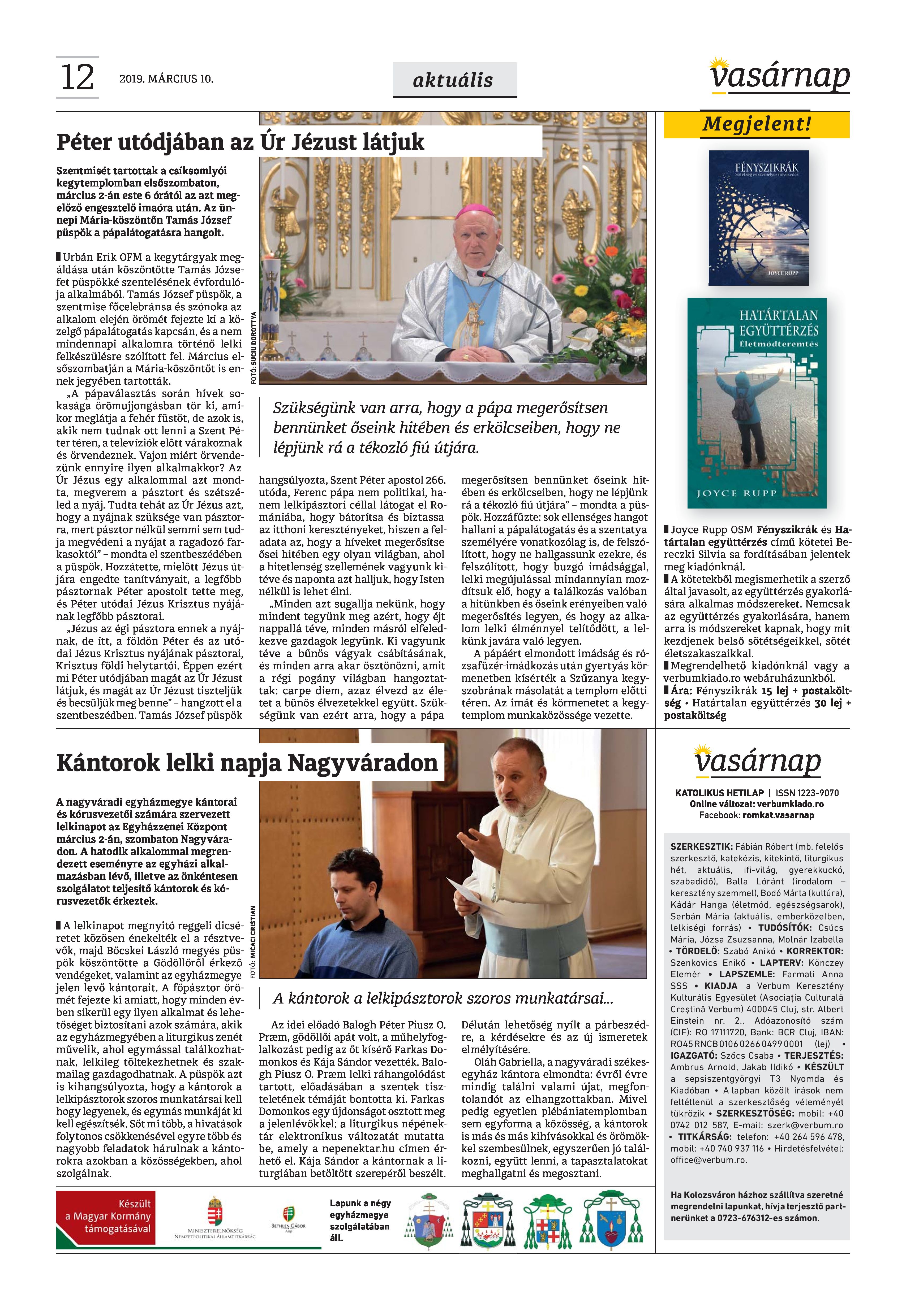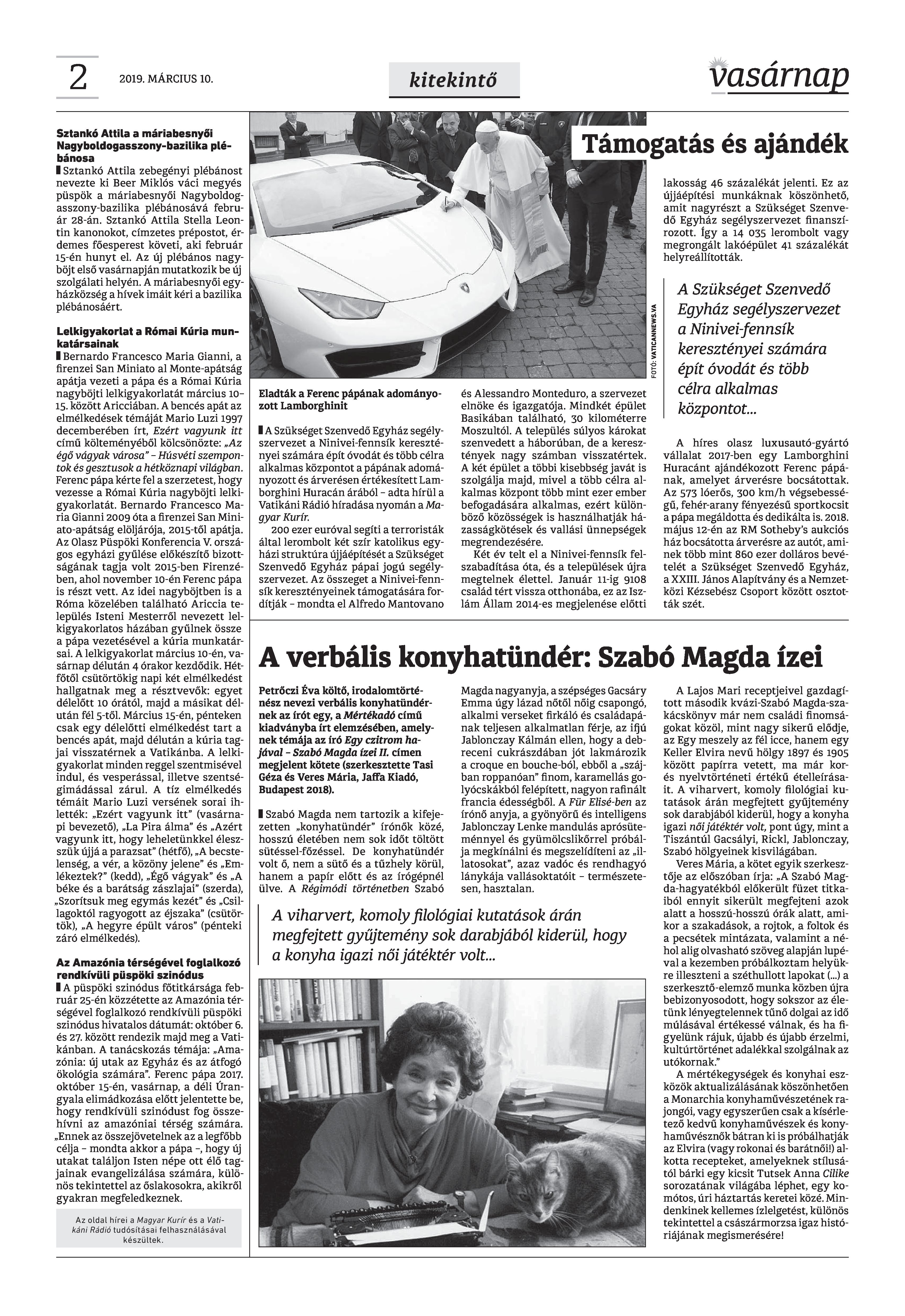 Vasárnap Katolikus Hetilap 2019. március 10. / XXIX évf. / 10. számának digitális változata.