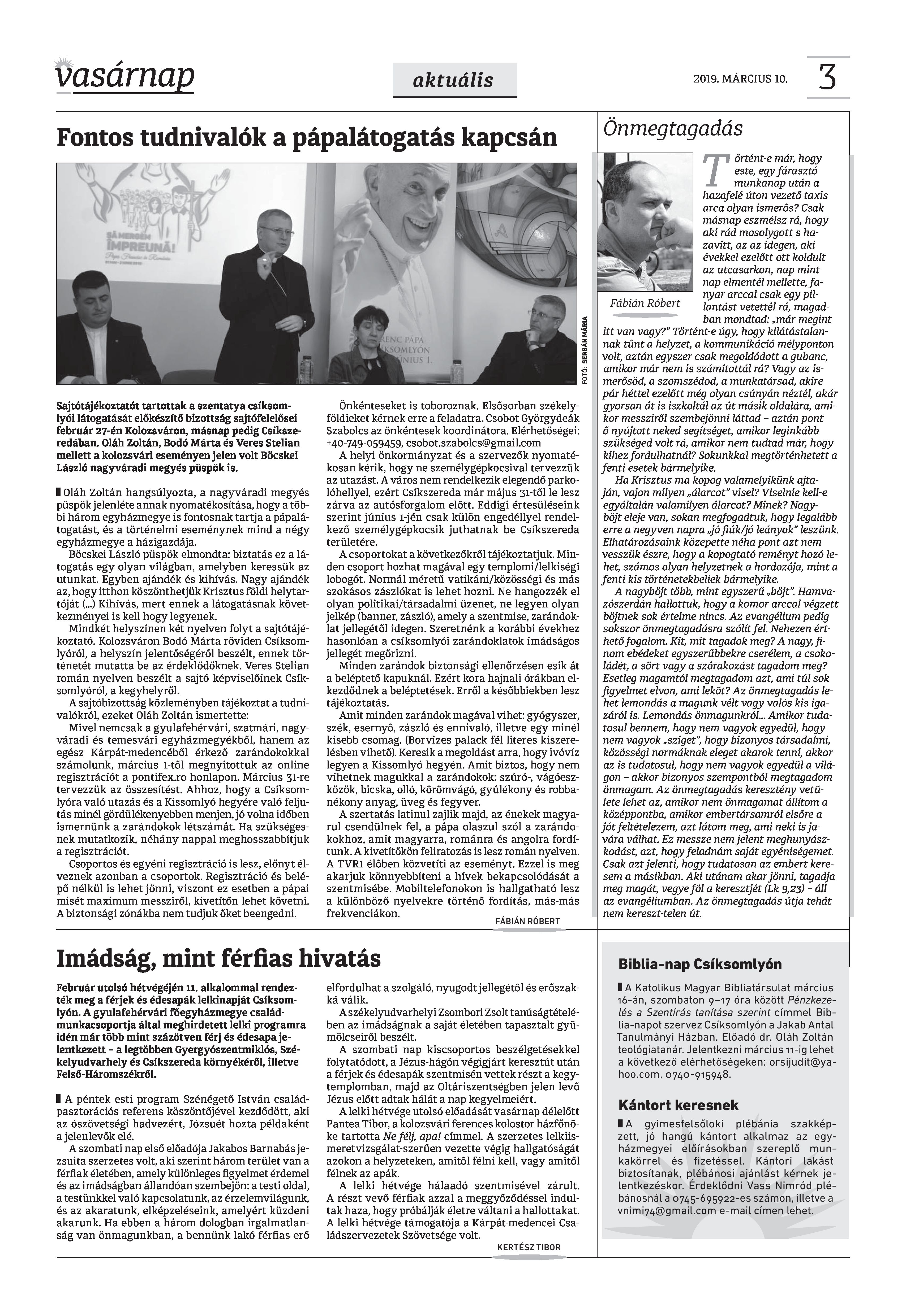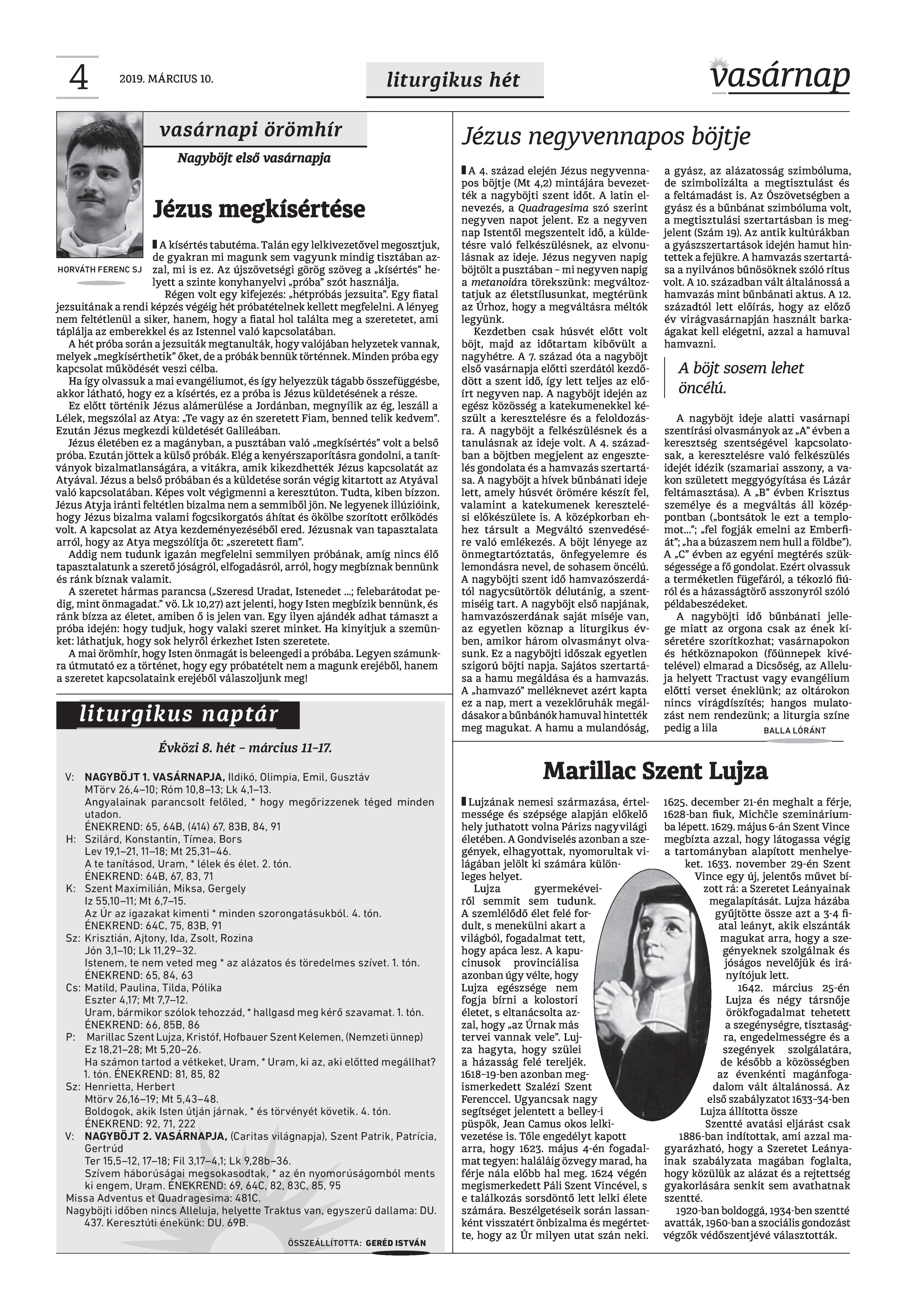 VASÁRNAP - 2019. MÁRCIUS 10.