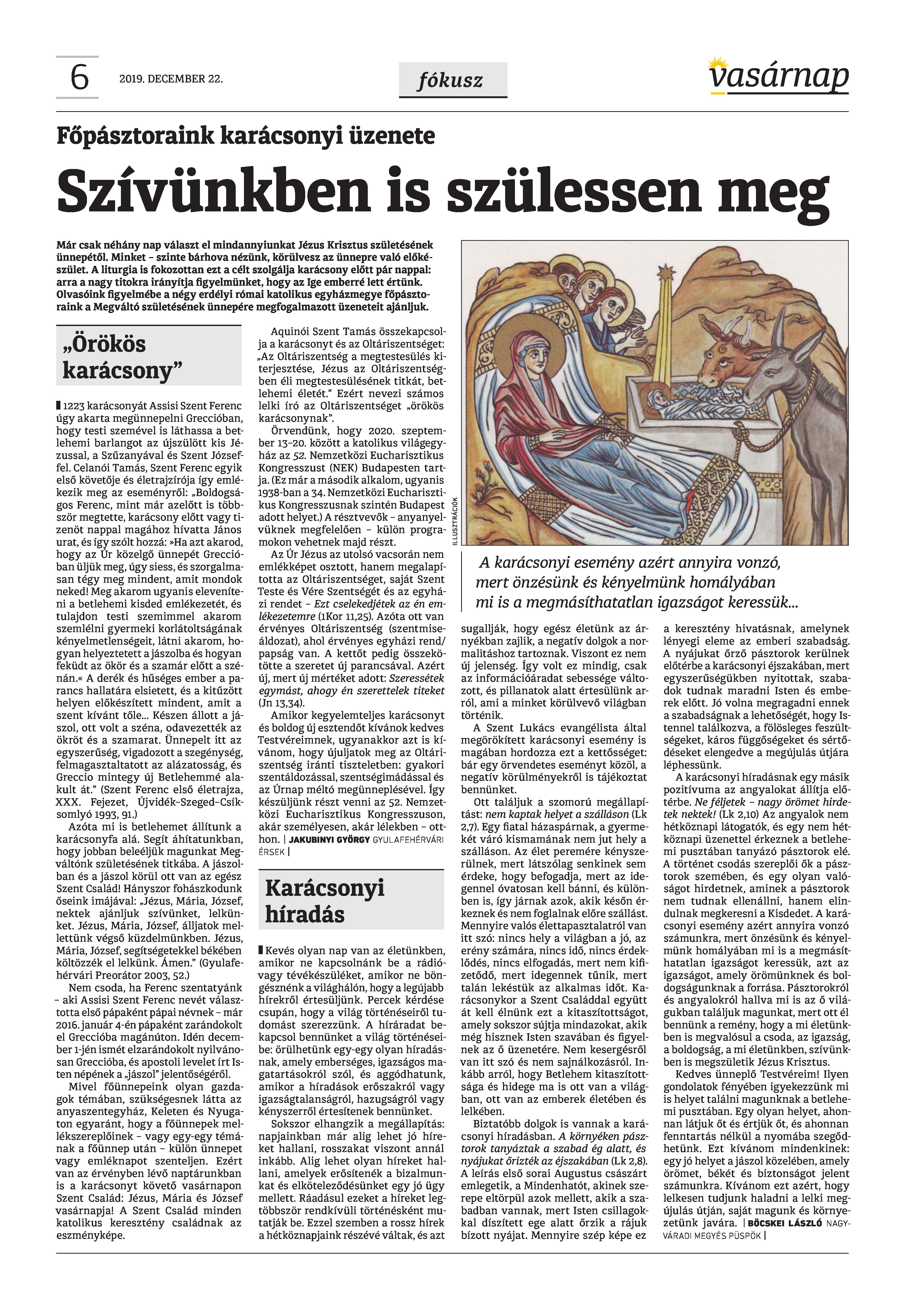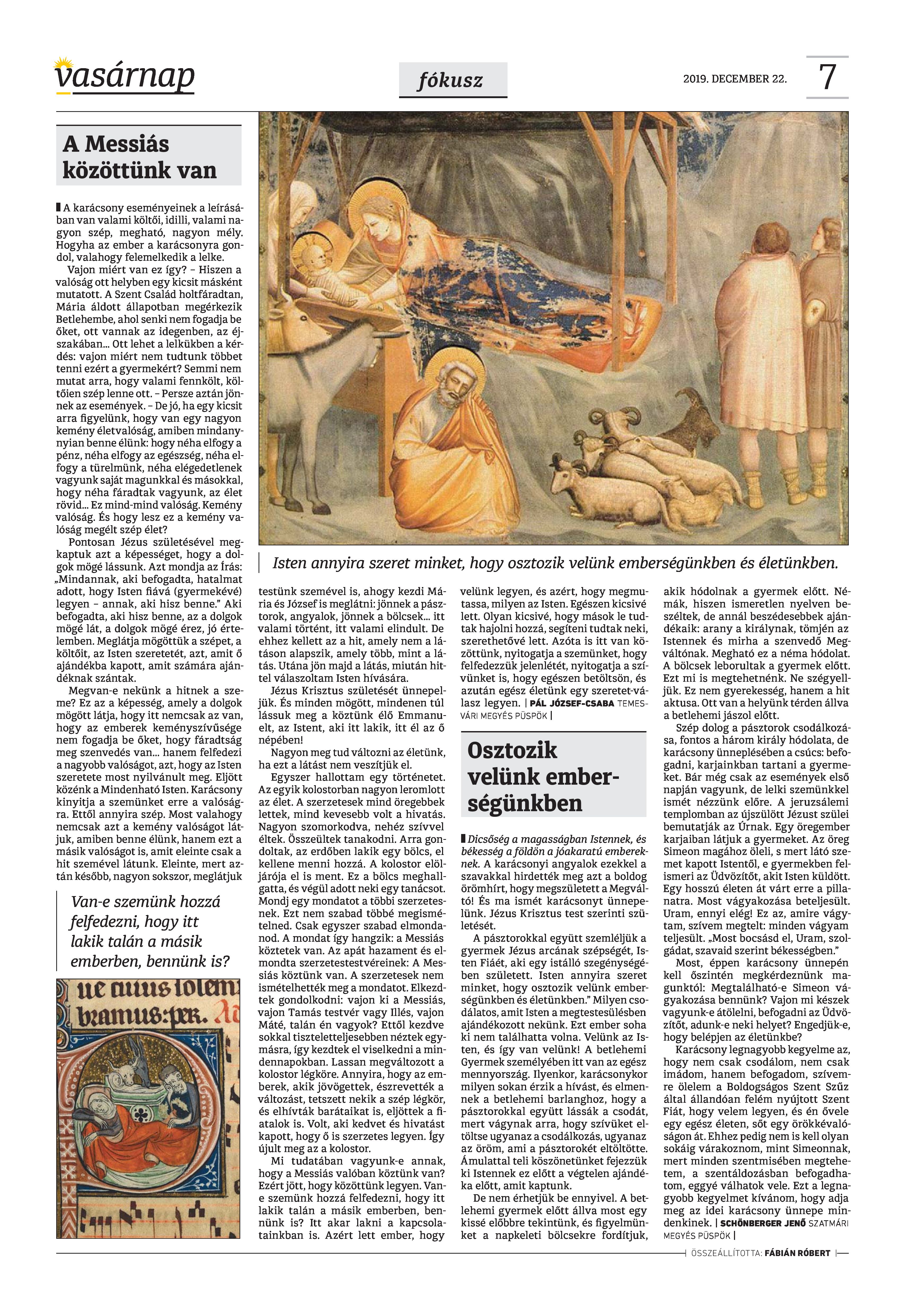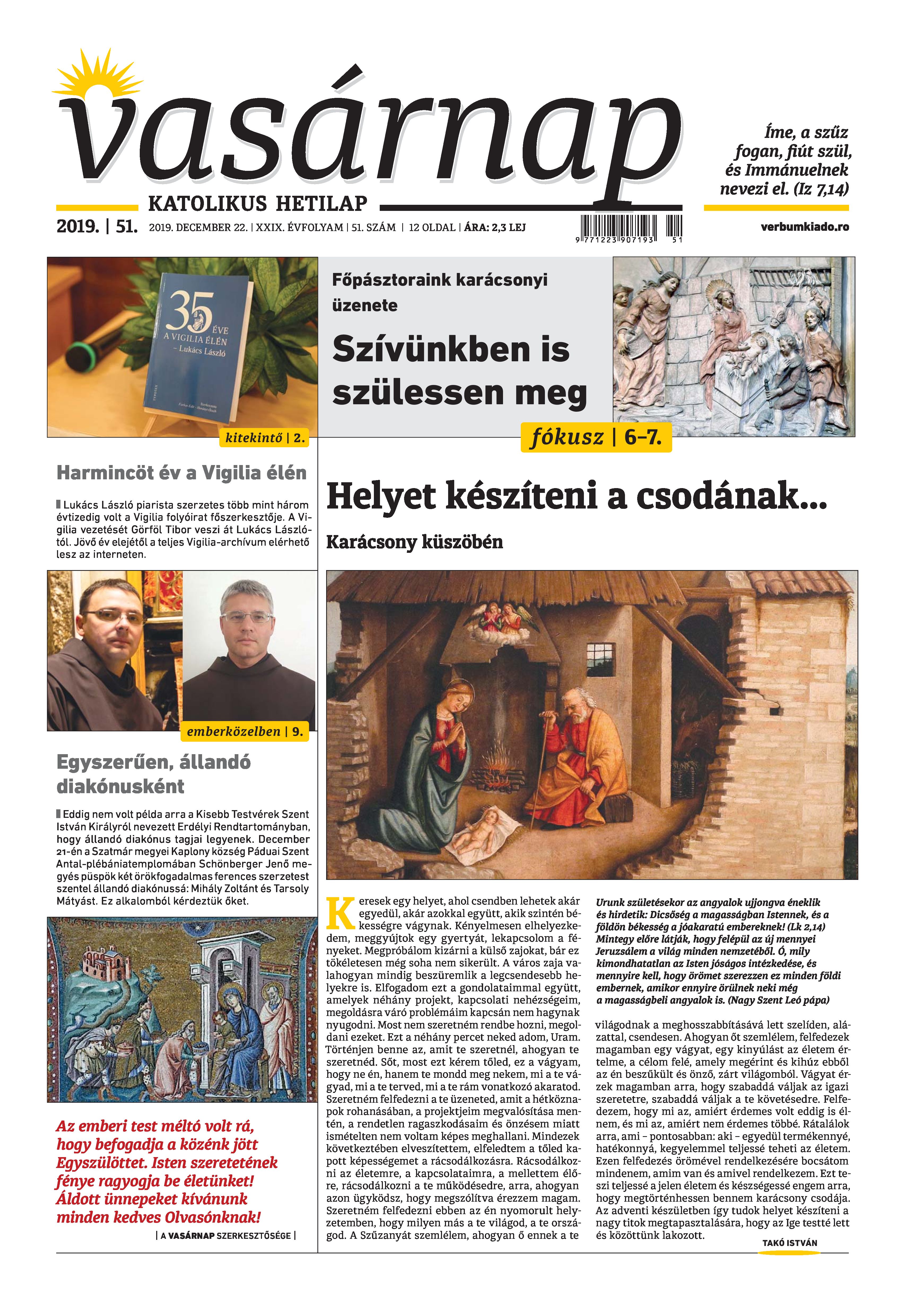 VASÁRNAP - 2019. DECEMBER 22. A Vasárnap Katolikus Hetilap 2019. december 22.. / XXIX évf. / 51. számának digitális változata. 1 / 12 2 & 3 / 12 4 & 5 / 12 6 & 7 / 12 8 & 9 / 12 10 & 11 / 12 12 / 12