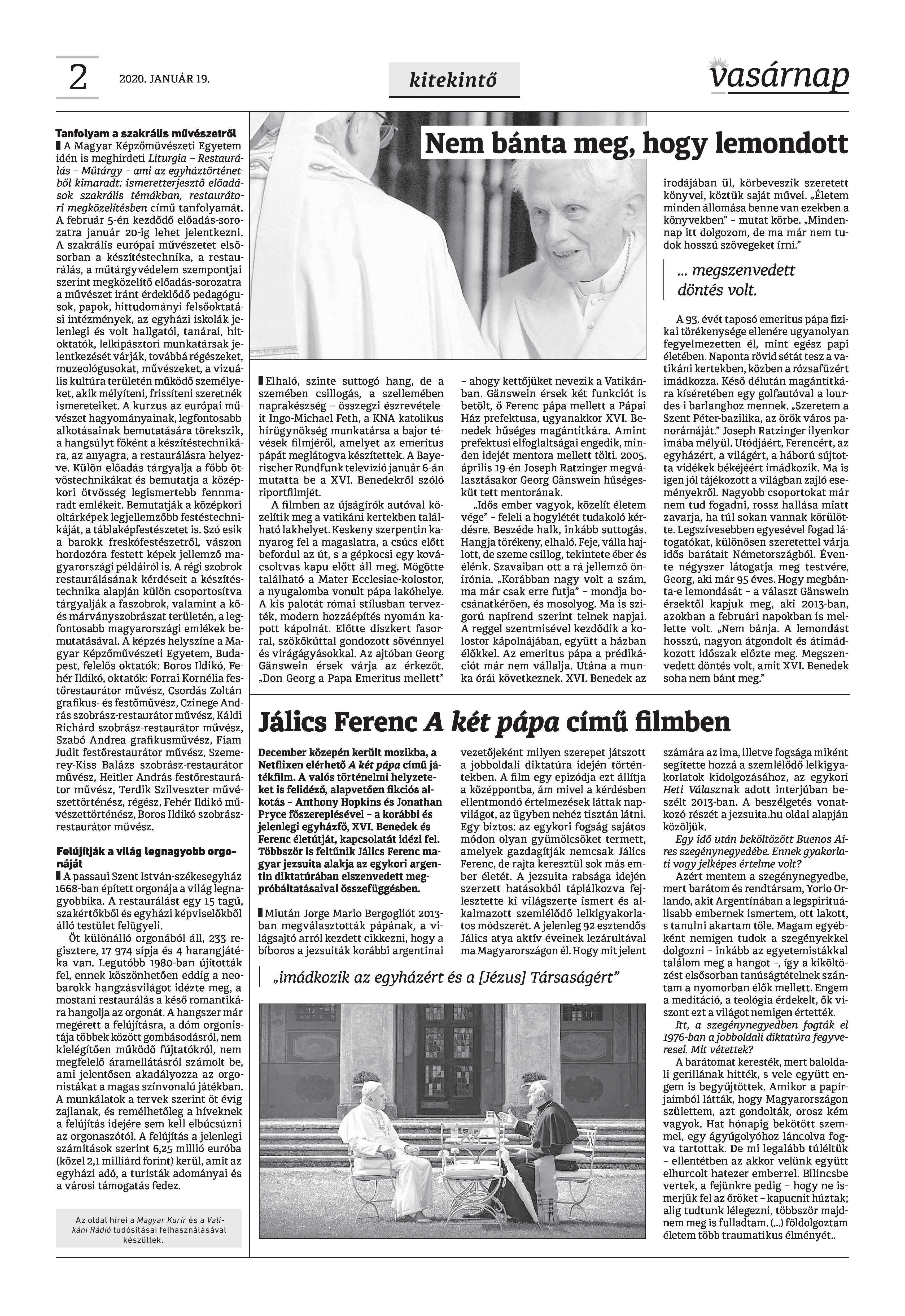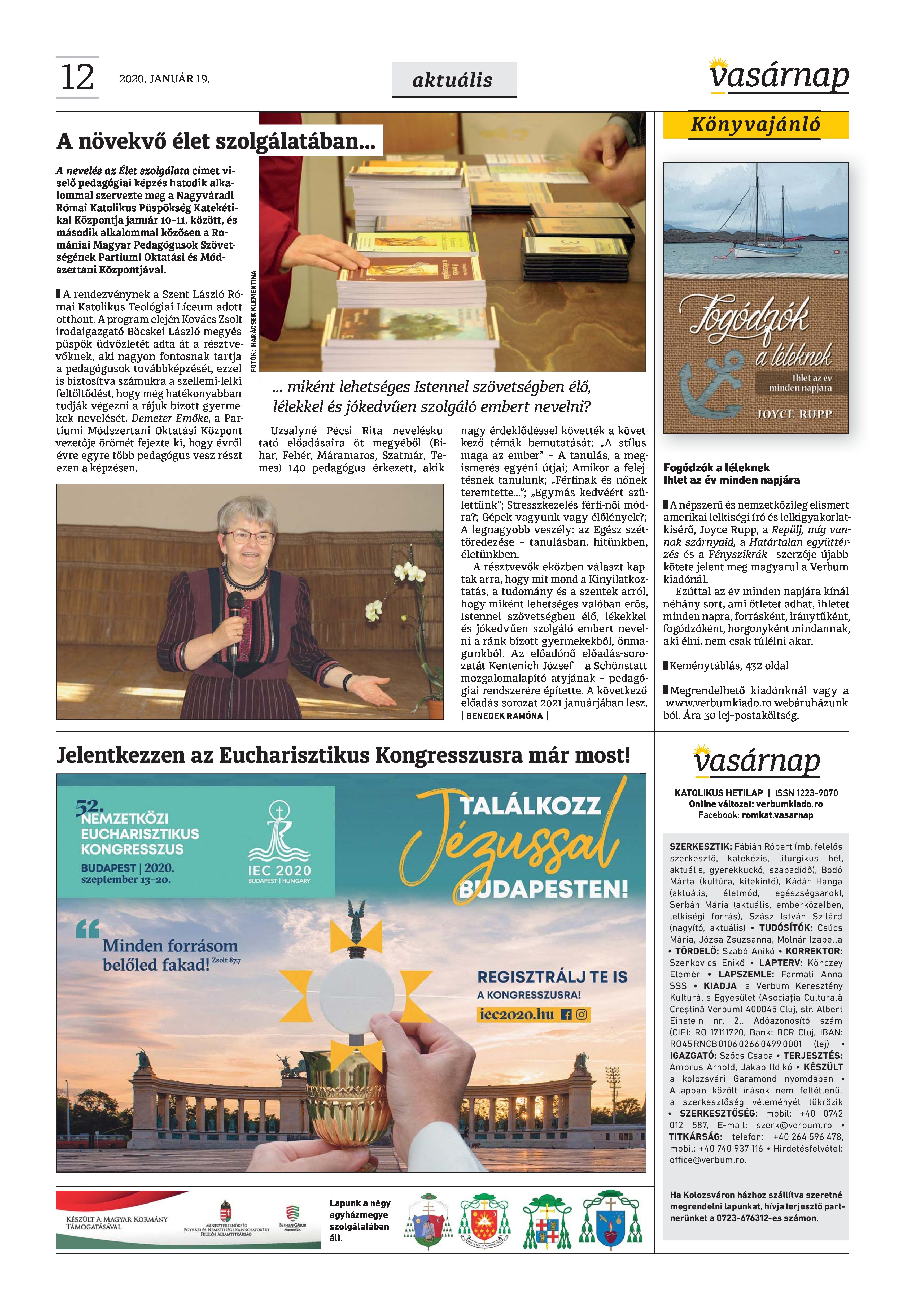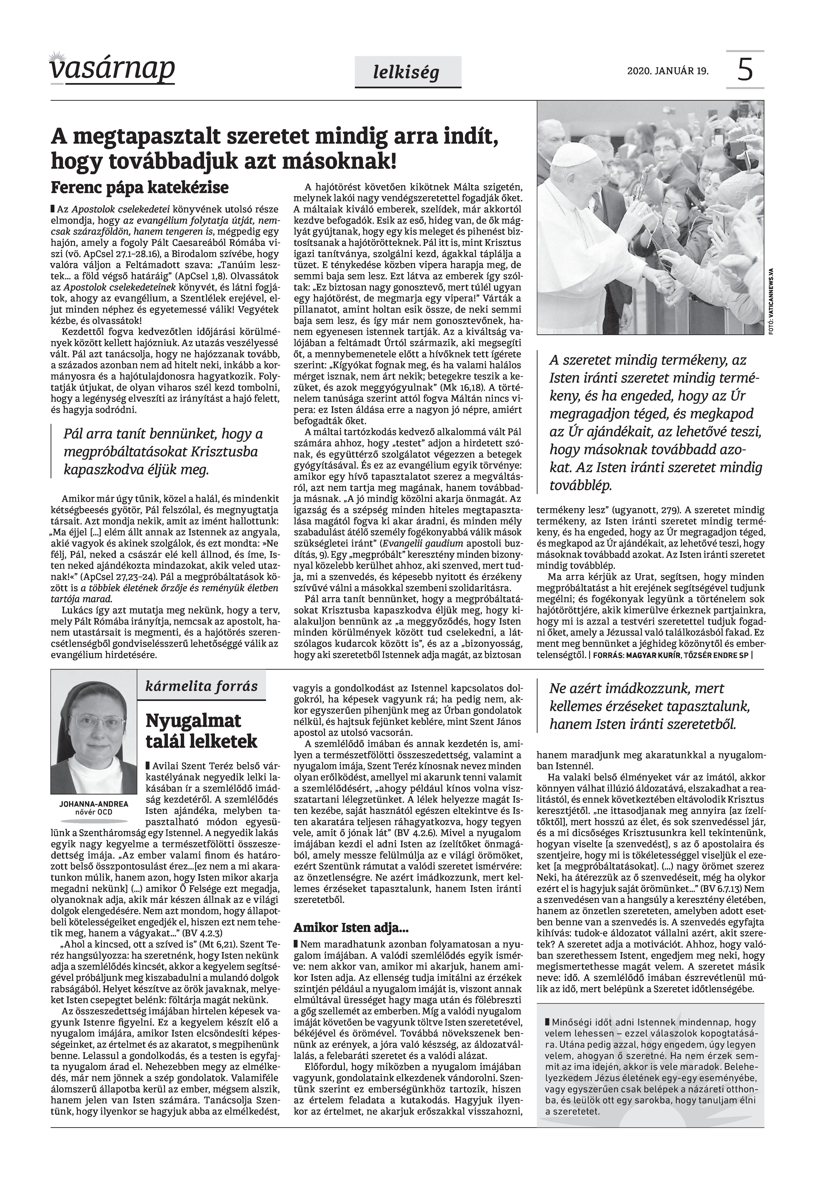 VASÁRNAP - 2020. JANUÁR 19. A Vasárnap Katolikus Hetilap 2020 január 19. / XXX évf. / 3. számának digitális változata. 1 / 12 2 & 3 / 12 4 & 5 / 12 6 & 7 / 12 8 & 9 / 12 10 & 11 / 12 12 / 12