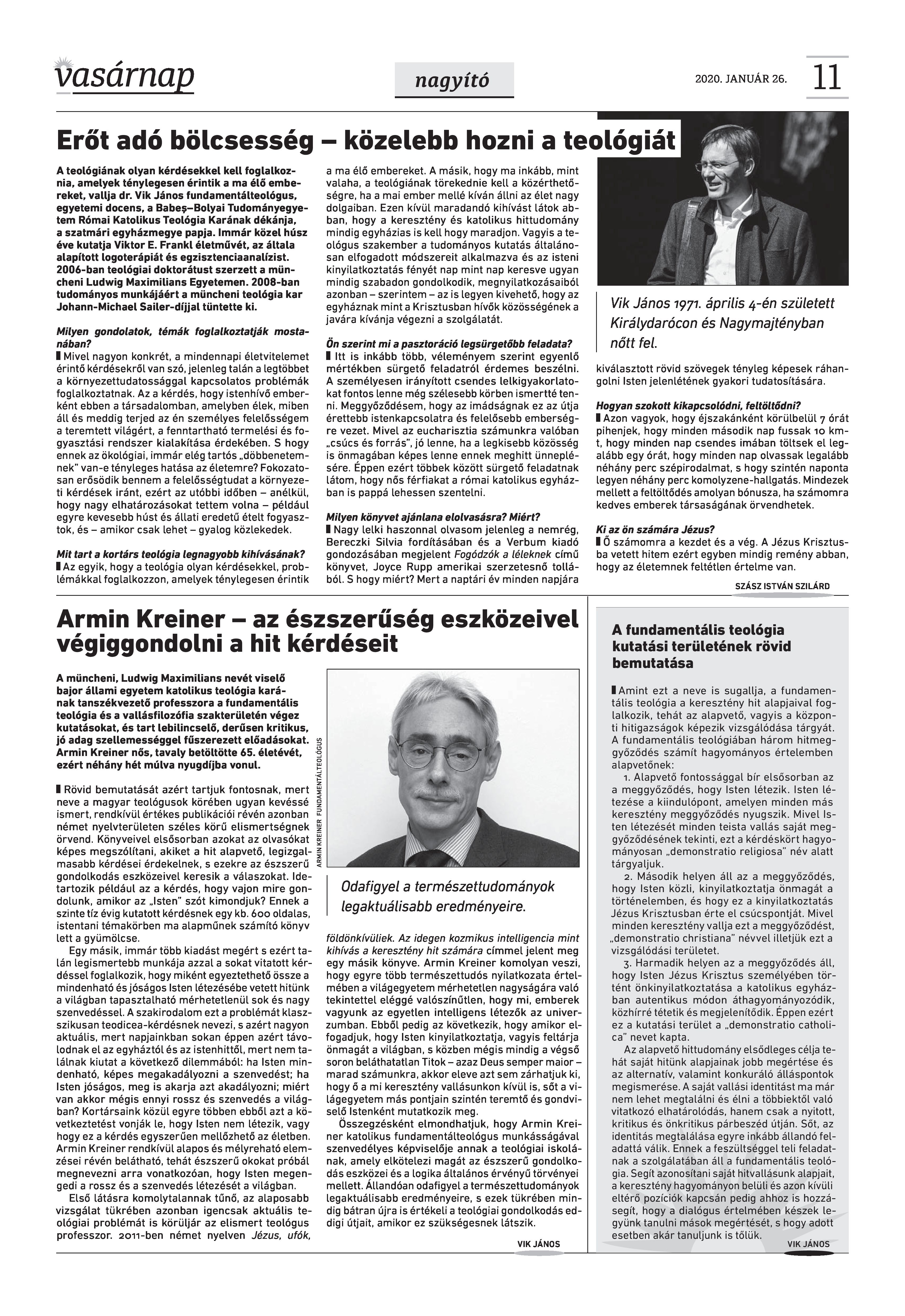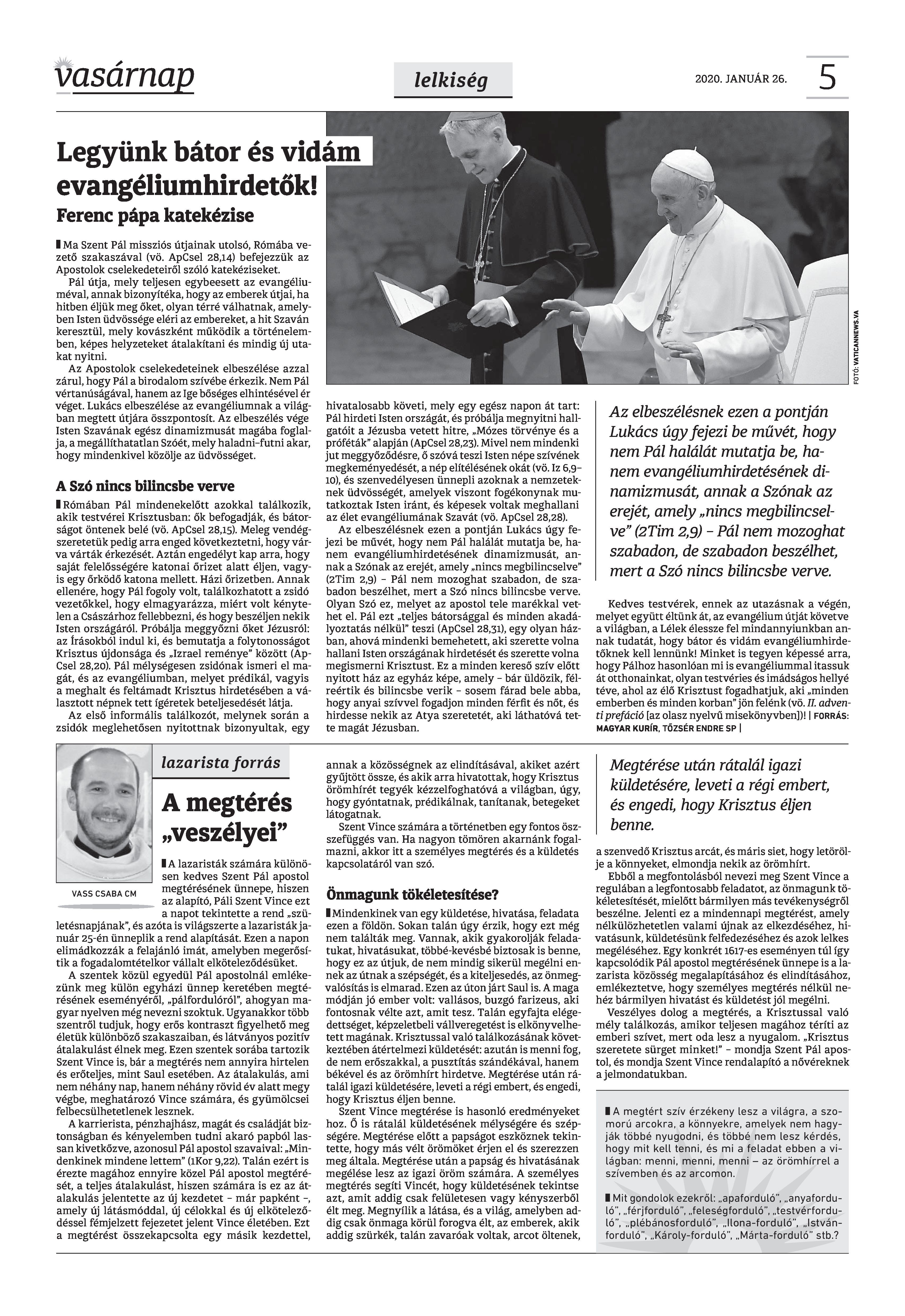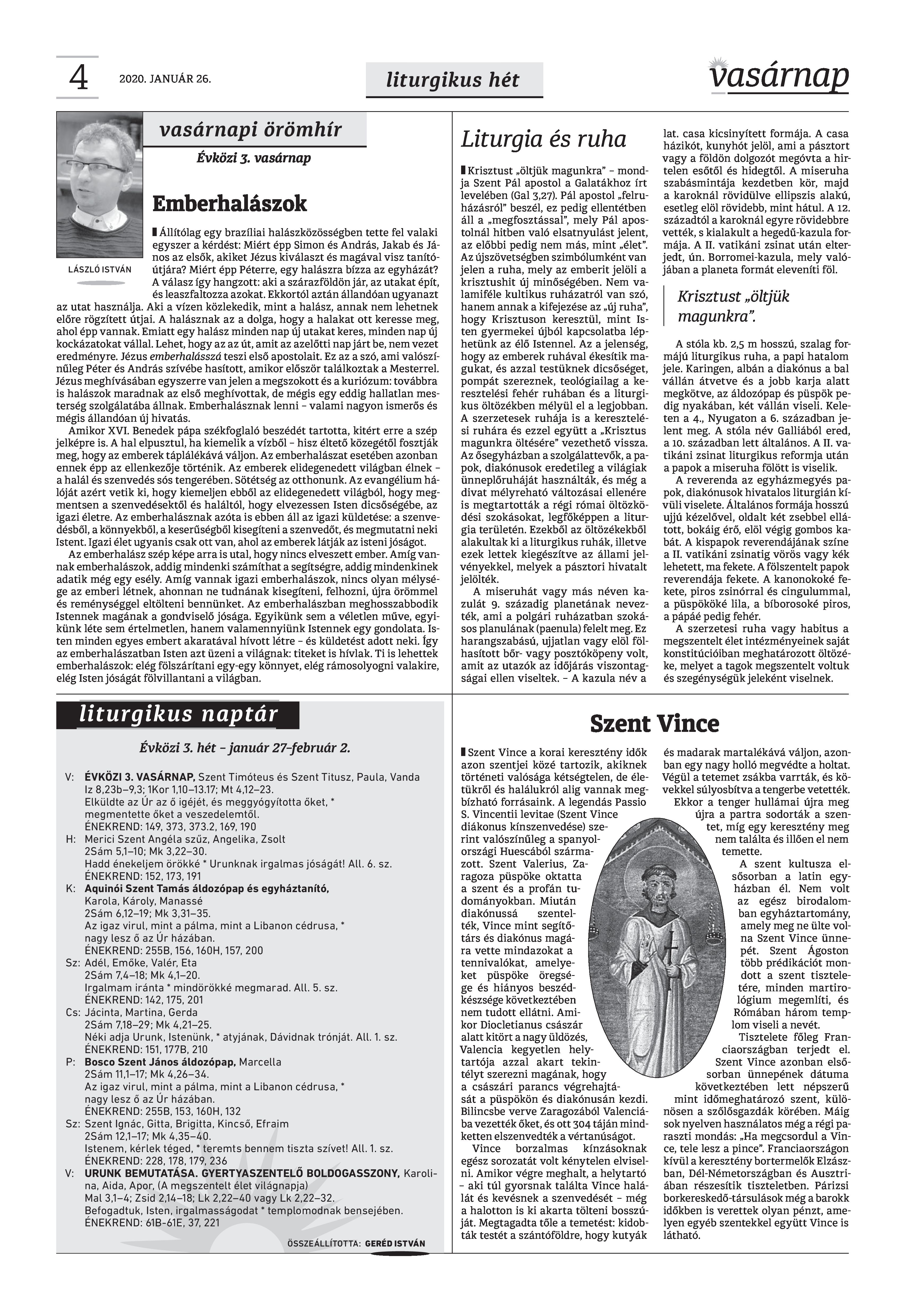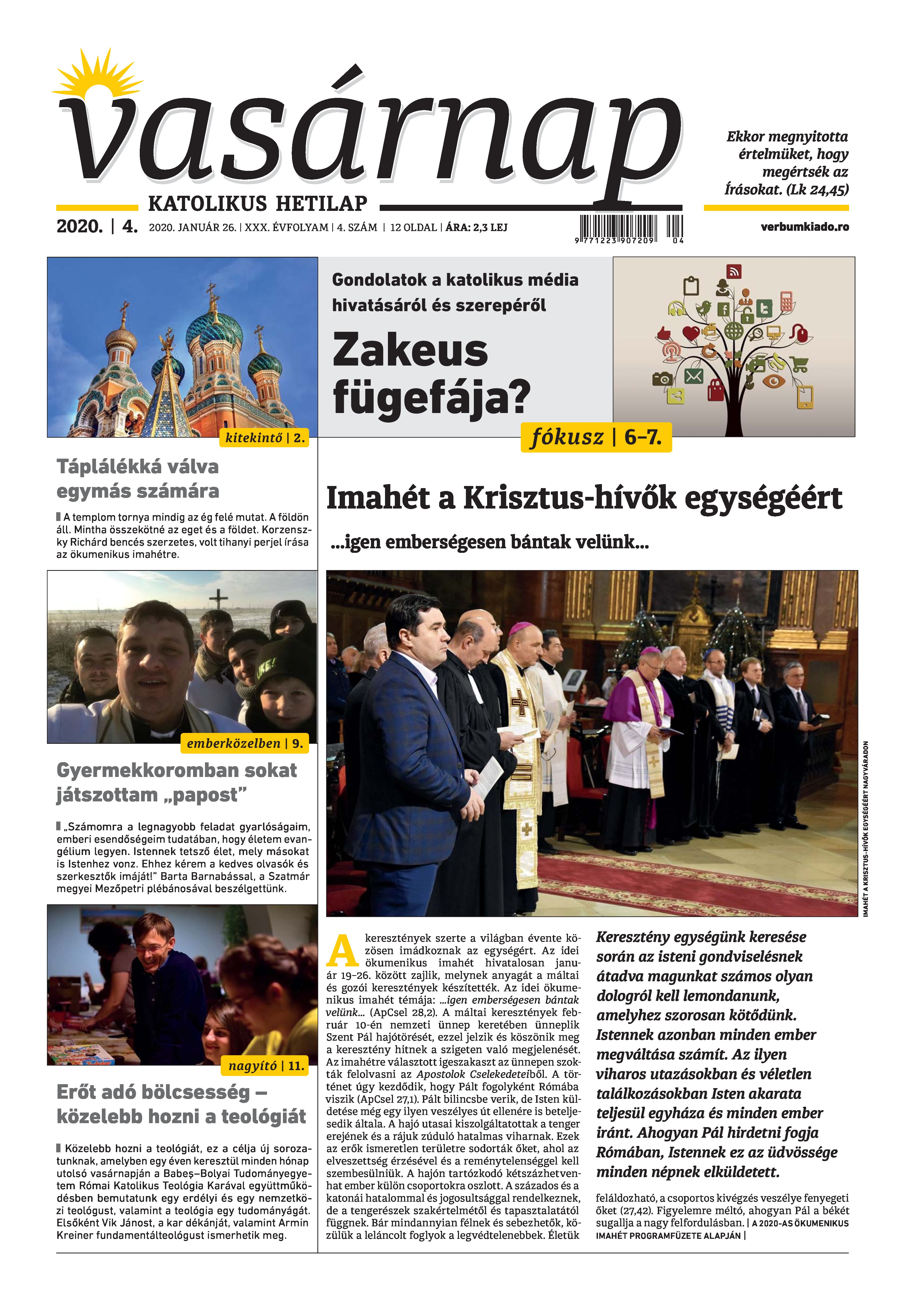 Vasárnap Katolikus Hetilap 2020 január 26. / XXX évf. / 4. számának digitális változata.