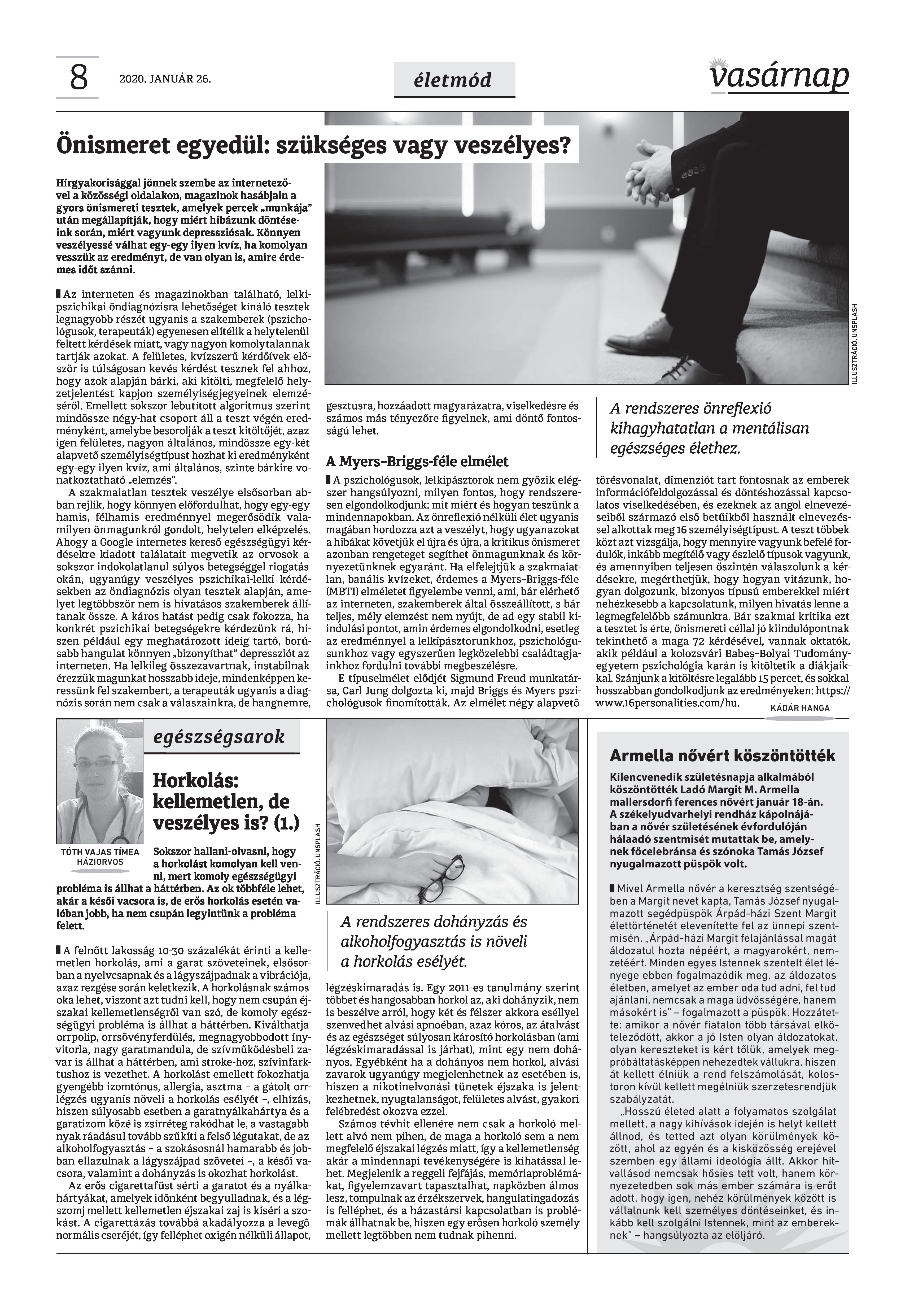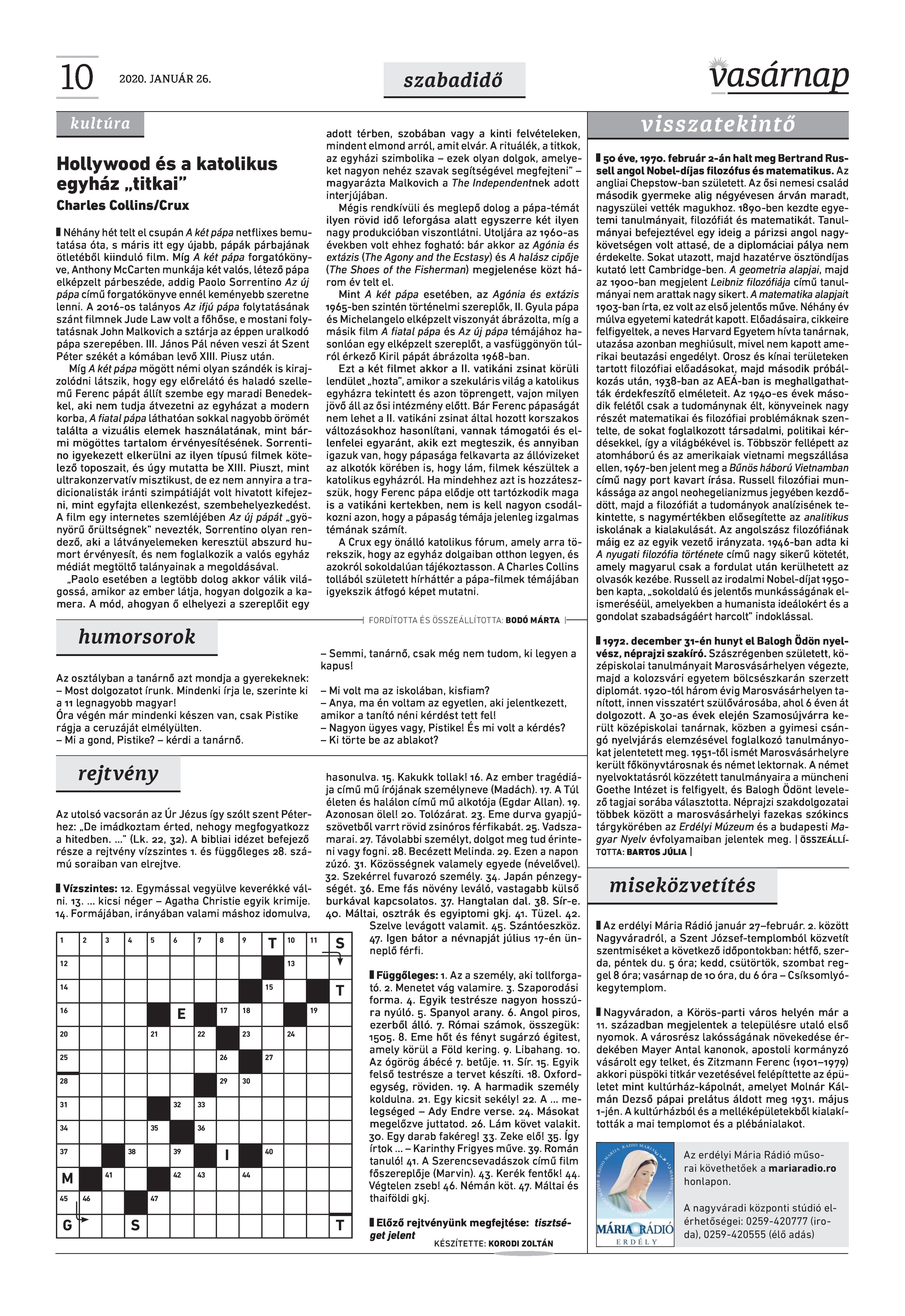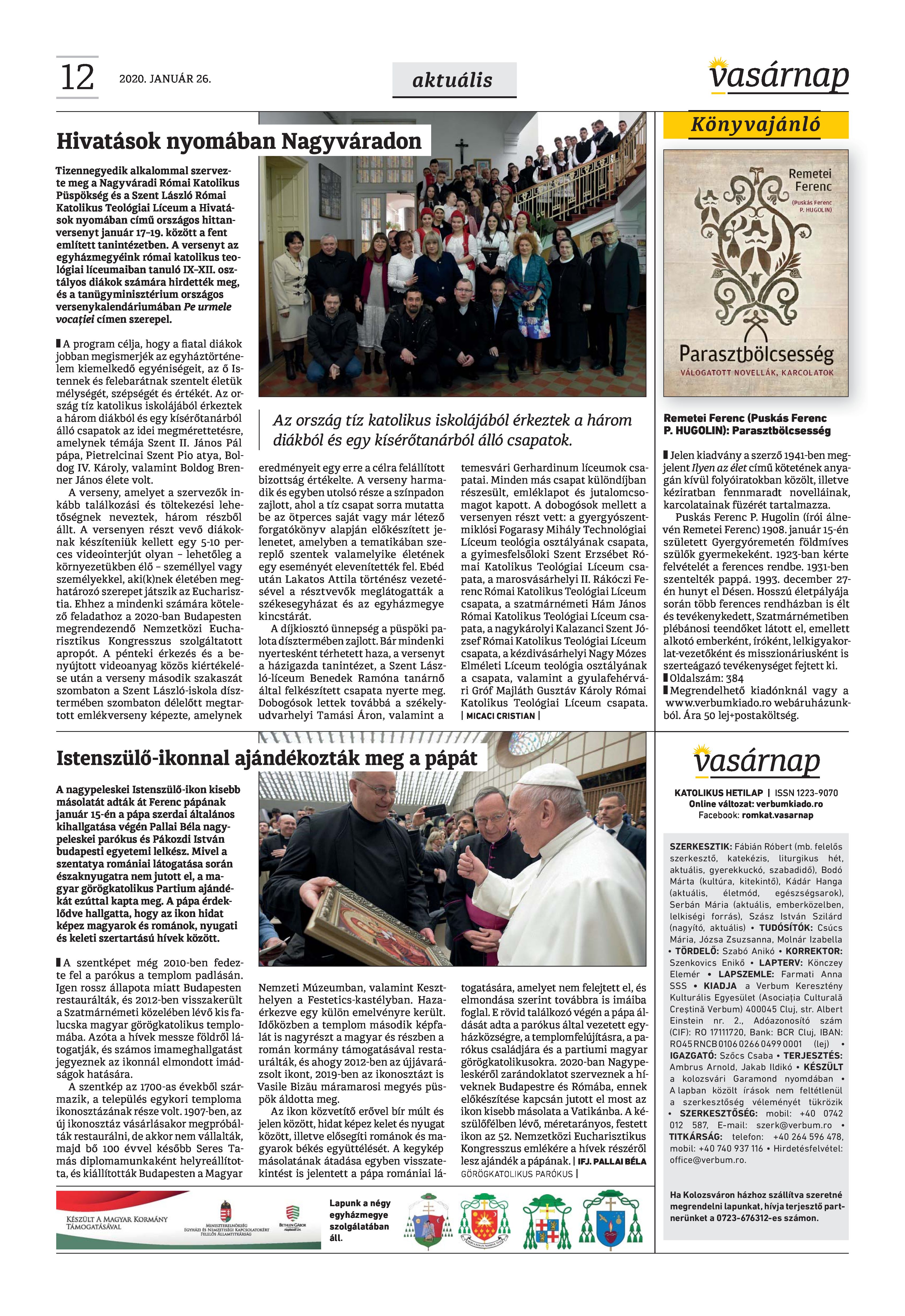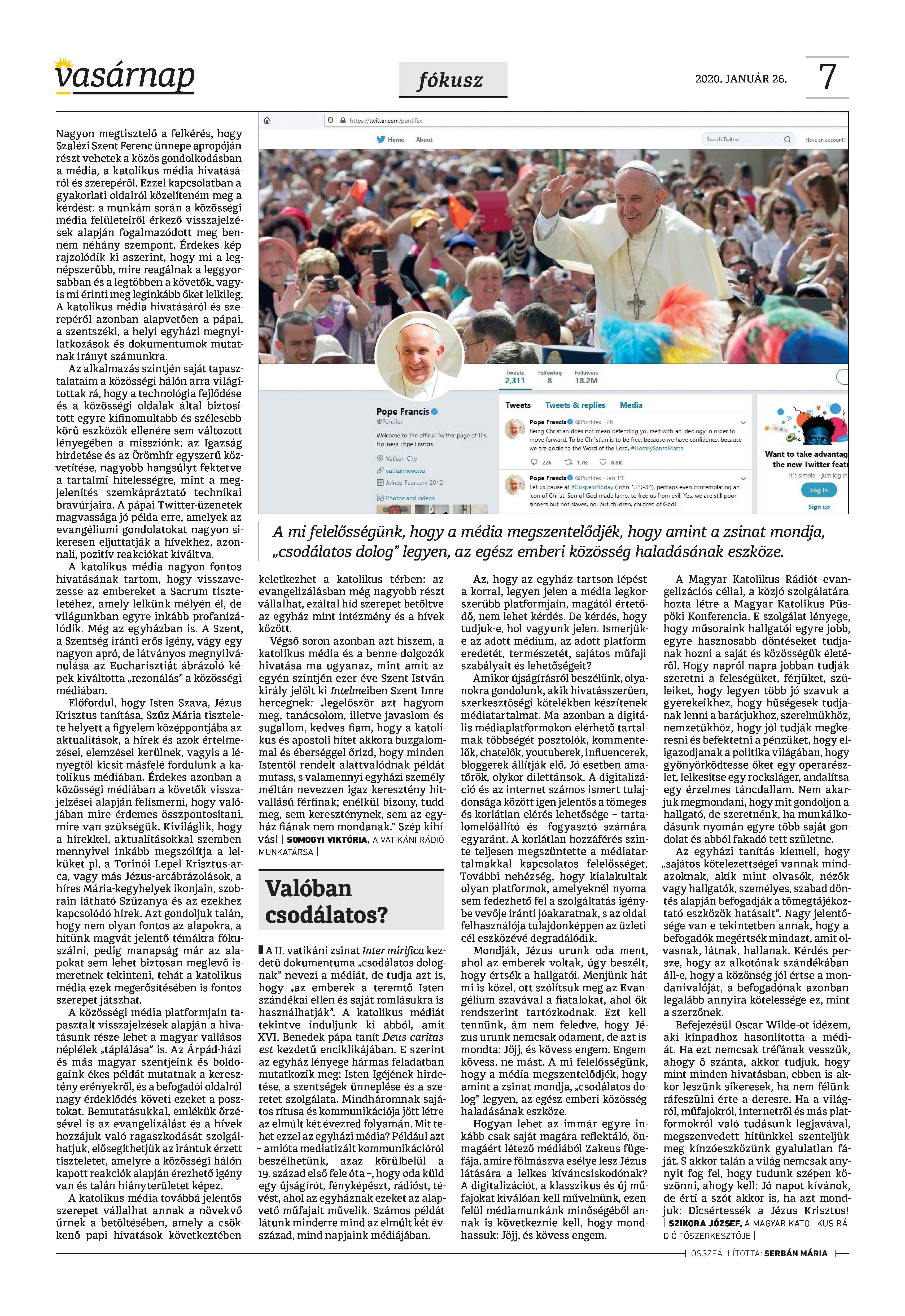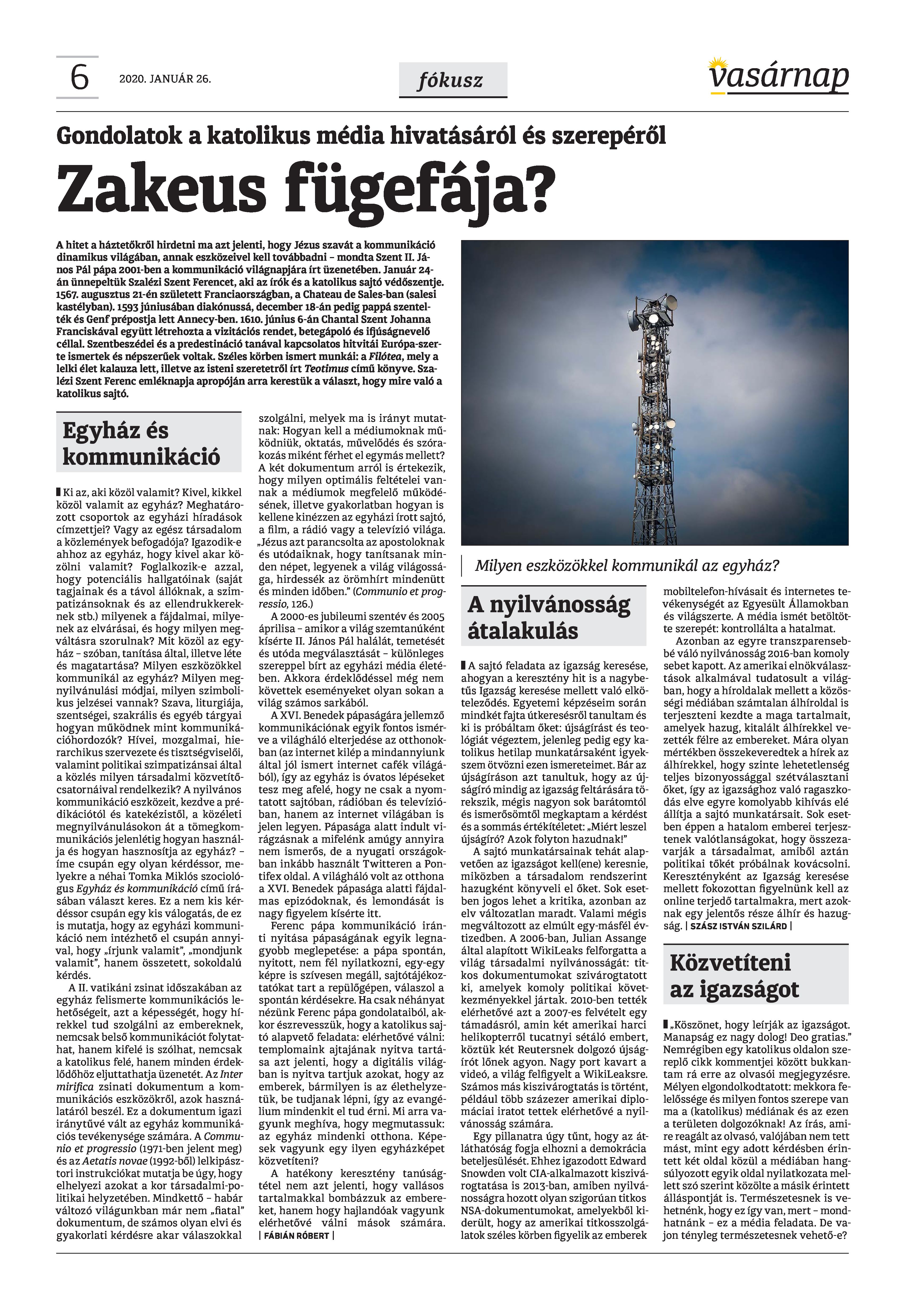Vasárnap Katolikus Hetilap 2020 január 26. / XXX évf. / 4. számának digitális változata.