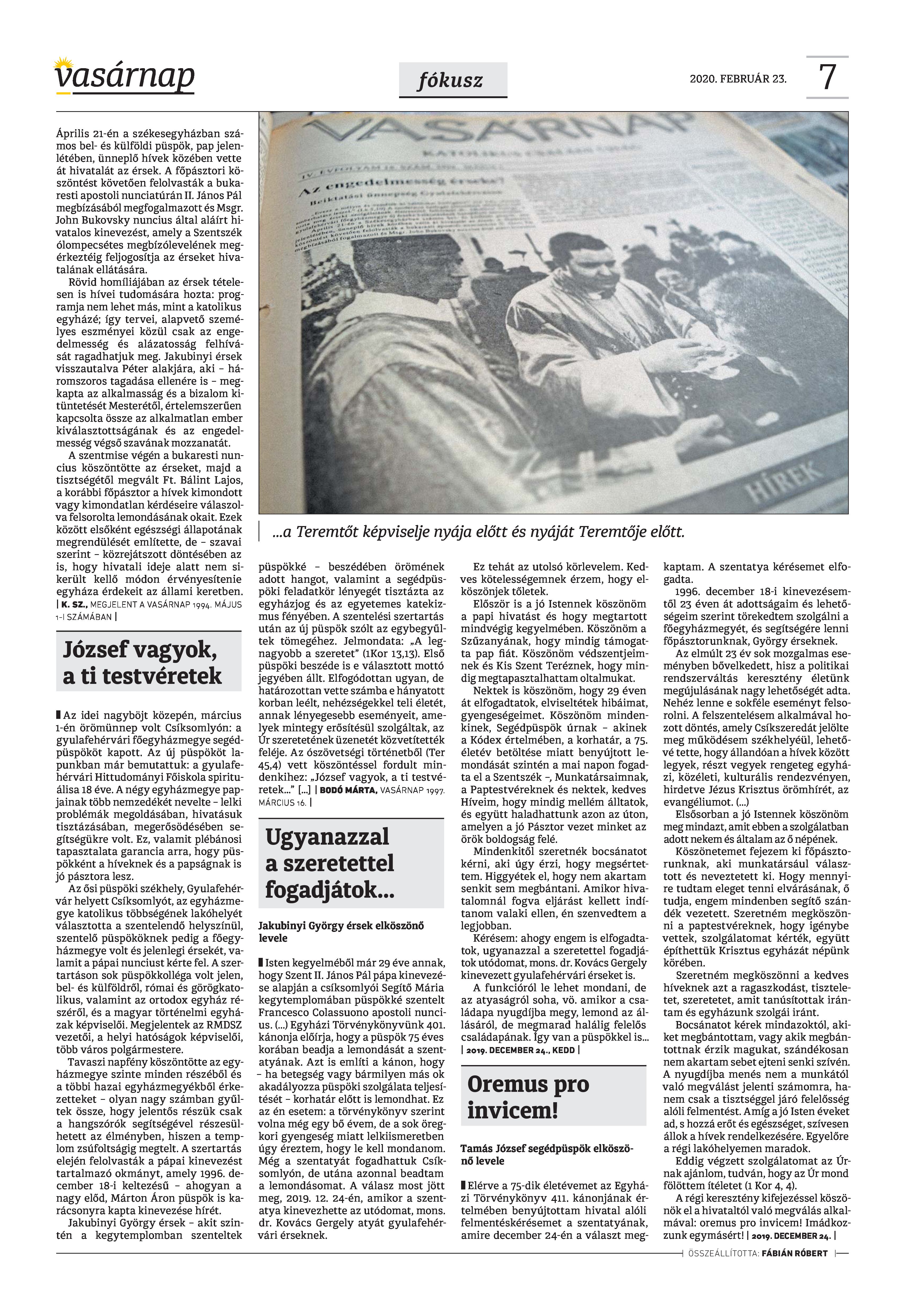 Vasárnap Katolikus Hetilap 2020. február 23. / XXX évf. / 8. számának digitális változata.